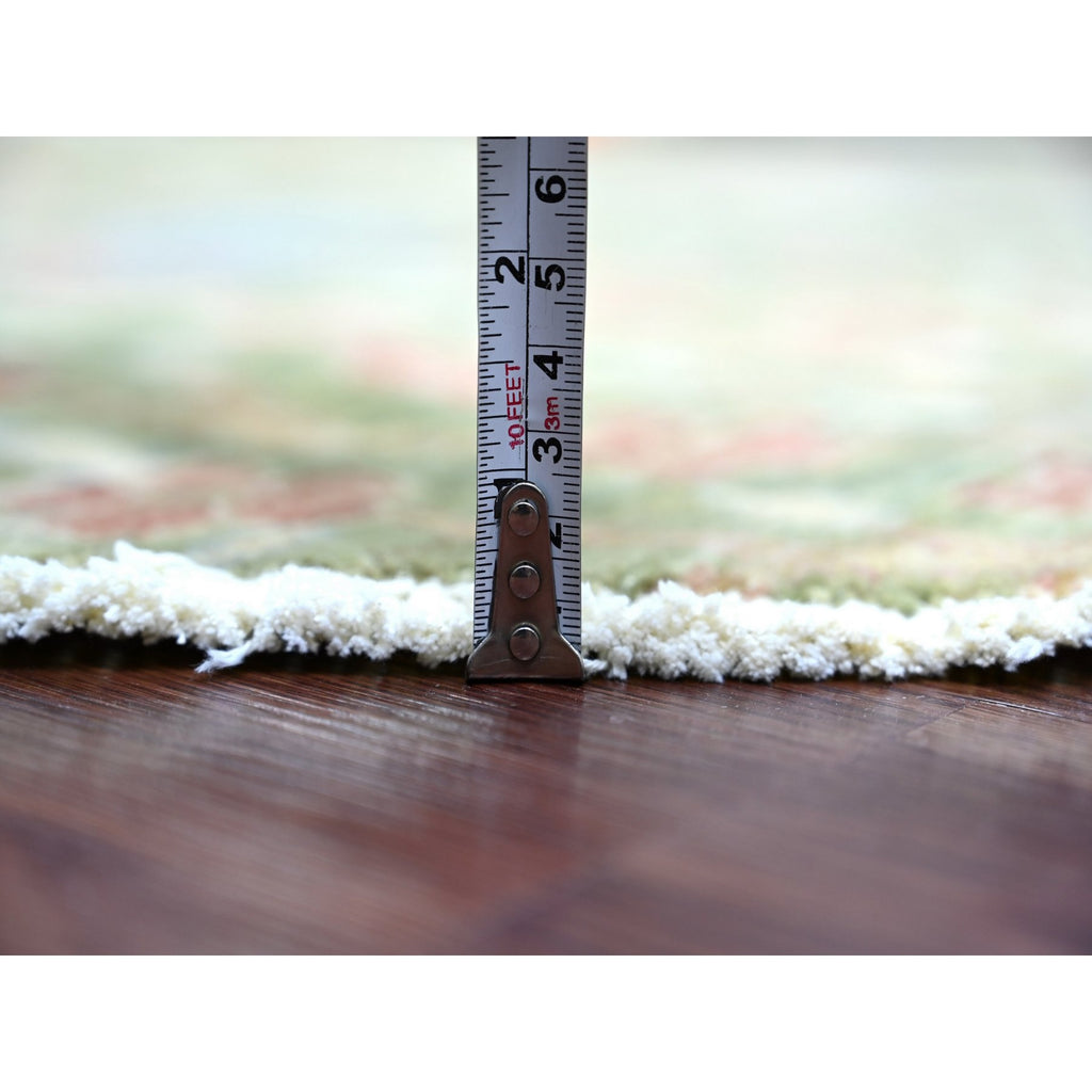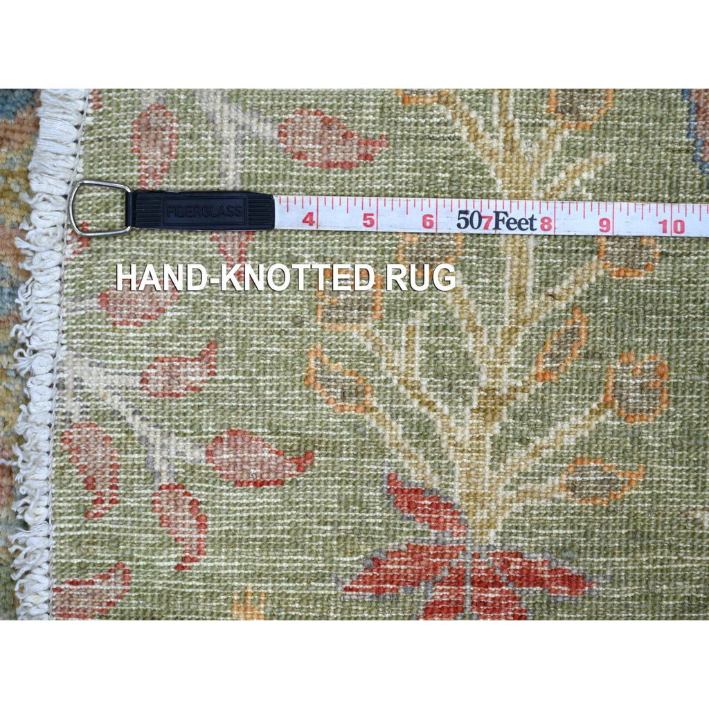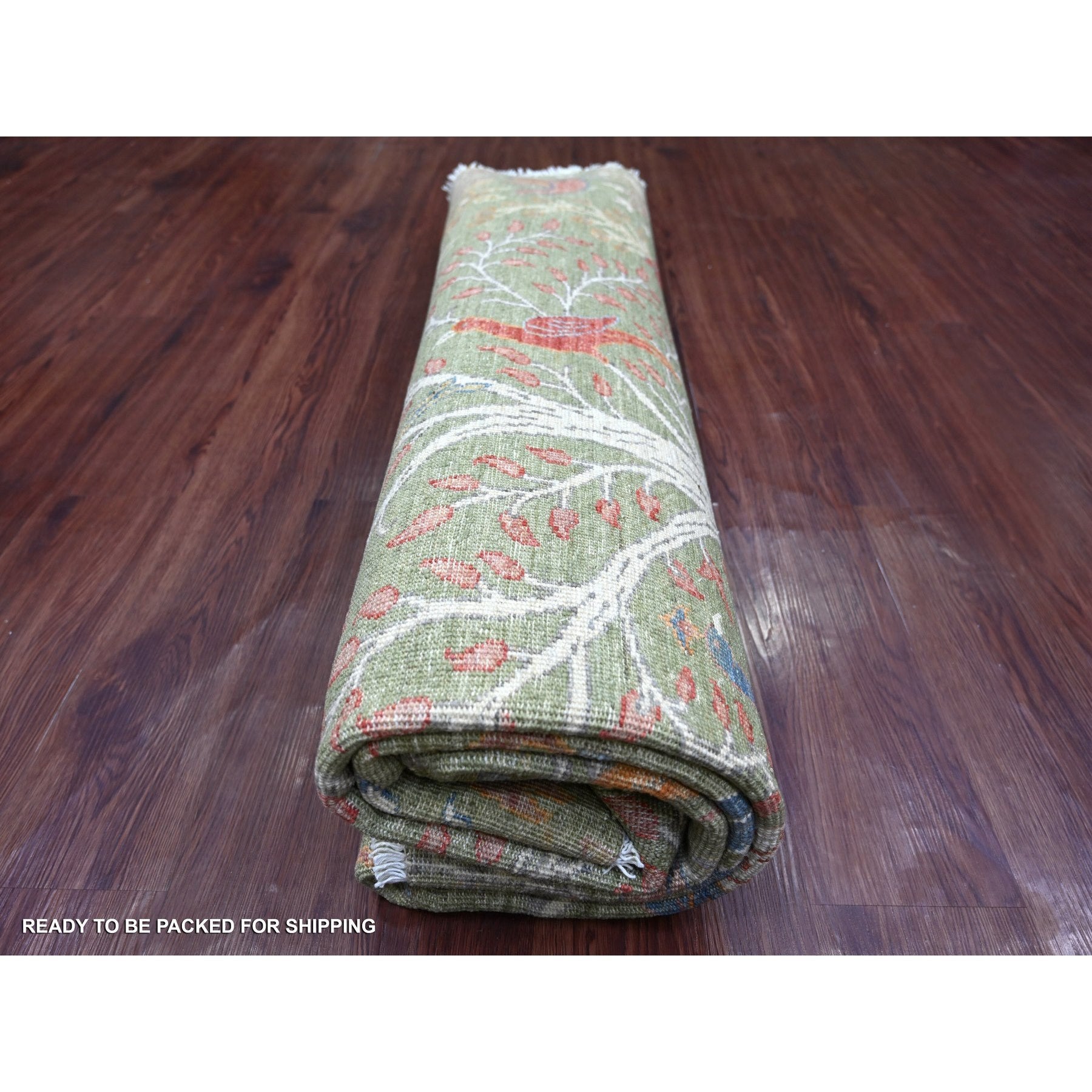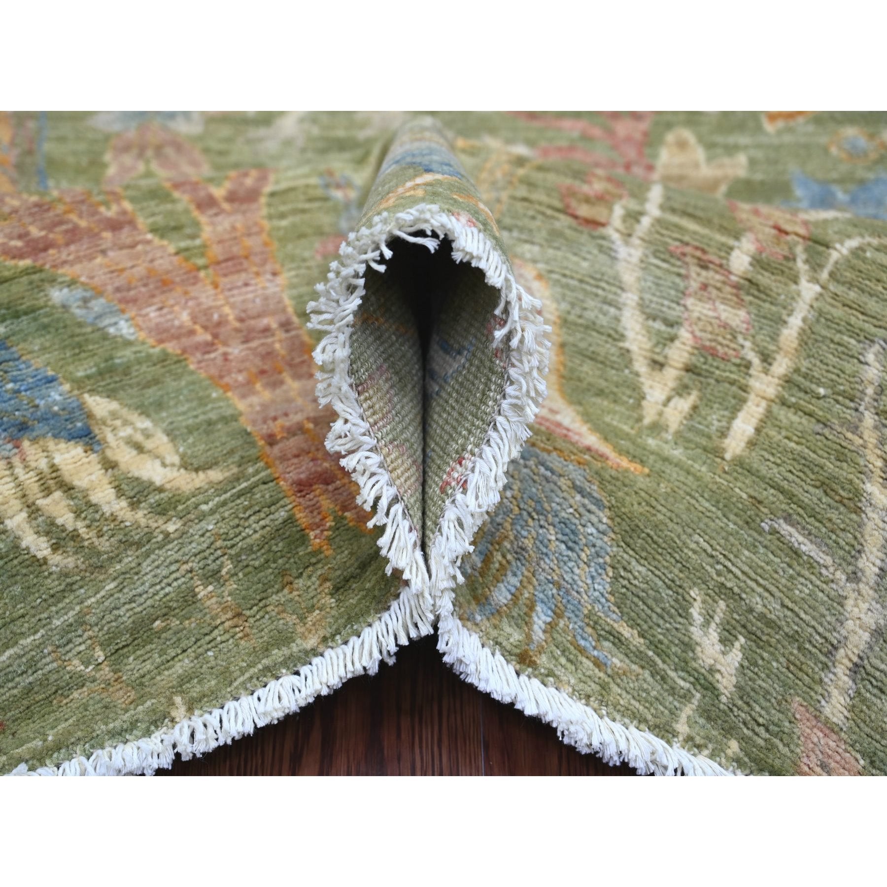8'x8' Pickle Green, Afghan Peshawar With Colorful Birds Of Paradise Design, Hand Knotted, Pure Wool, Natural Dyes, Round, Oriental Rug FWR126654