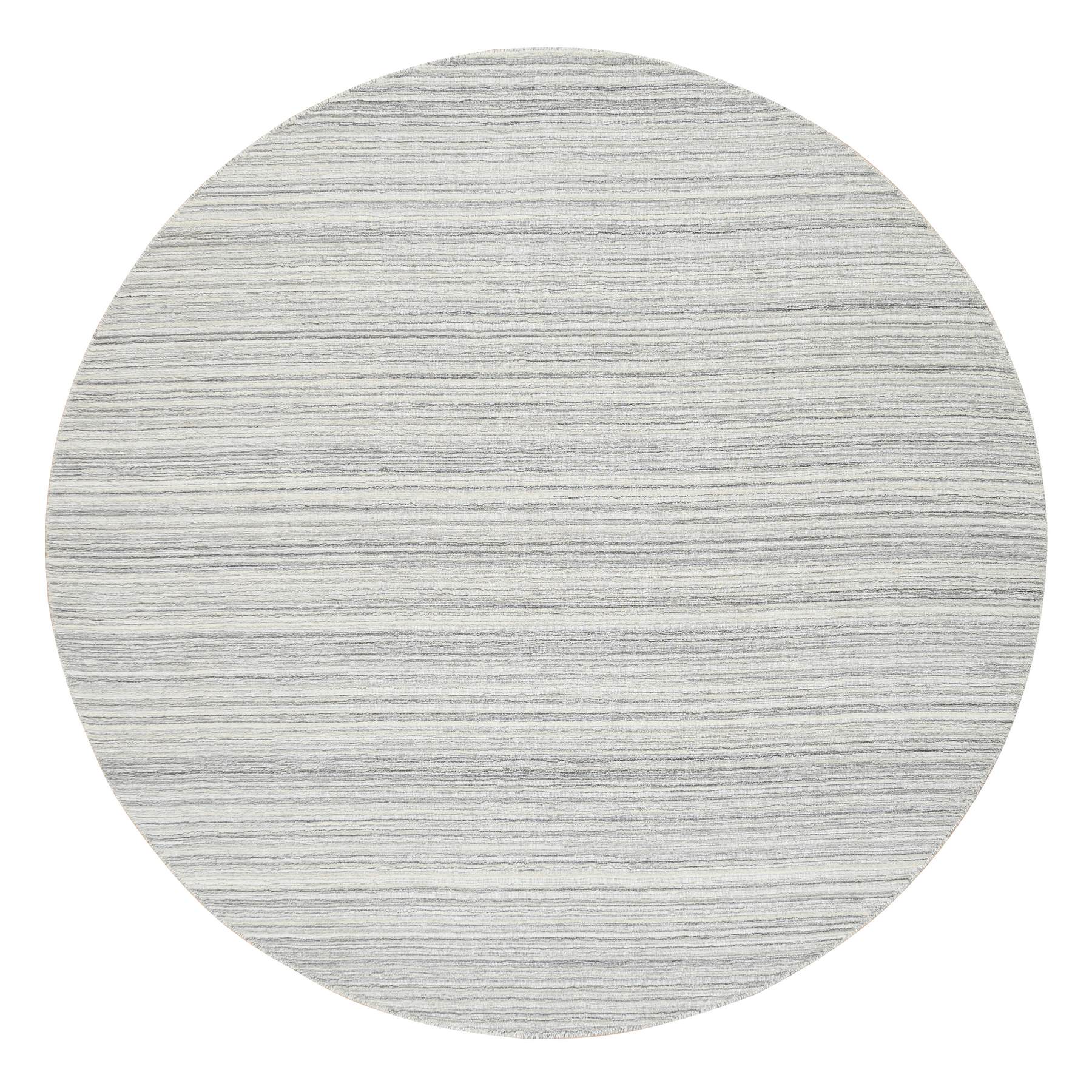 8'x8' Platinum Gray And Cream, Modern Design Thick And Plush, Plain Hand Loomed Undyed Natural Wool, Round Oriental Rug FWR389892