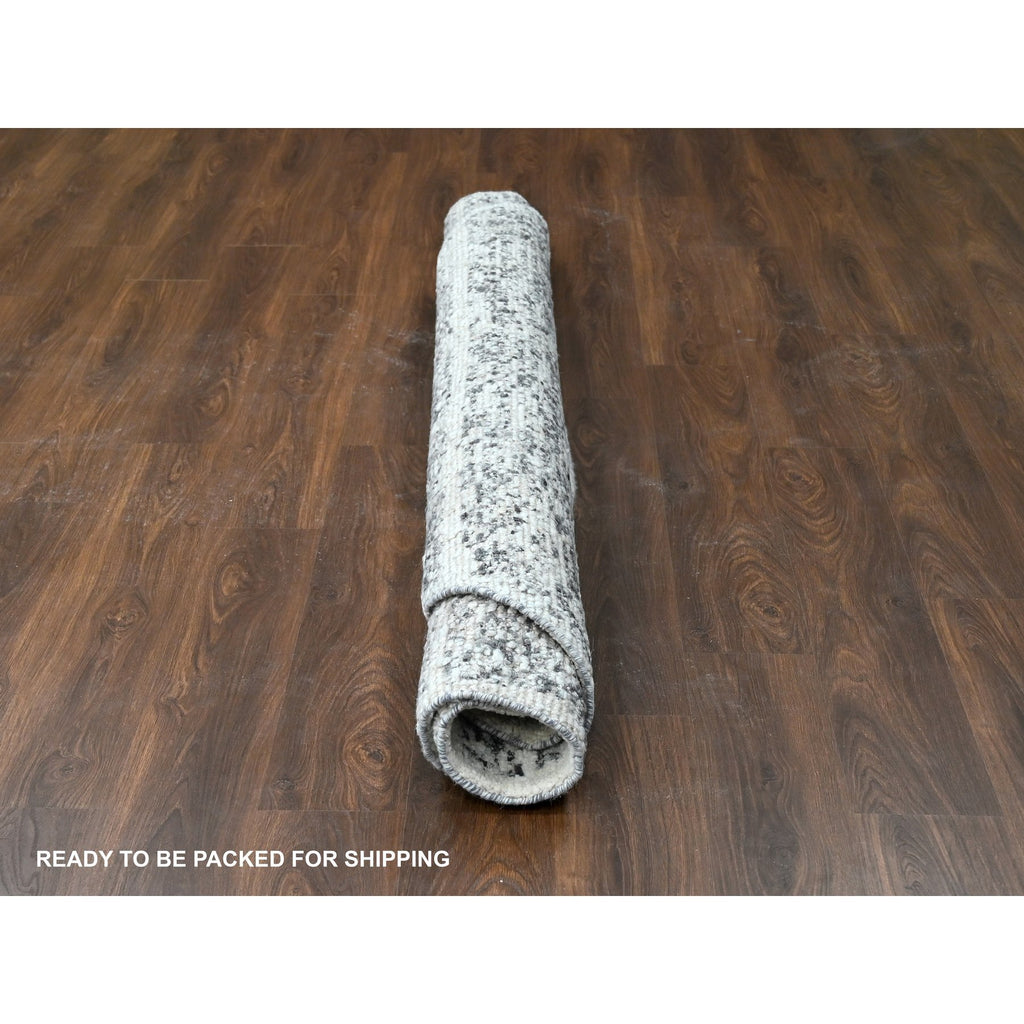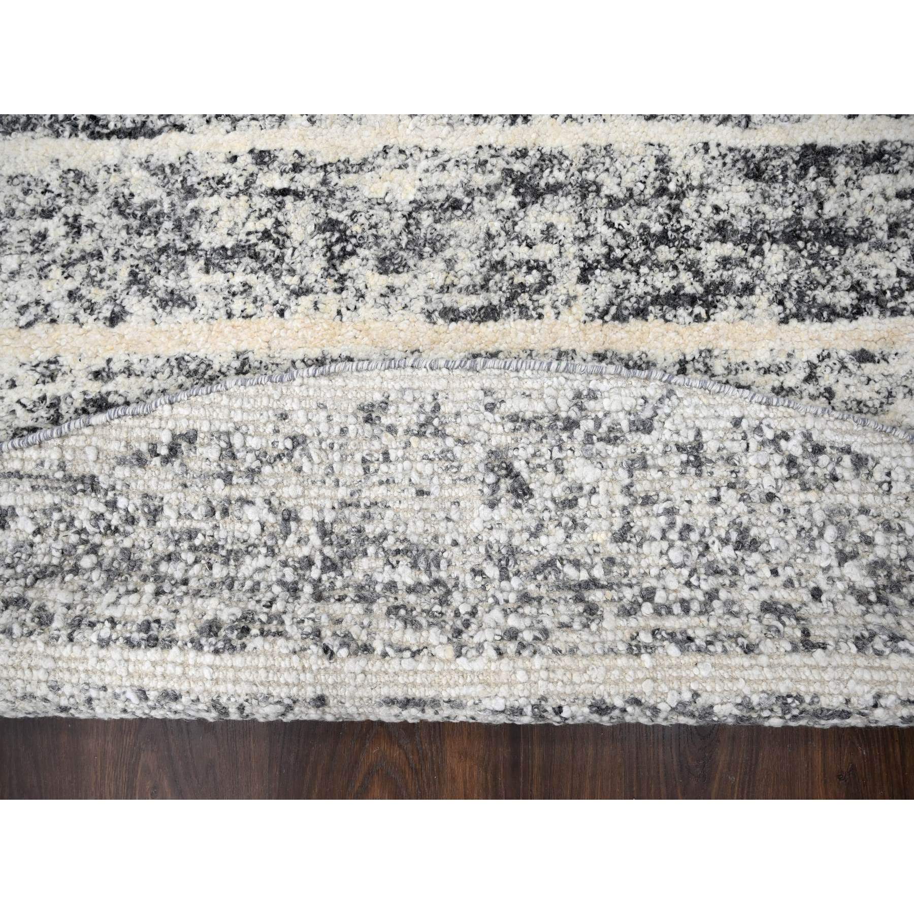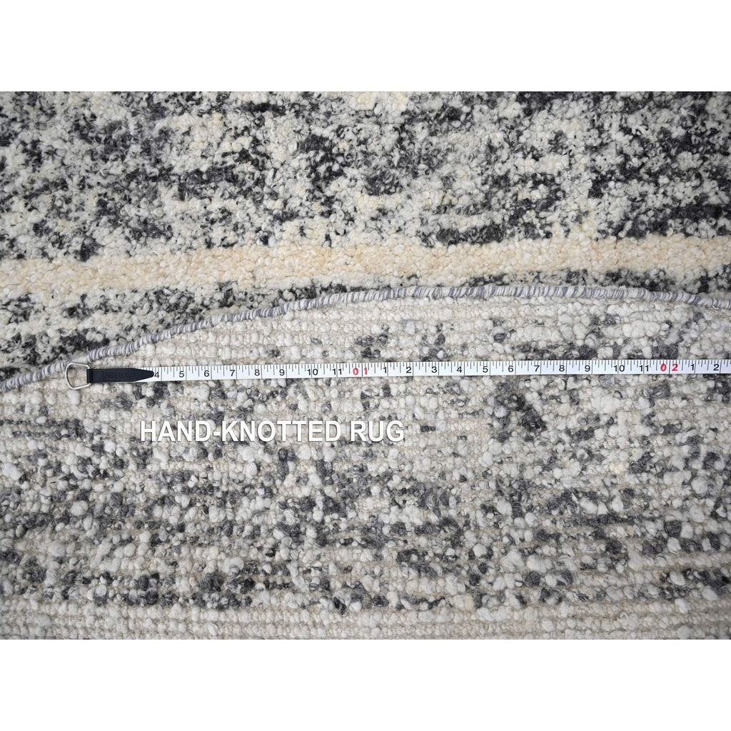 8'x8' Salt And Pepper, Modern Striae Design Thick And Plush, Organic Undyed Wool Hand Knotted, Round Oriental Rug FWR505284