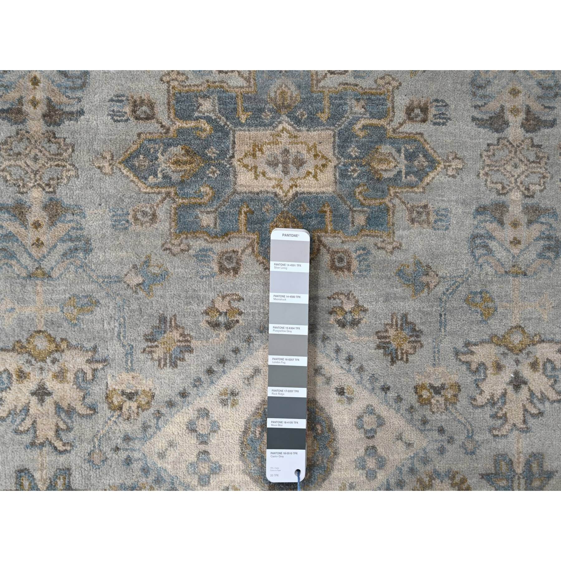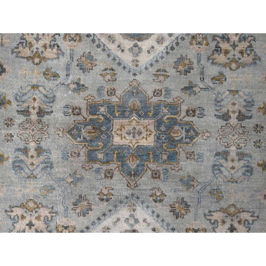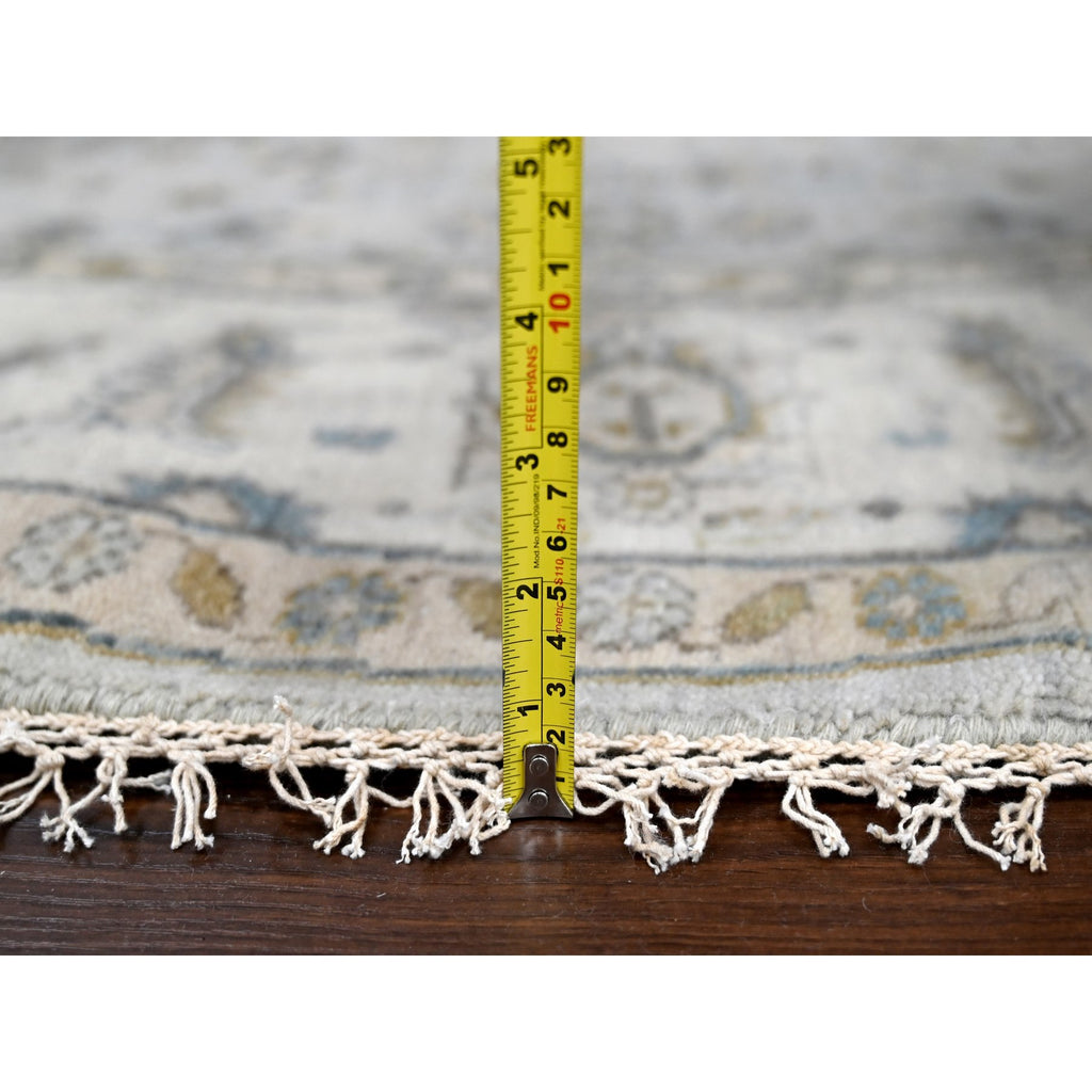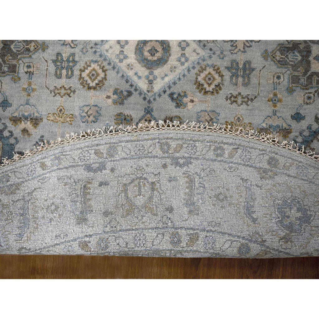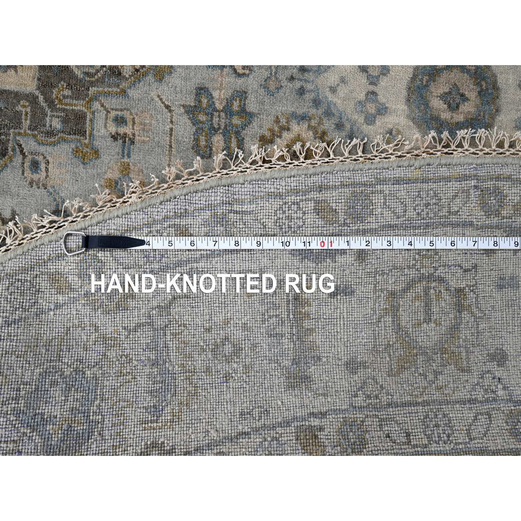 8'x8' Sea Gray, Hand Knotted Karajeh Design With Geometric Medallion, Vegetable Dyes, Soft And Vibrant Wool, Round Oriental Rug FWR508476