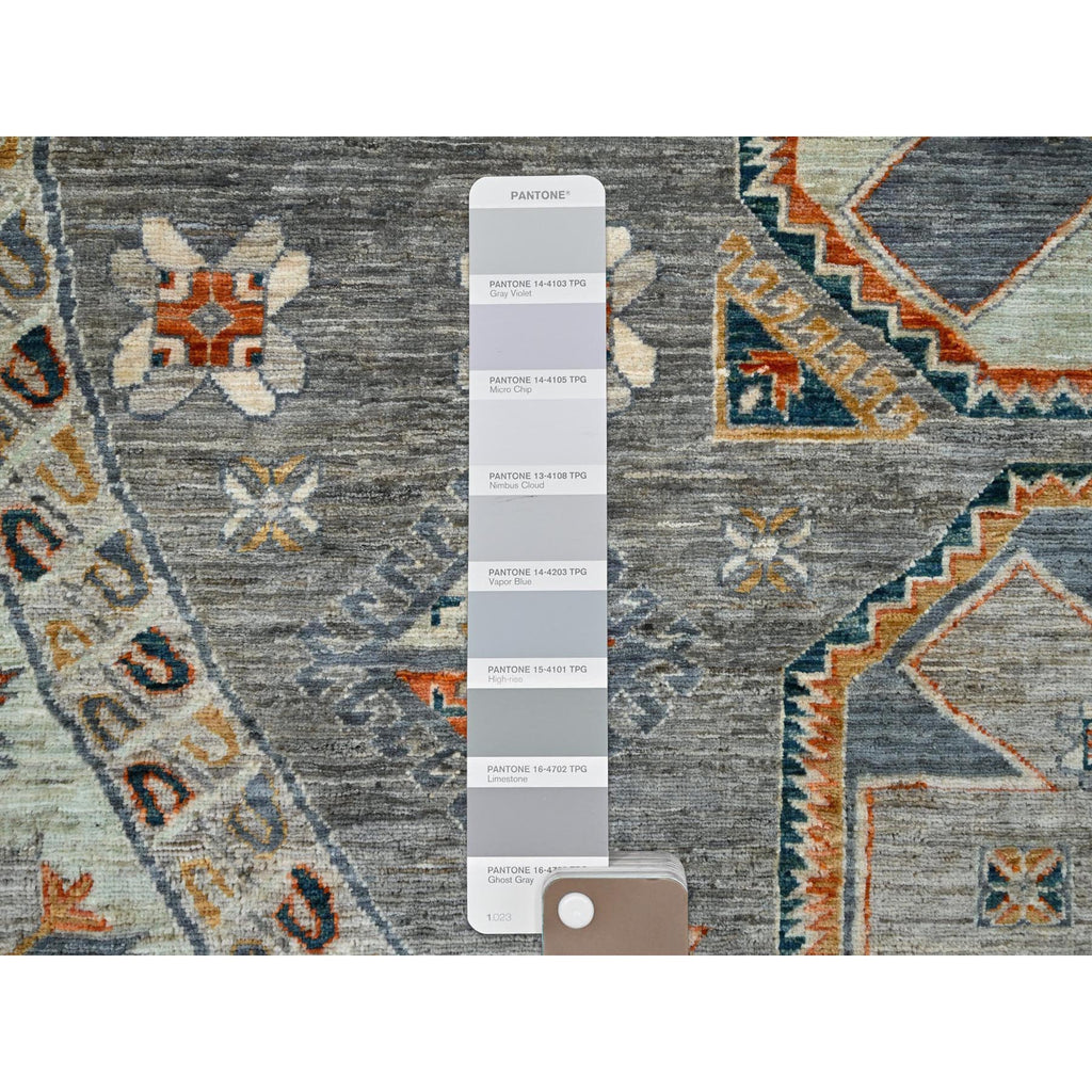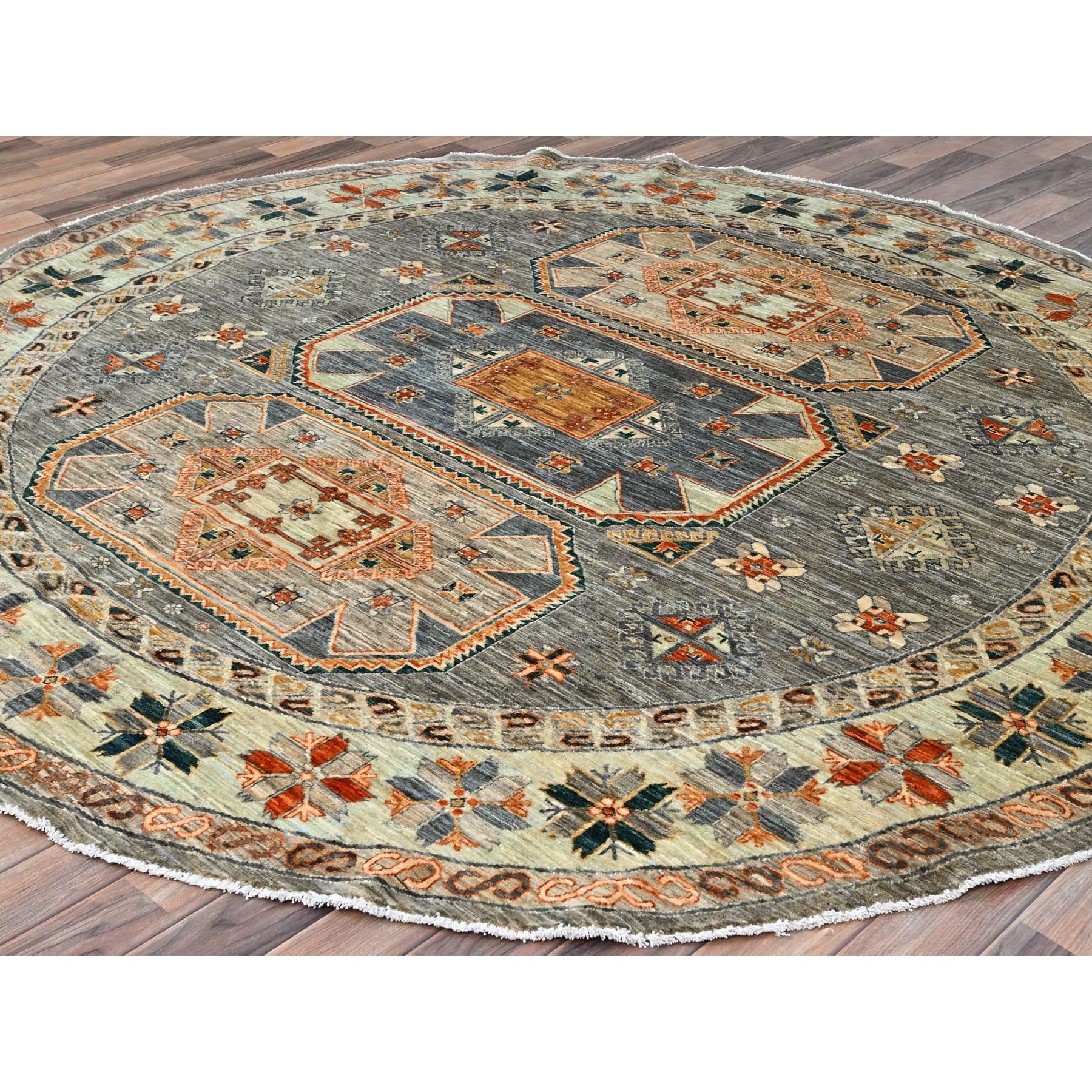8'x8' Seared Gray, Extra Soft Wool 200 Kpsi, Armenian Inspired Caucasian Design, Vegetable Dyes, Hand Knotted, Round Oriental Rug FWR518478