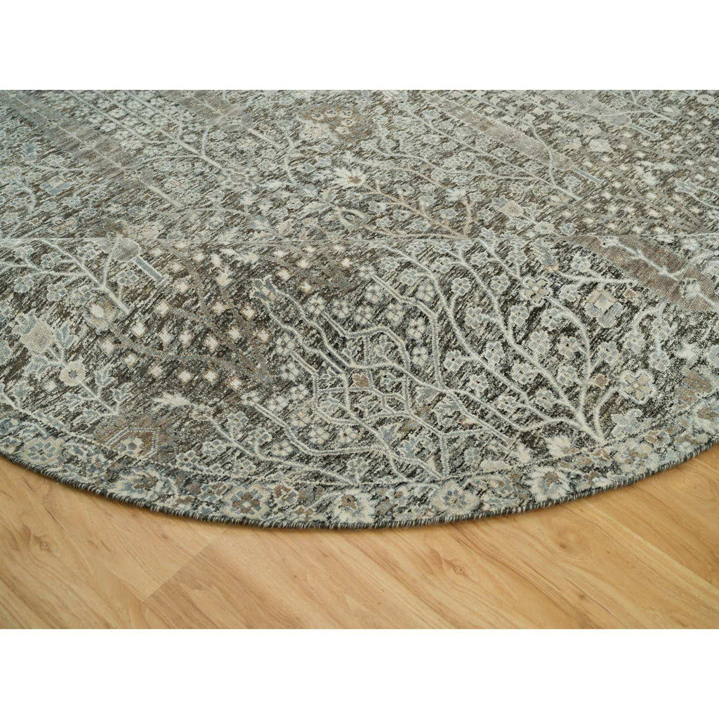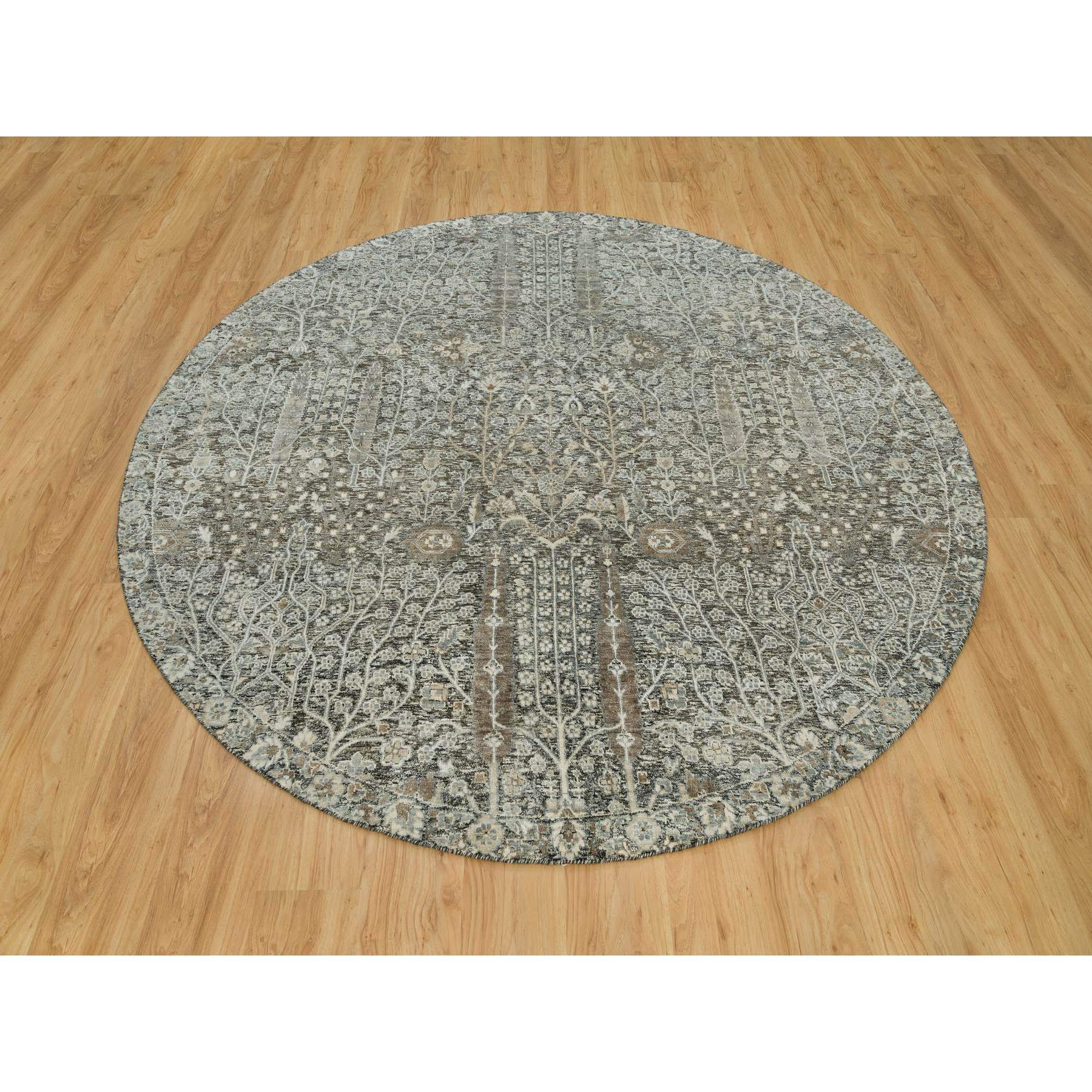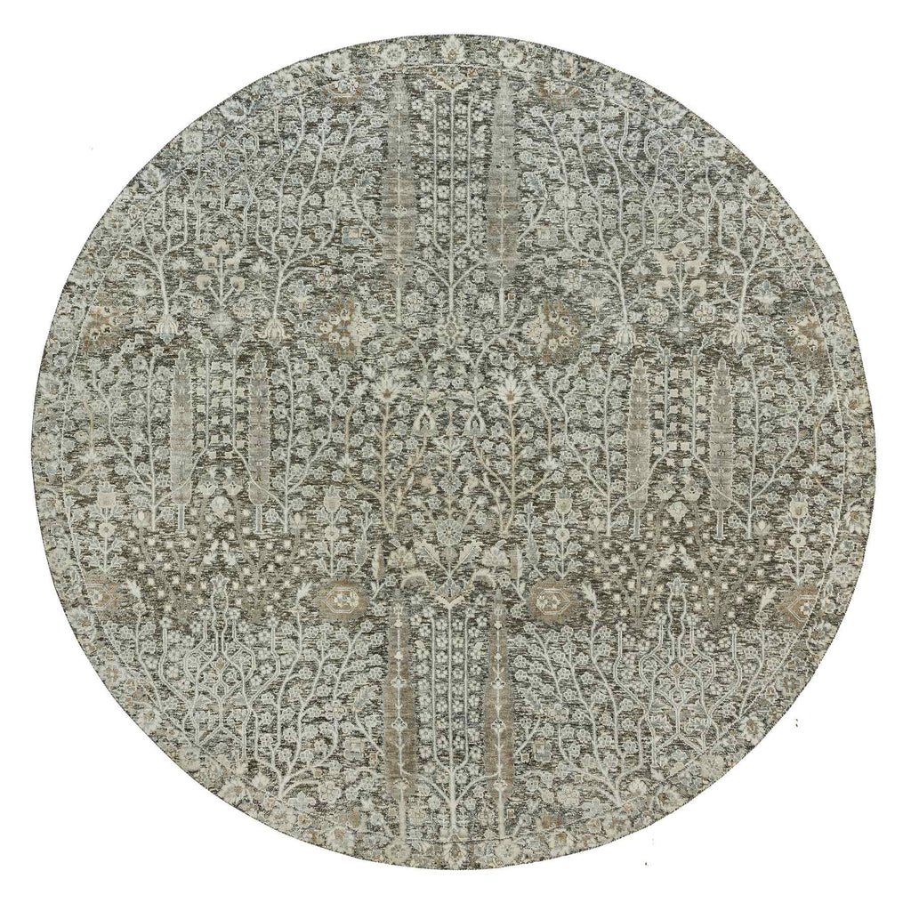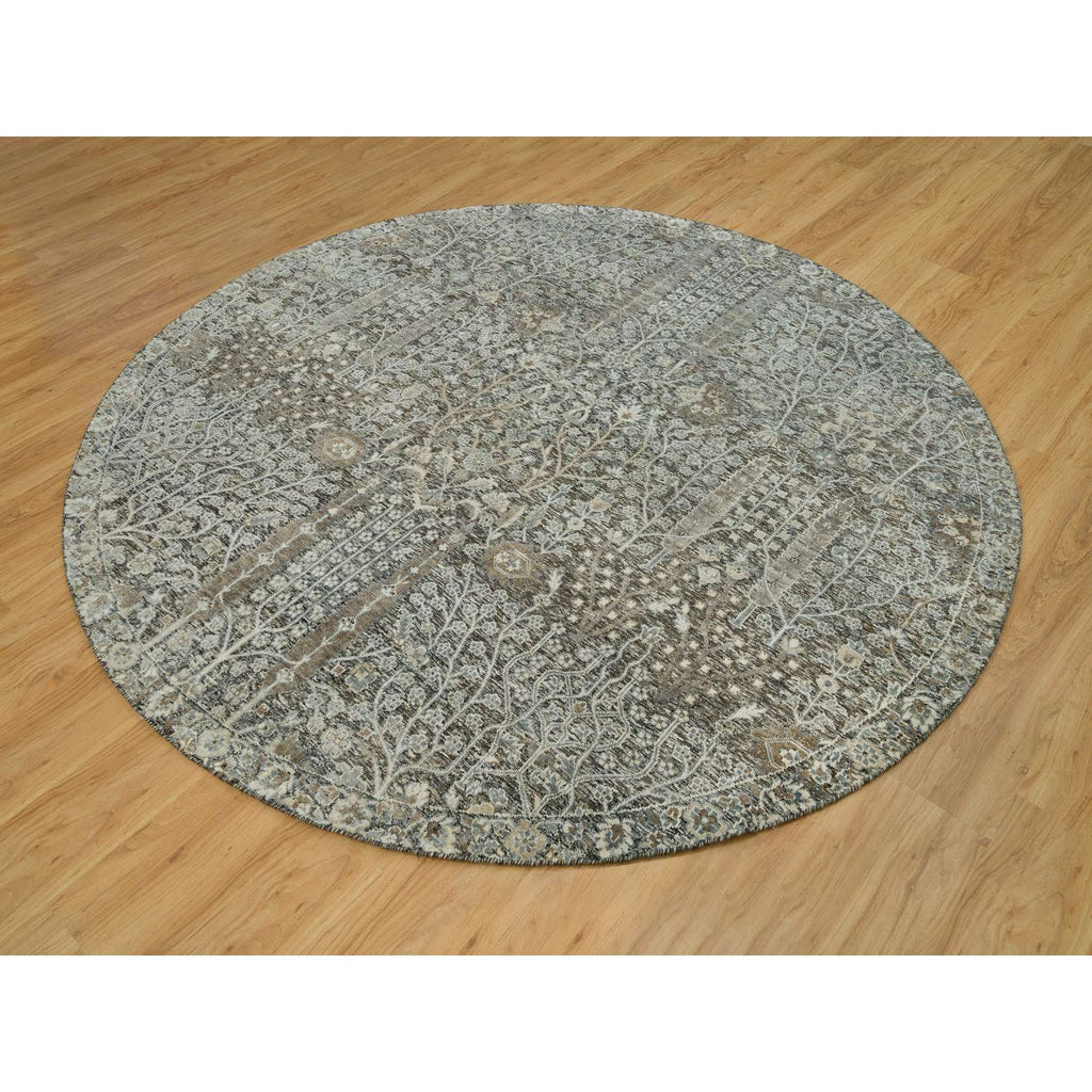 8'x8' Shades On Gray, Willow And Cypress Tree Design Silk With Textured Wool Hand-knotted Round Oriental Rug FWR541476
