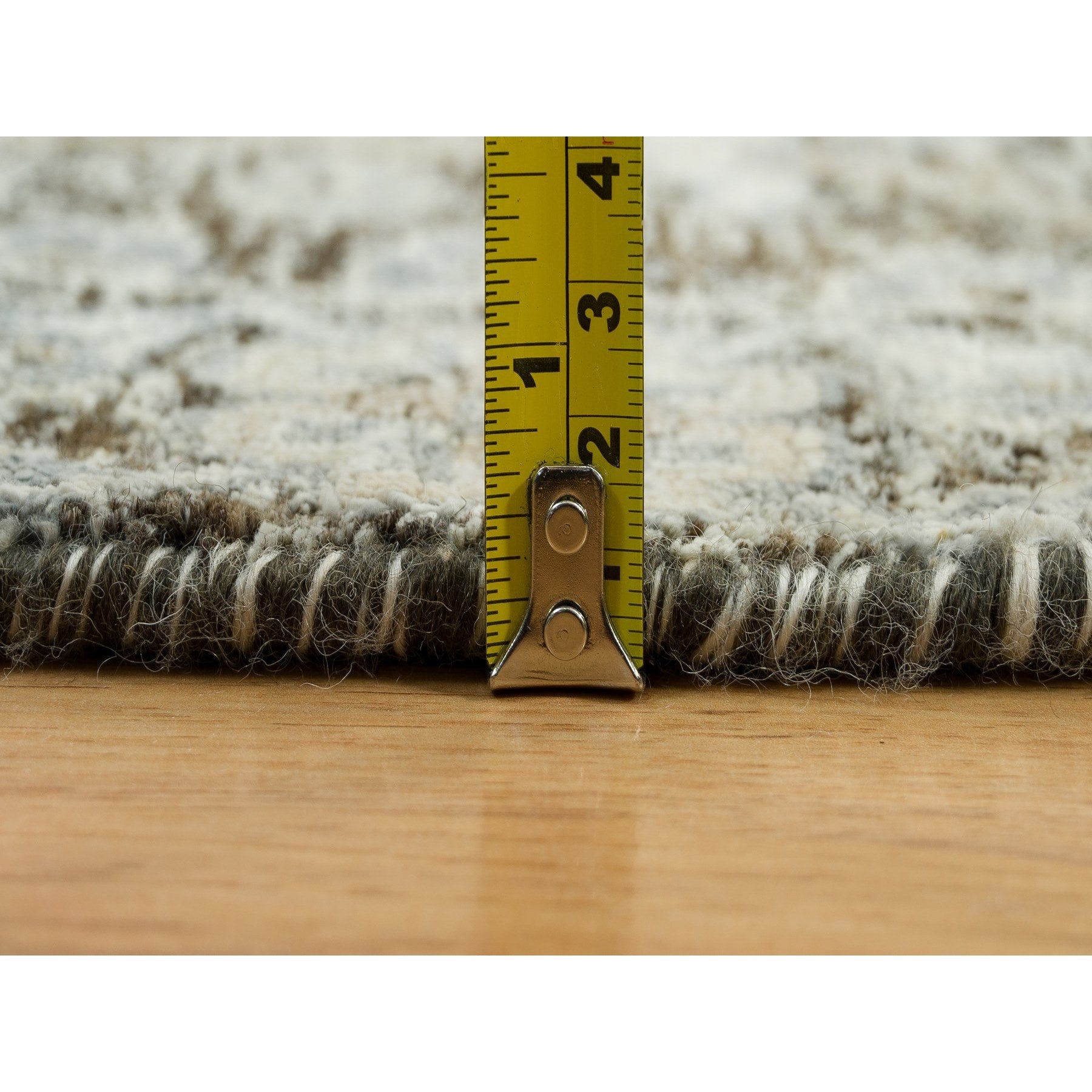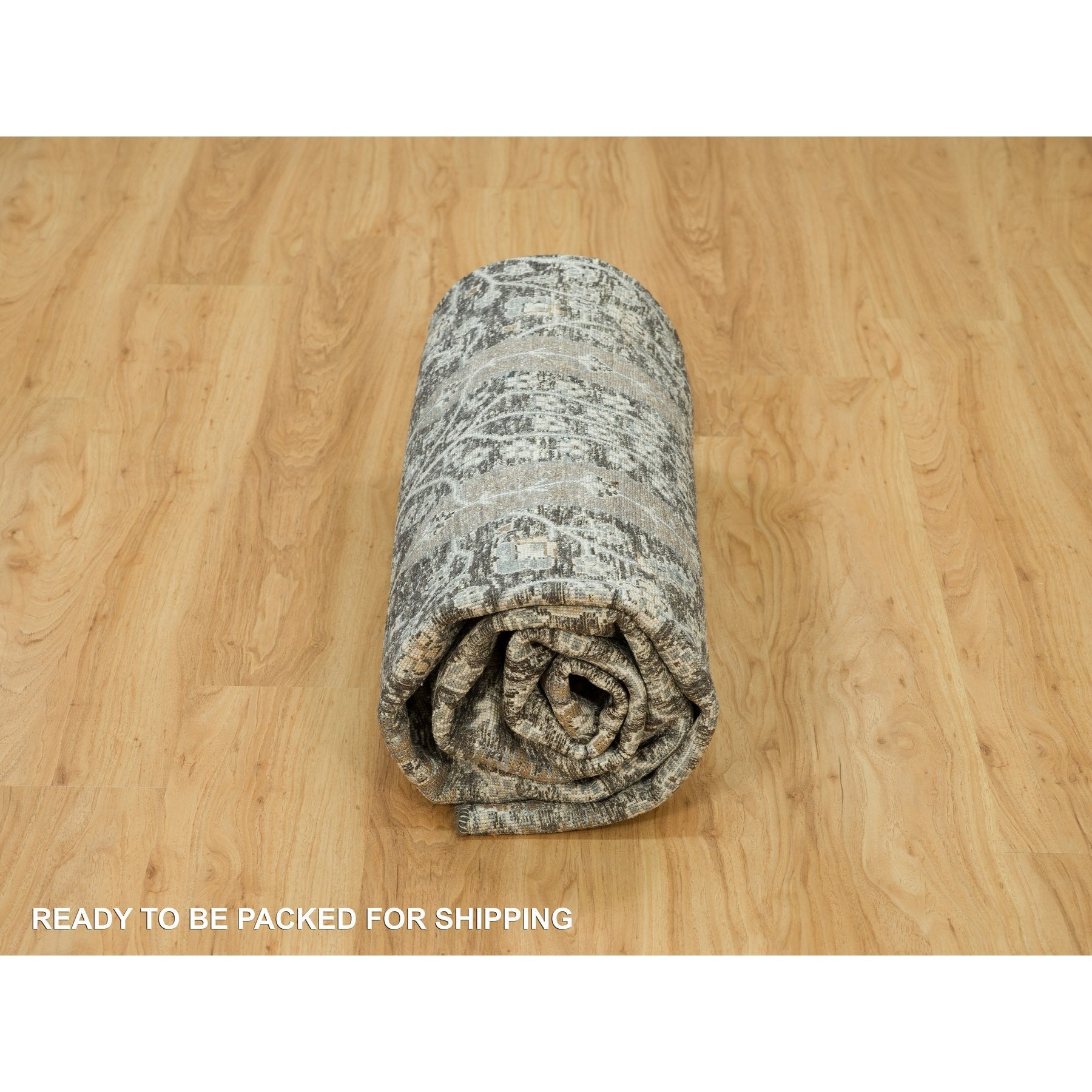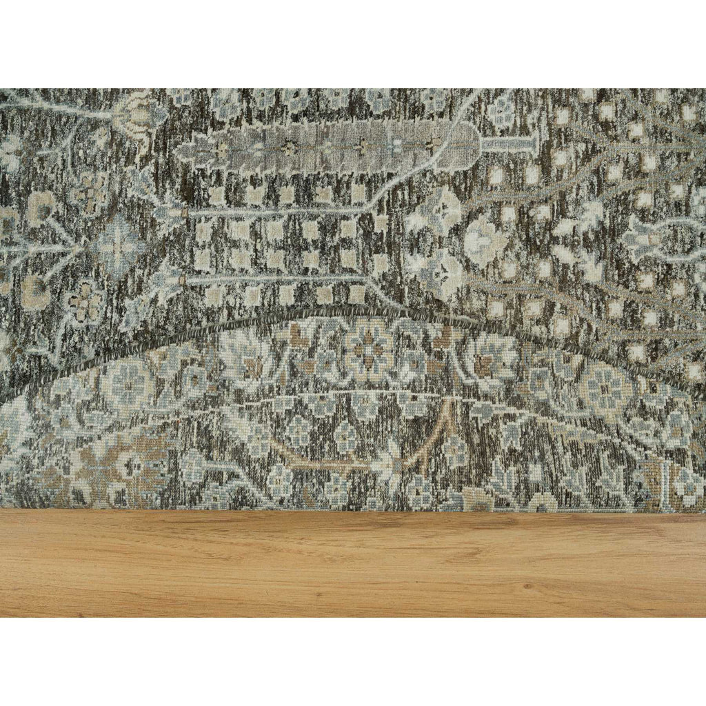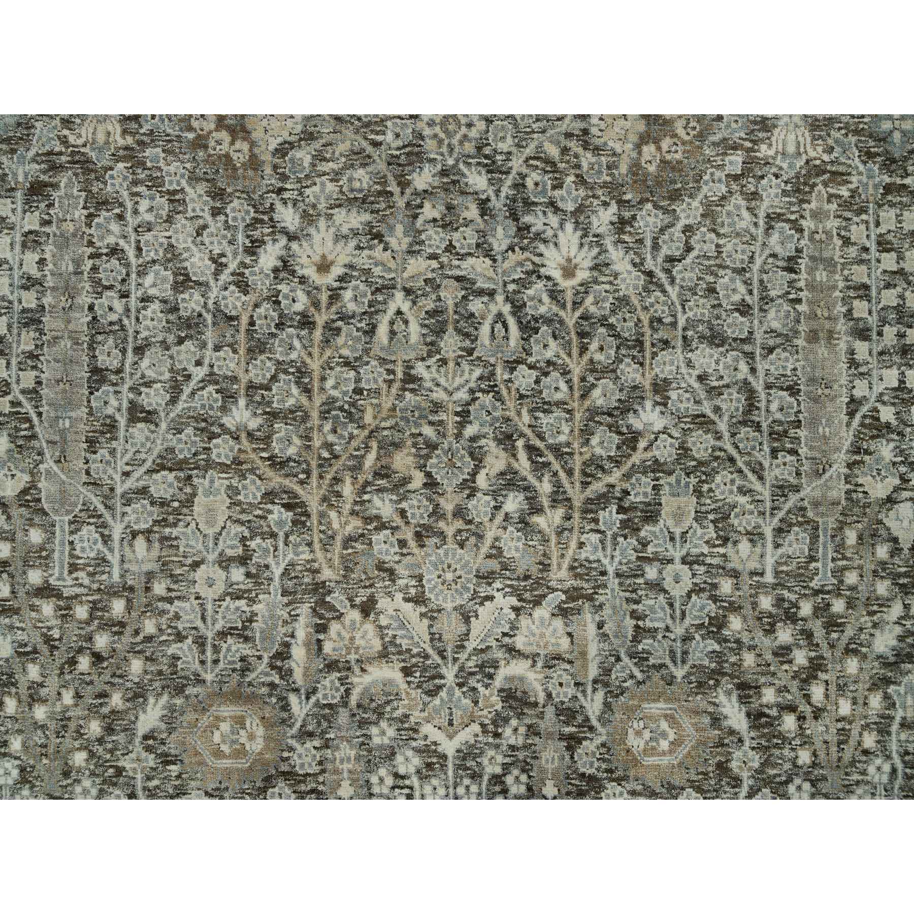 8'x8' Shades On Gray, Willow And Cypress Tree Design Silk With Textured Wool Hand-knotted Round Oriental Rug FWR541476