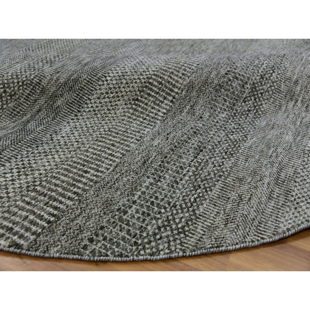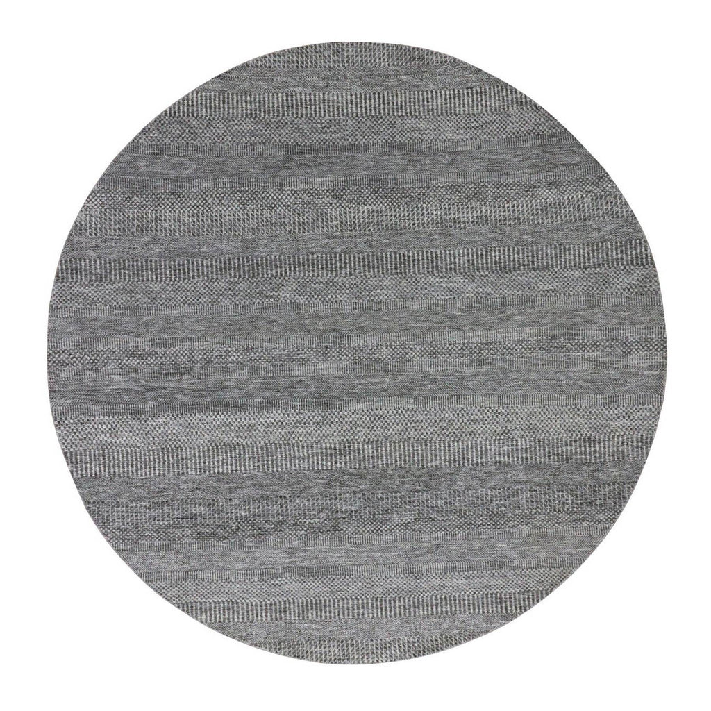8'x8' Solid Gray, Hand Knotted, Undyed 100% Wool, Modern Grass Design, Round Oriental Rug FWR477552