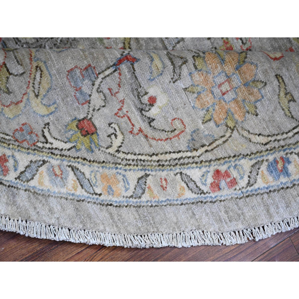 8'x8' Stone Eagle Gray, Hand Knotted, All Over Ziegler Mahal Design, High Grade Wool, Vegetable Dyes, Round Oriental Rug FWR448920