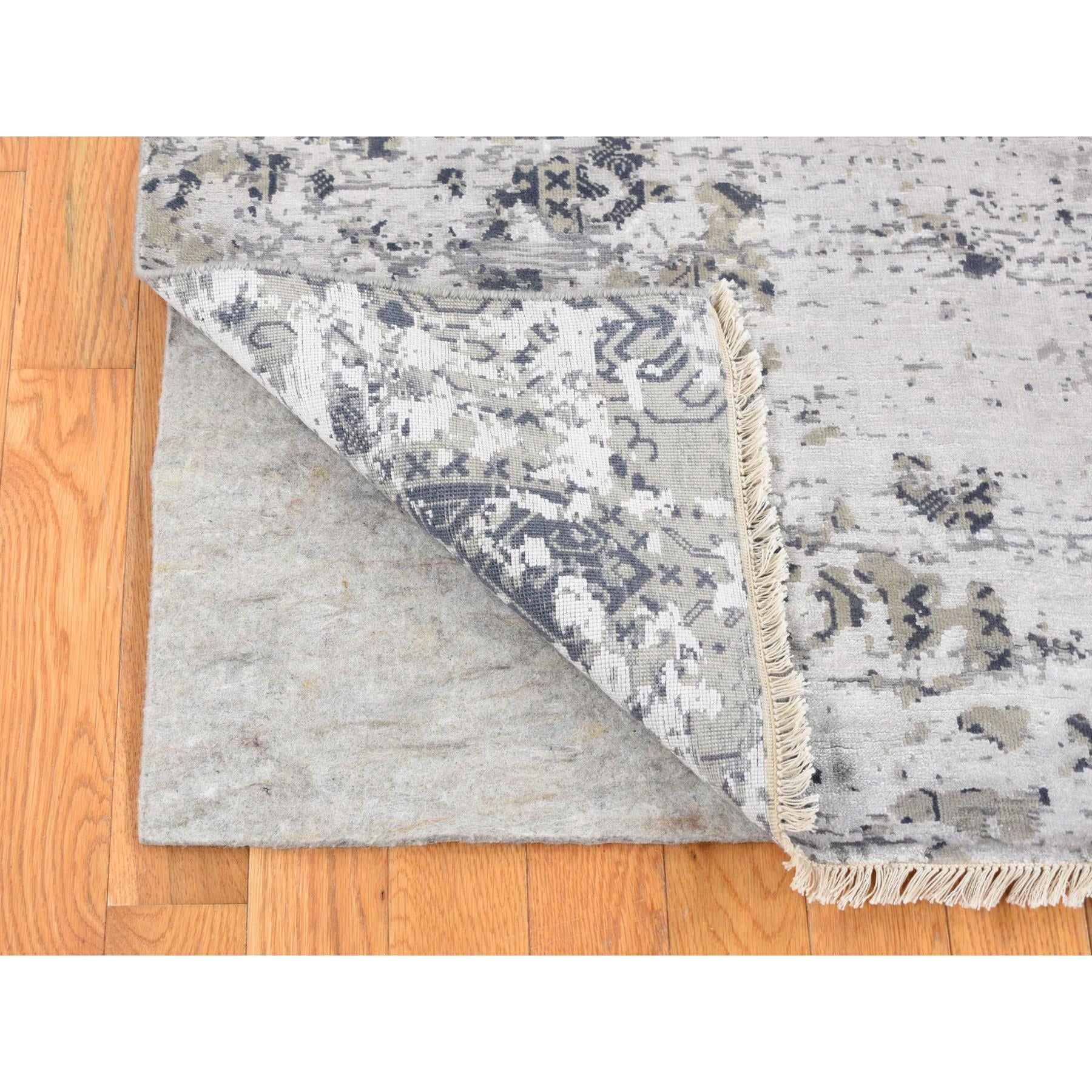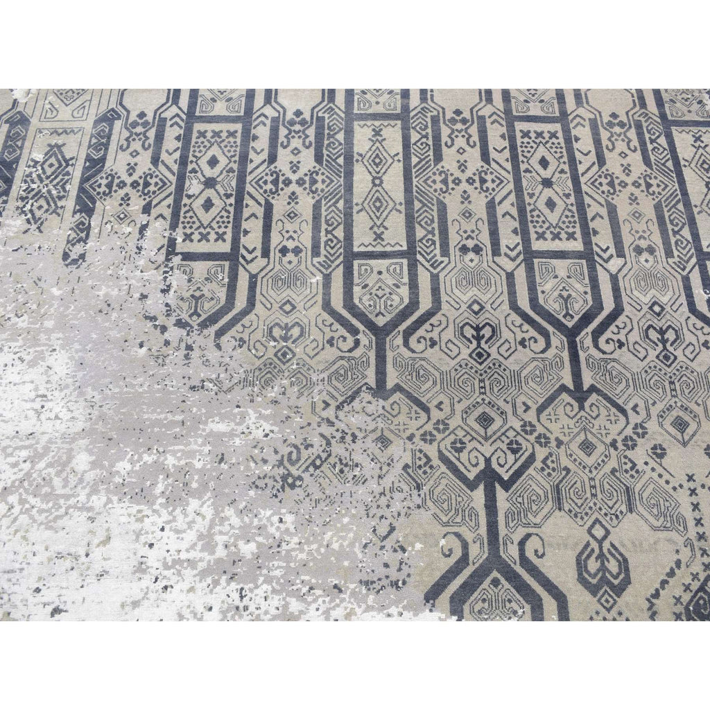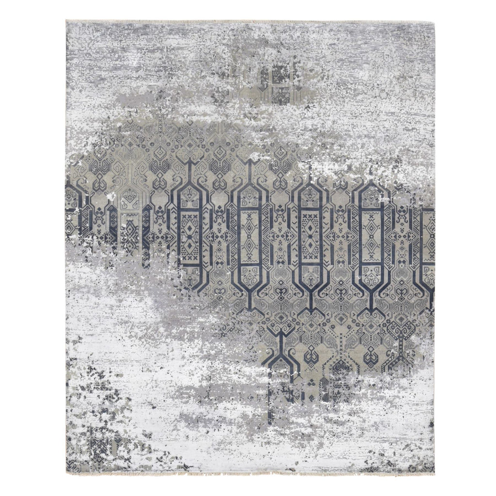 8'x9'10" Agreeable Gray, Dense Weave Broken And Erased Geometric Design, Art Wool And Silk Hand Knotted, Oriental Rug FWR484752