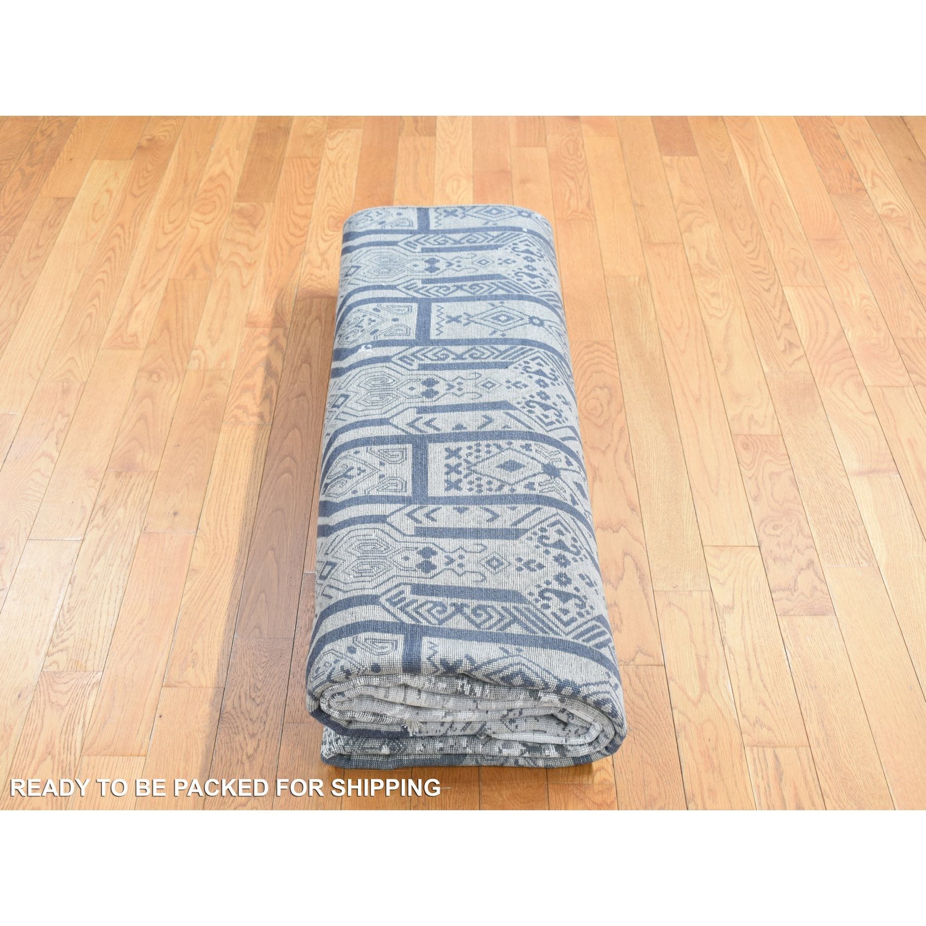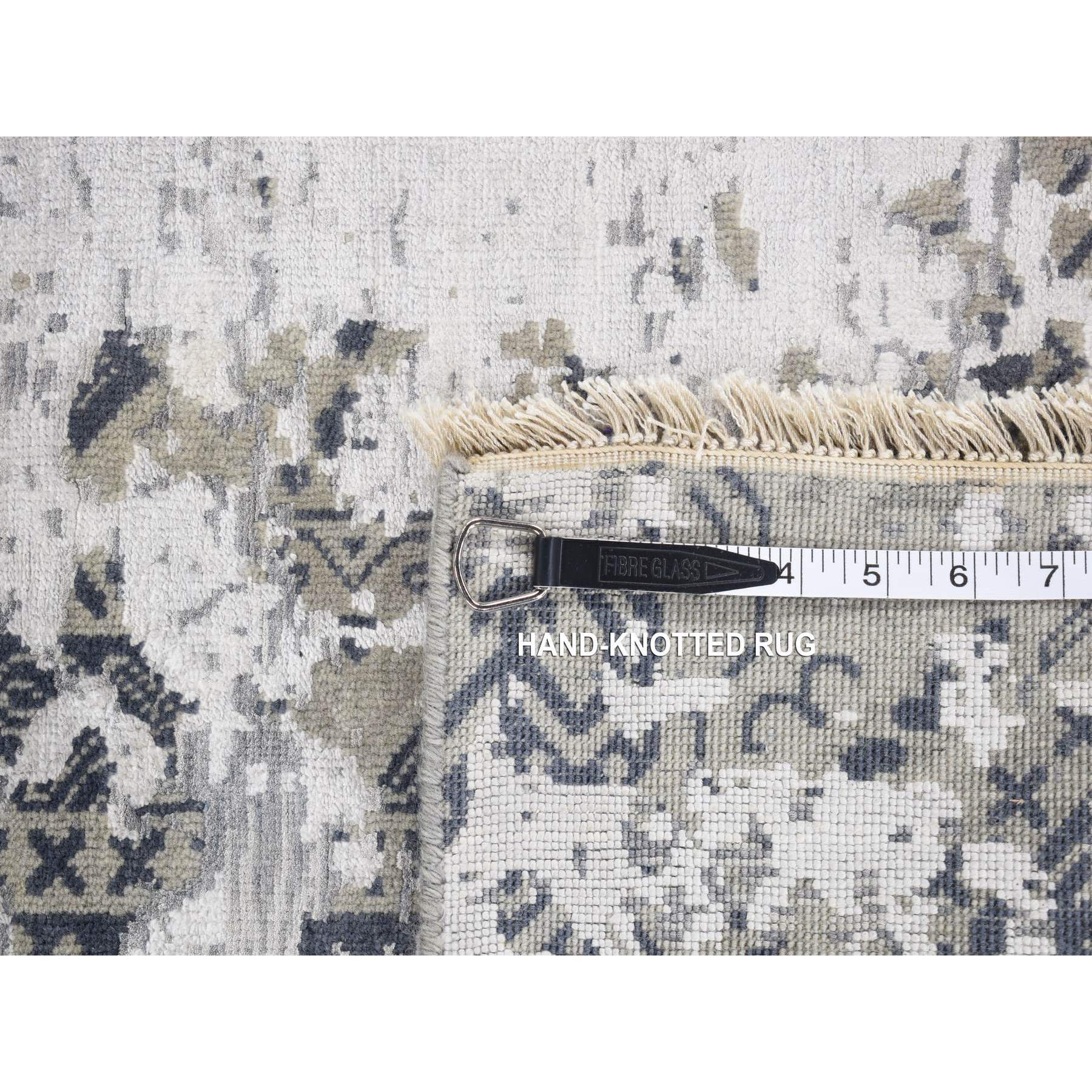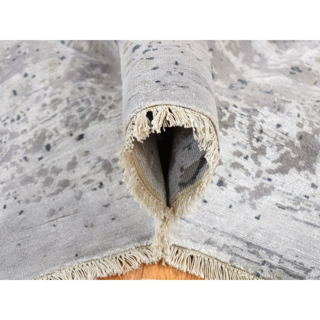 8'x9'10" Agreeable Gray, Dense Weave Broken And Erased Geometric Design, Art Wool And Silk Hand Knotted, Oriental Rug FWR484752