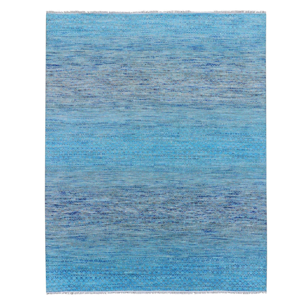 8'x9'10" Blue, Pure Wool Hand Knotted, Modern Chiaroscuro Collection Thick And Plush, Oriental Rug FWR475212