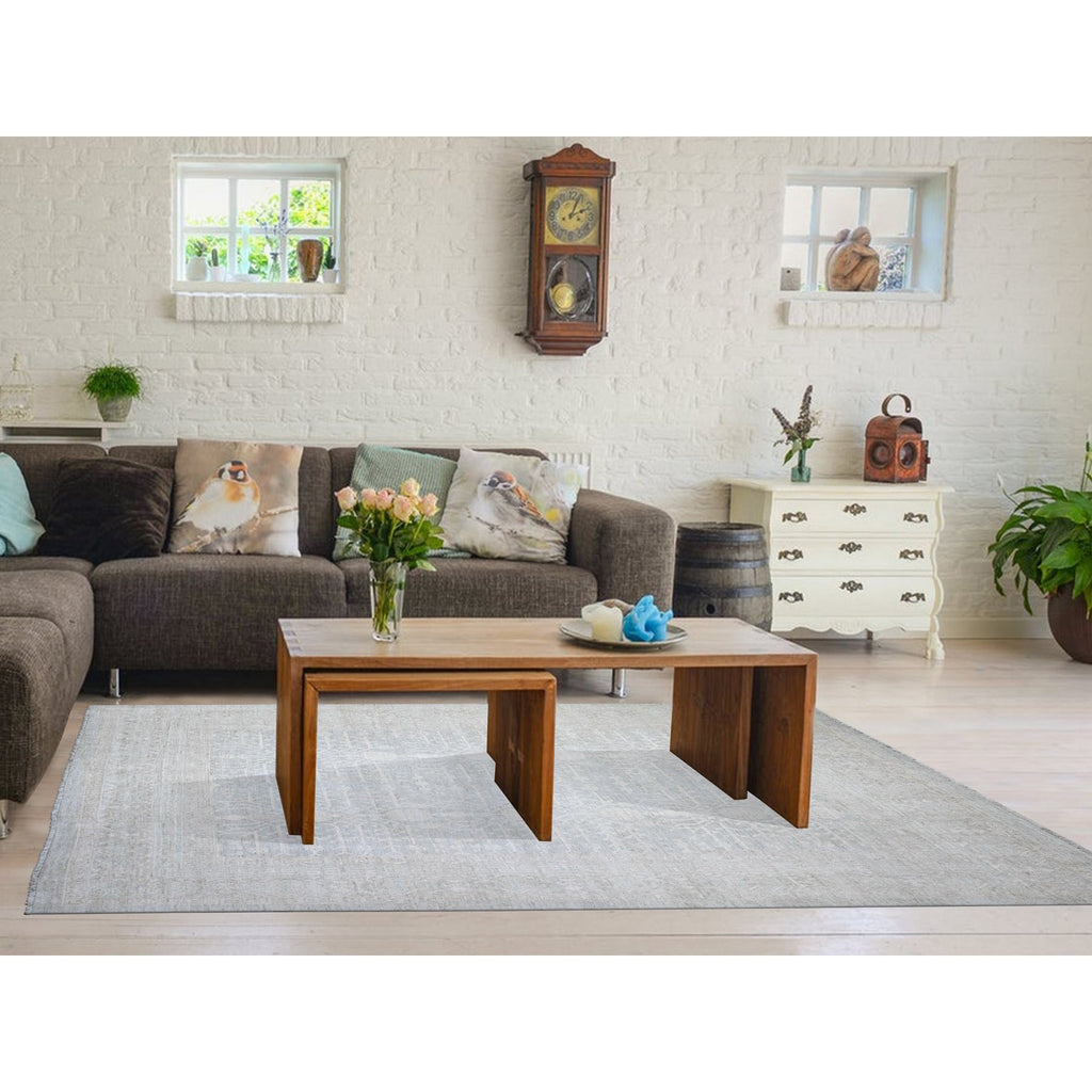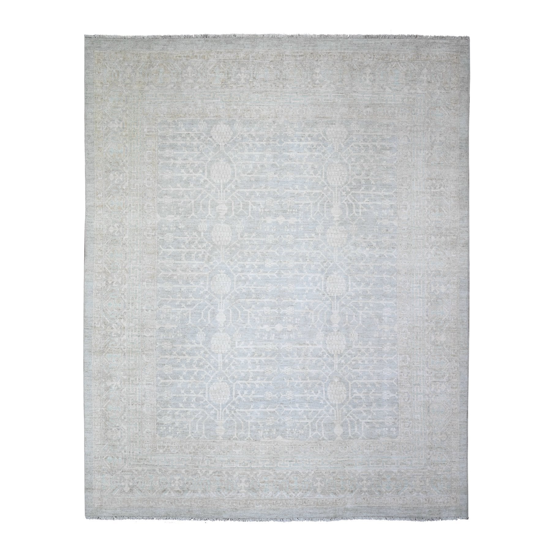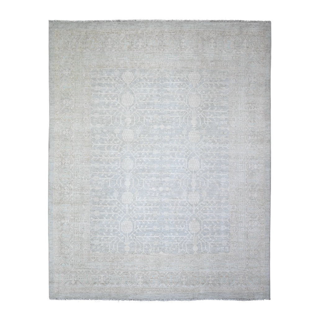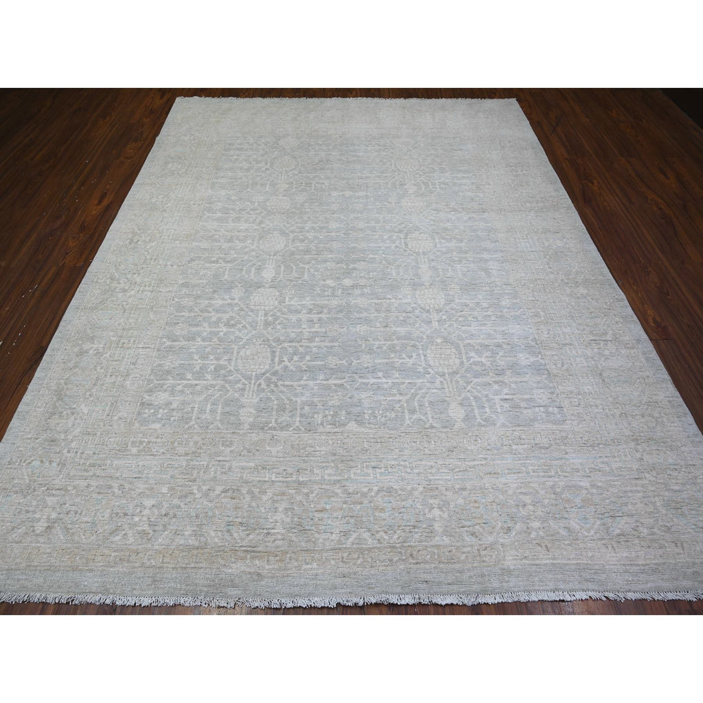 8'x9'10" Chrome Gray, Washed Out Khotan Inspired Pomegranate Design, High Grade Wool, Hand Knotted, Oriental Rug FWR447840