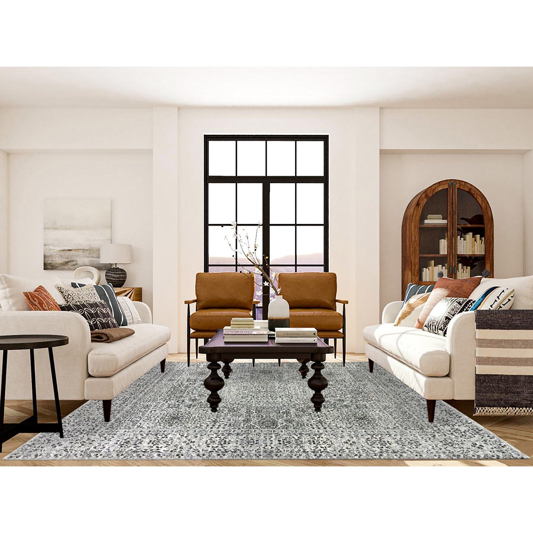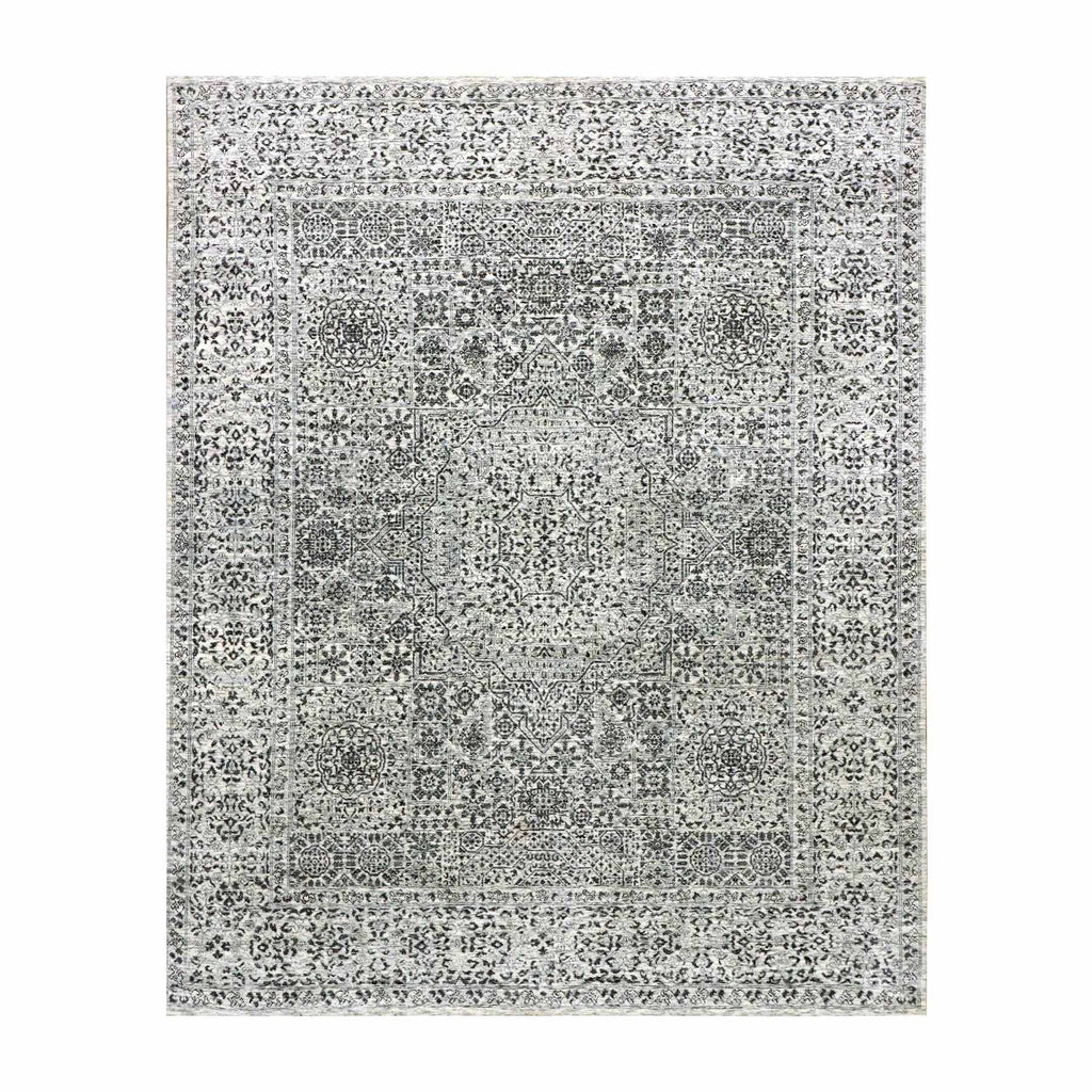 8'x9'10" Ghost White, Tone On Tone Design, Undyed 100% Wool, Hand Knotted, Mamluk Dynasty, Oriental Rug FWR476826