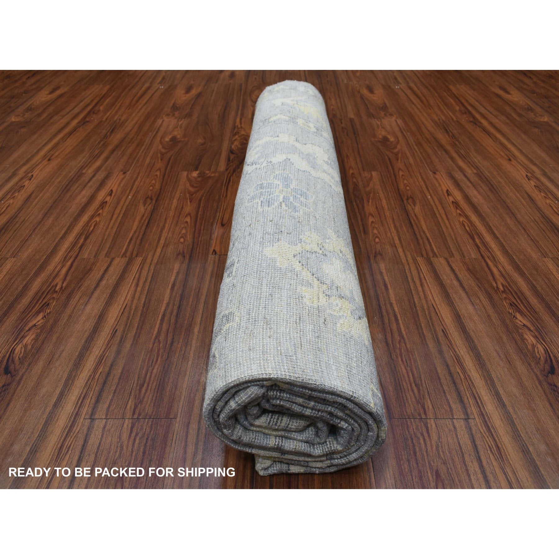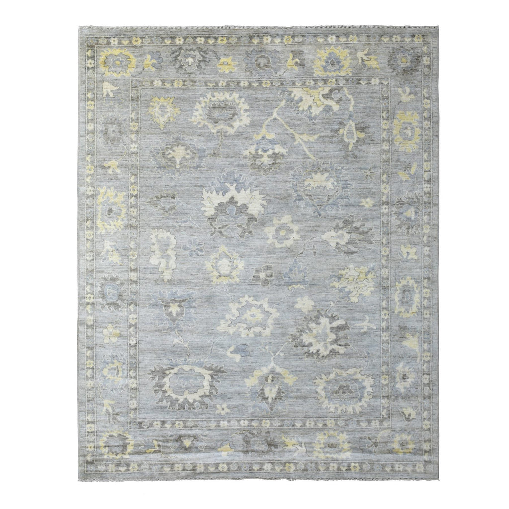 8'x9'10" Hand Knotted, Gray, Afghan Angora Ushak With Floral Pattern And Soft Wool Oriental Rug FWR418704