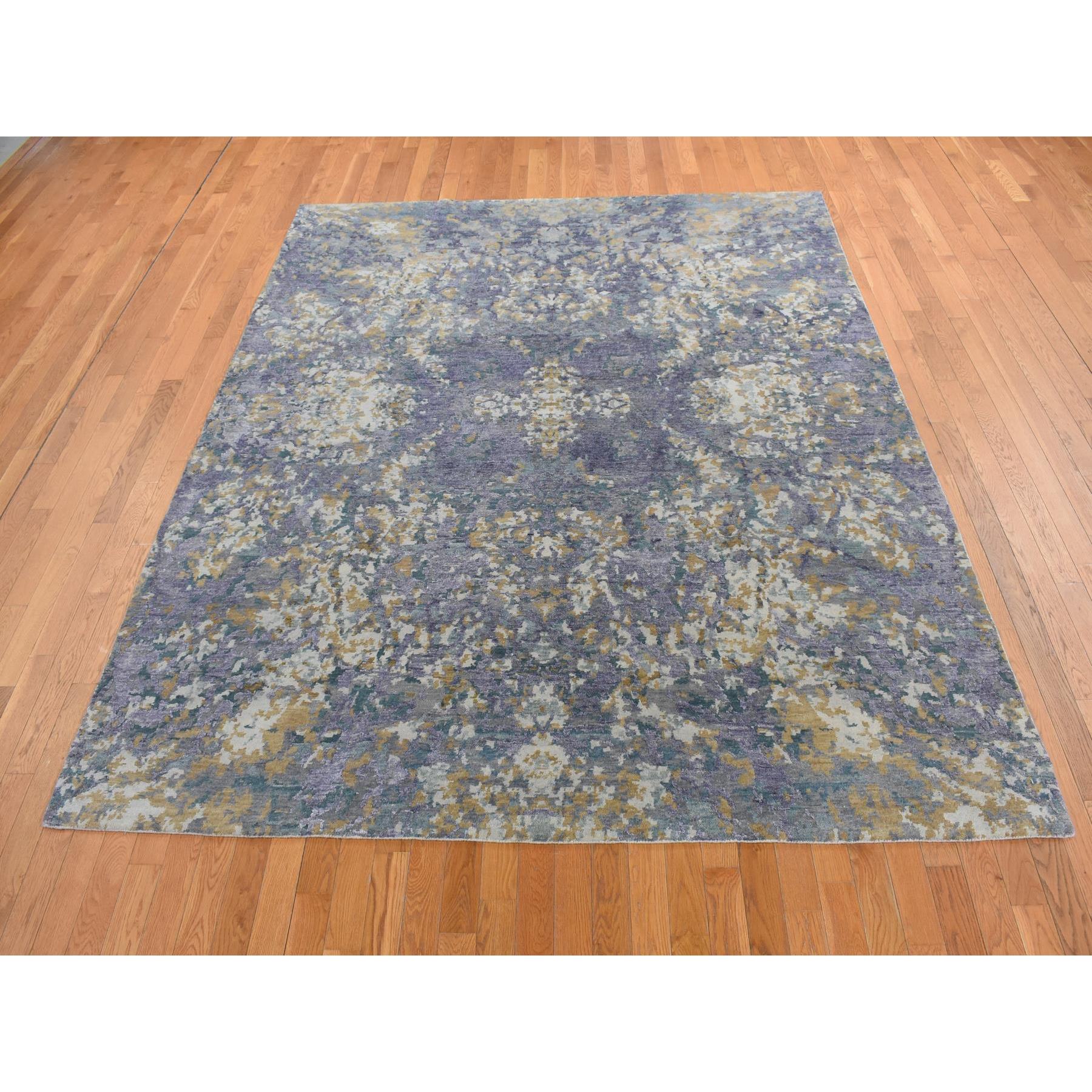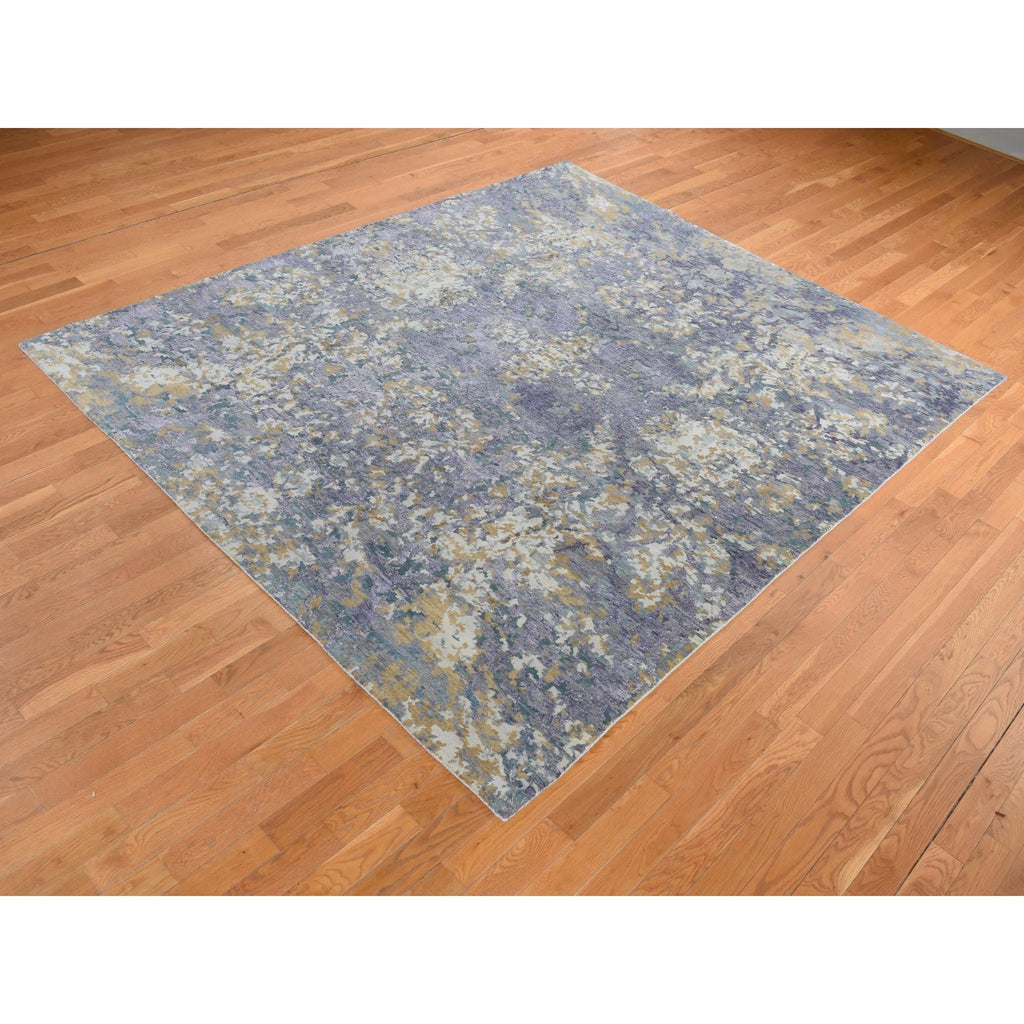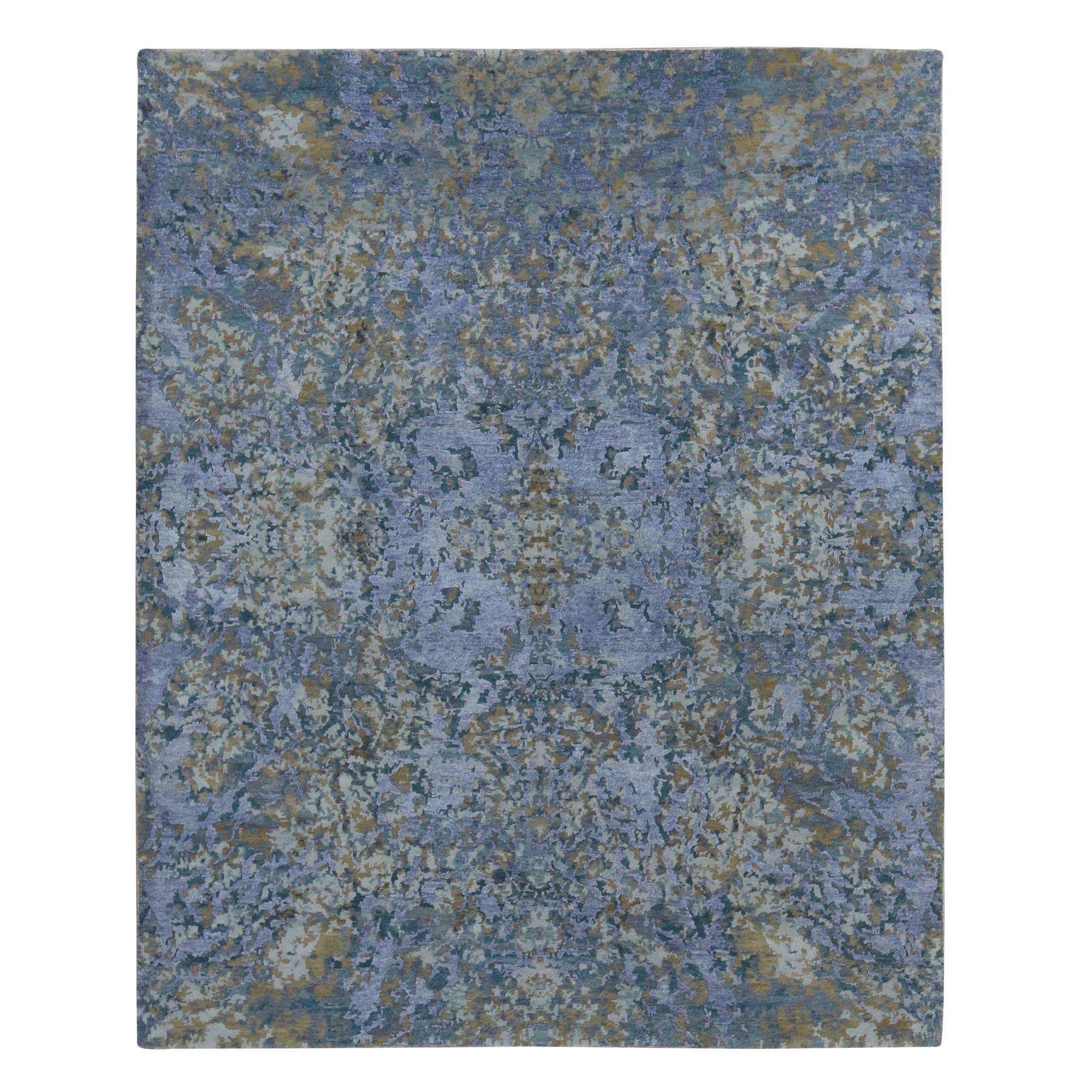 8'x9'10" Lavender Gray, Abstract Design, Soft And Luxurious, Wool And Silk, Hand Knotted, Oriental Rug FWR485016