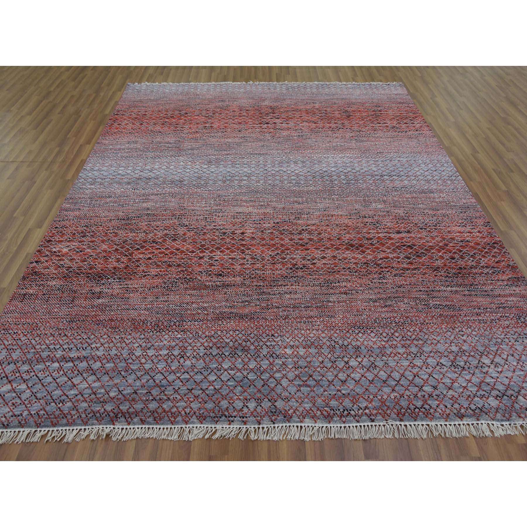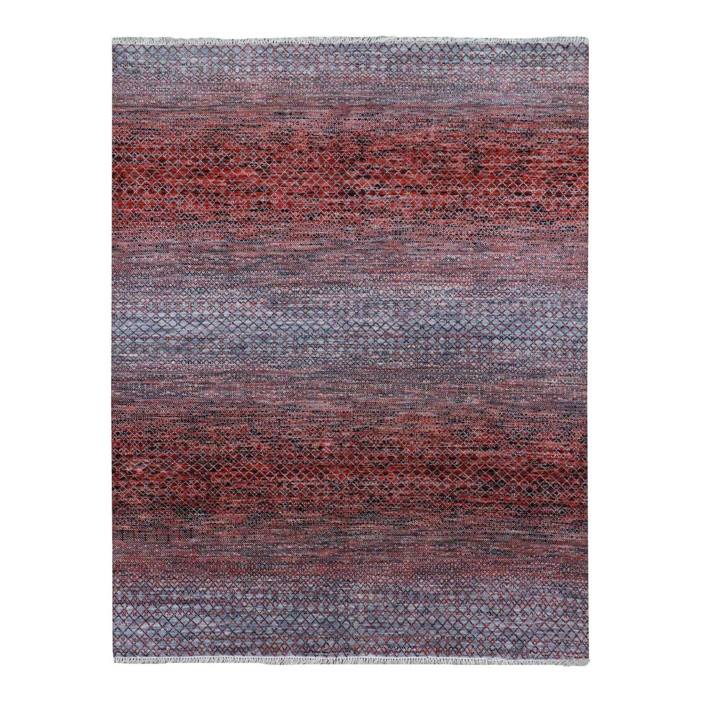 8'x9'10" Red Chiaroscuro Collection, Hand Knotted, Extra Soft Wool, Oriental Rug FWR475128