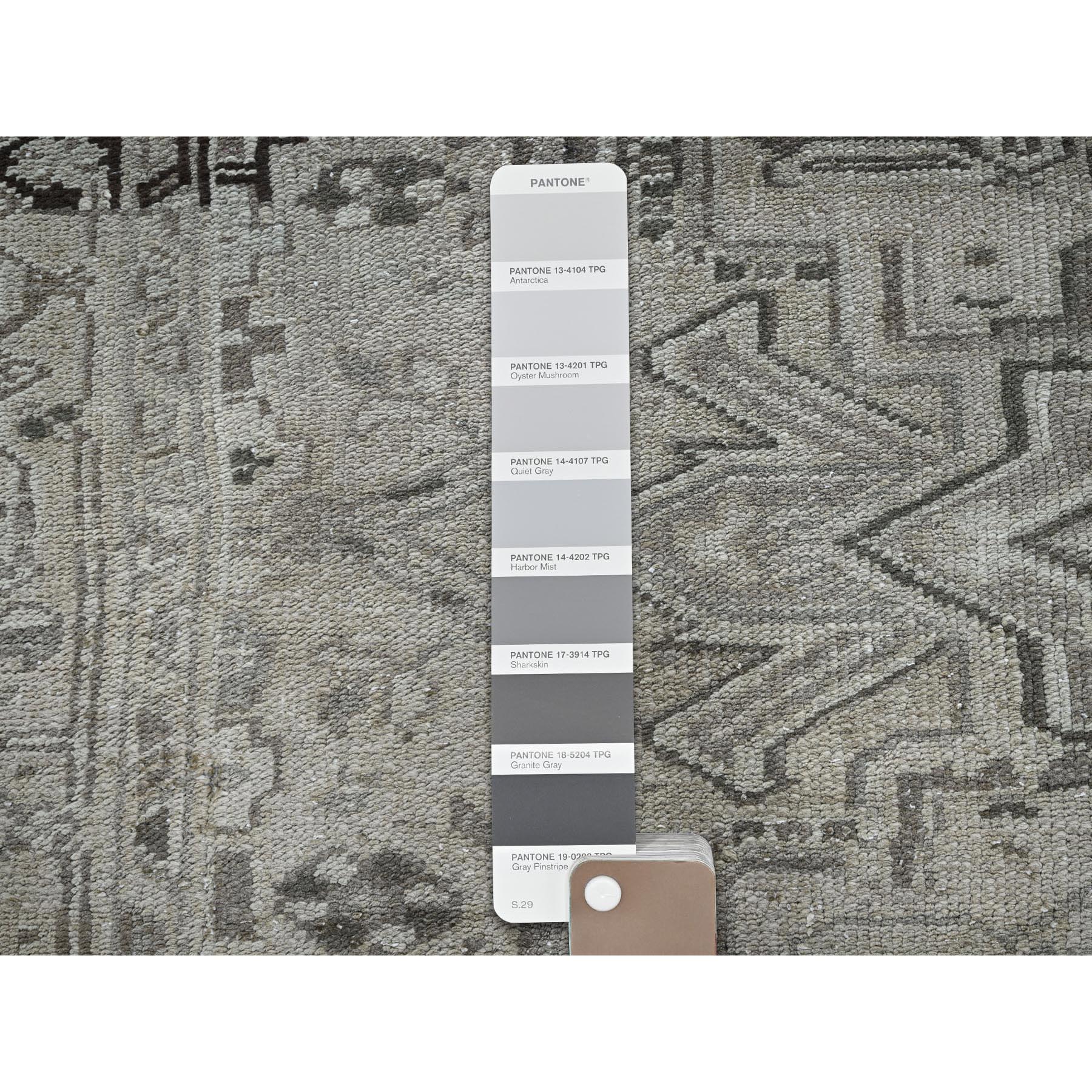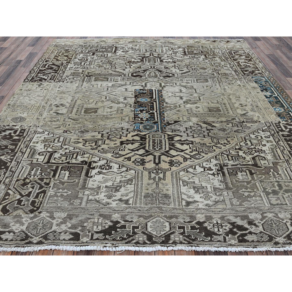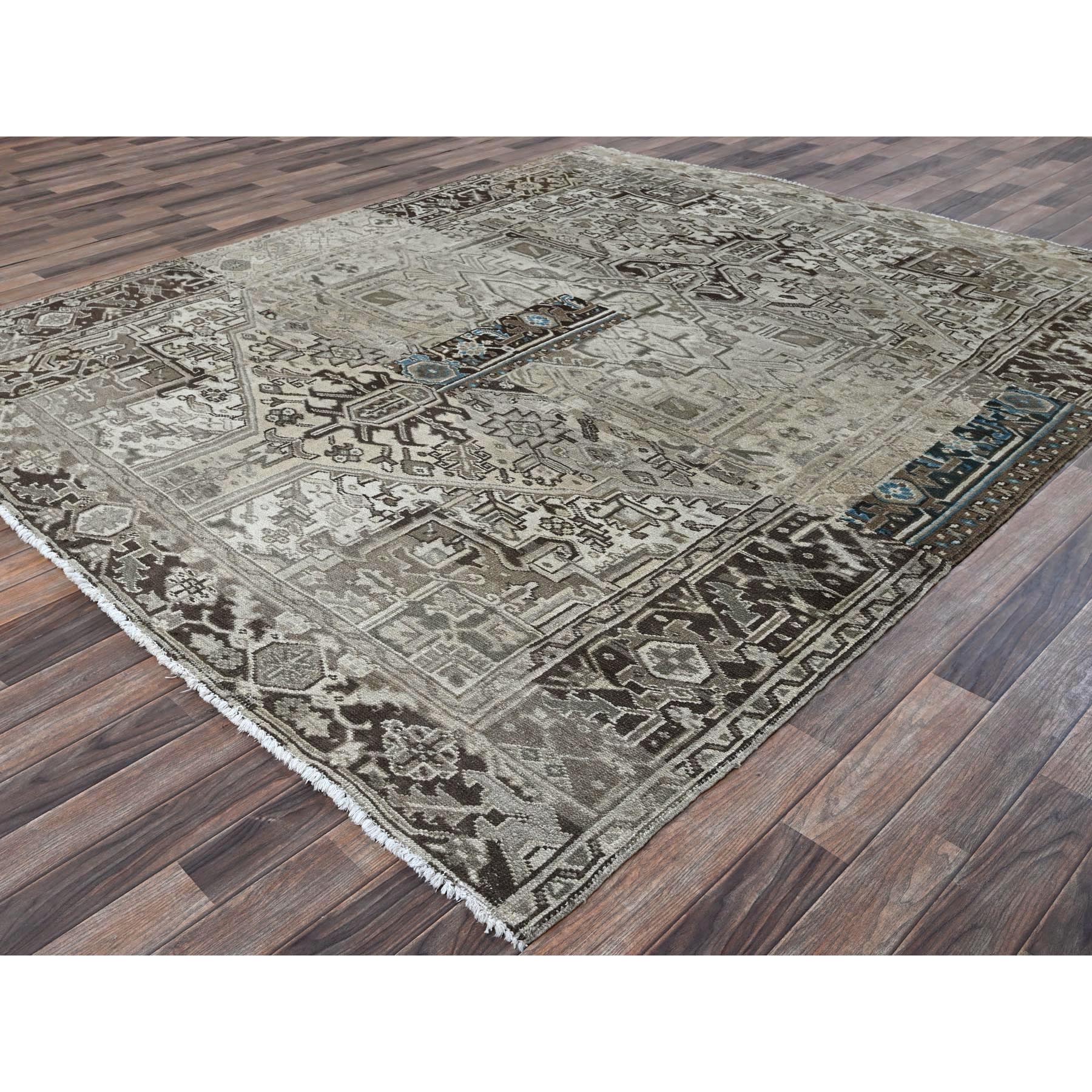 8'x9'4" Pastel Gray, Vintage Persian Heriz With Distinct Abrash, Unique Patches, Stone Washed, Worn And Distressed, Sheared Low, Sides And Ends Professionally Secured, 100% Wool, Hand Knotted, Squarish, Oriental Rug FWR8016