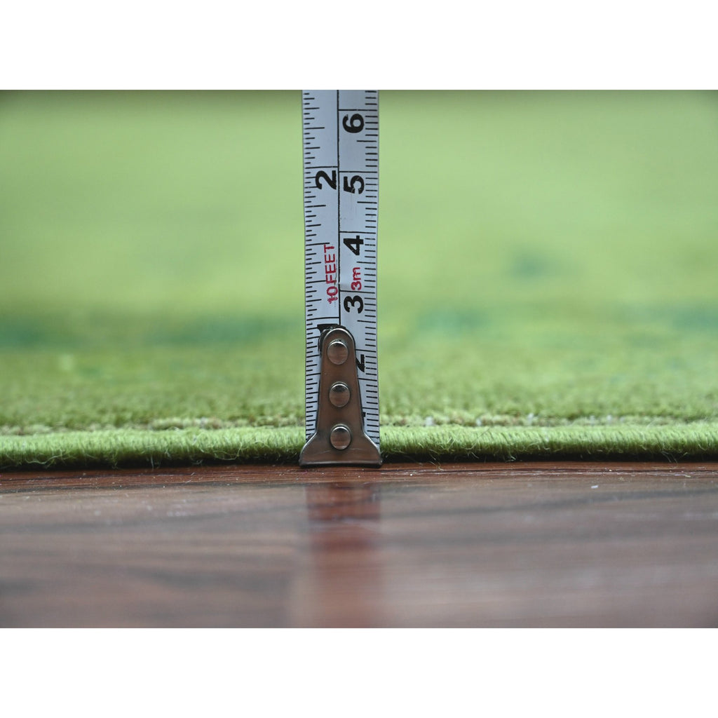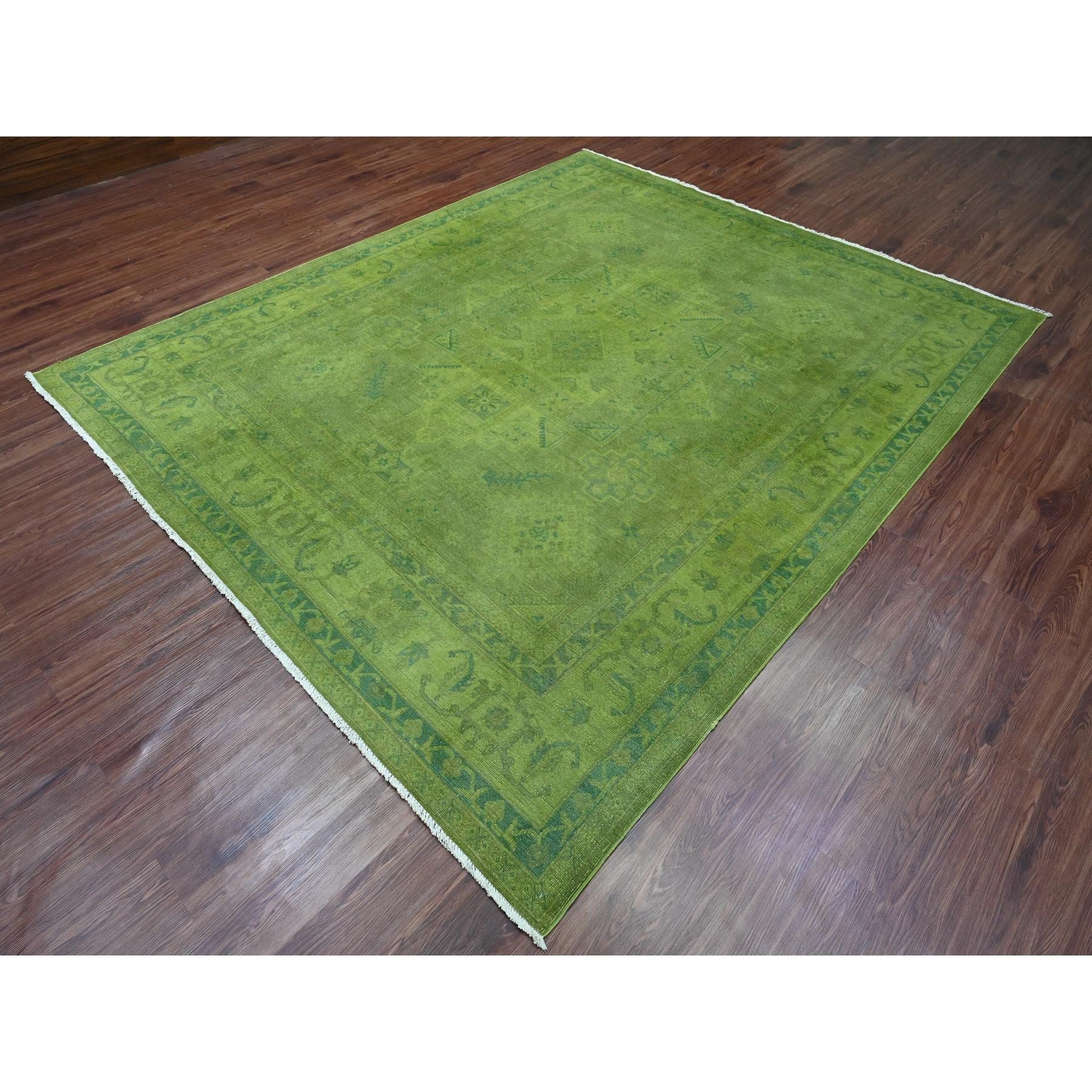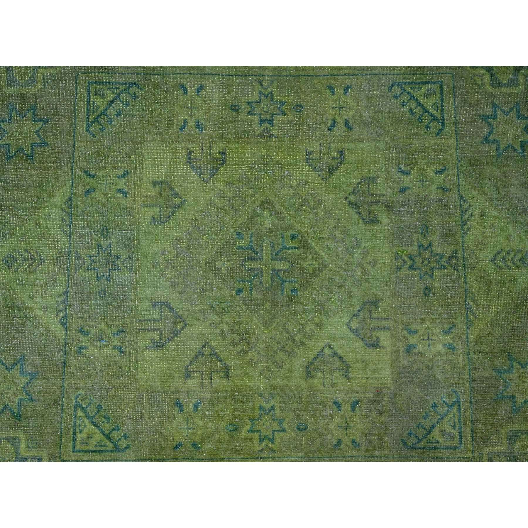 8'x9'6" Pickle Green, Overdyed Kazak With Geometric Pattern, Hand Knotted, Pure Wool, Oriental Rug FWR122418