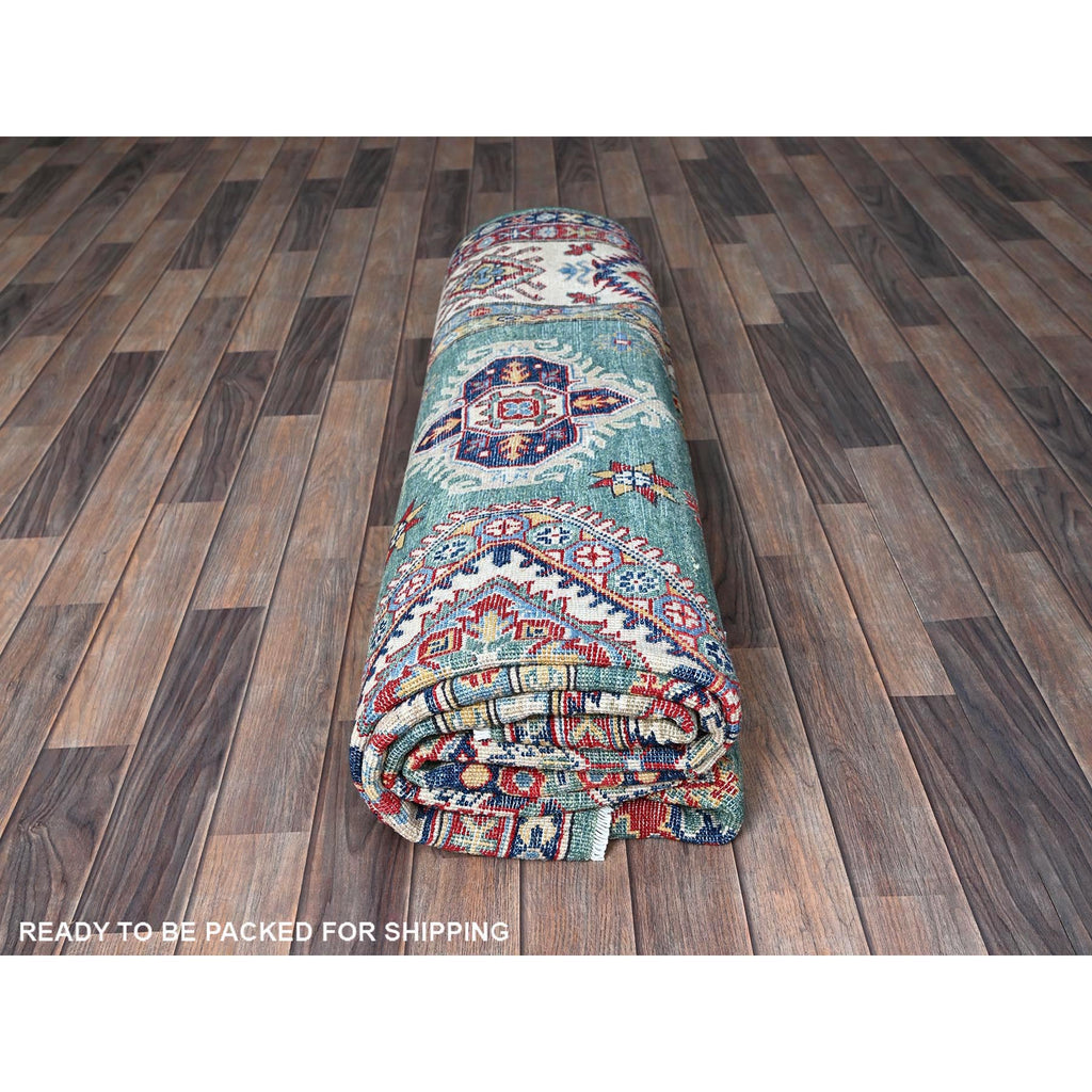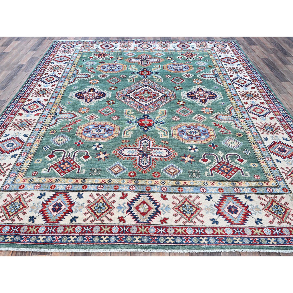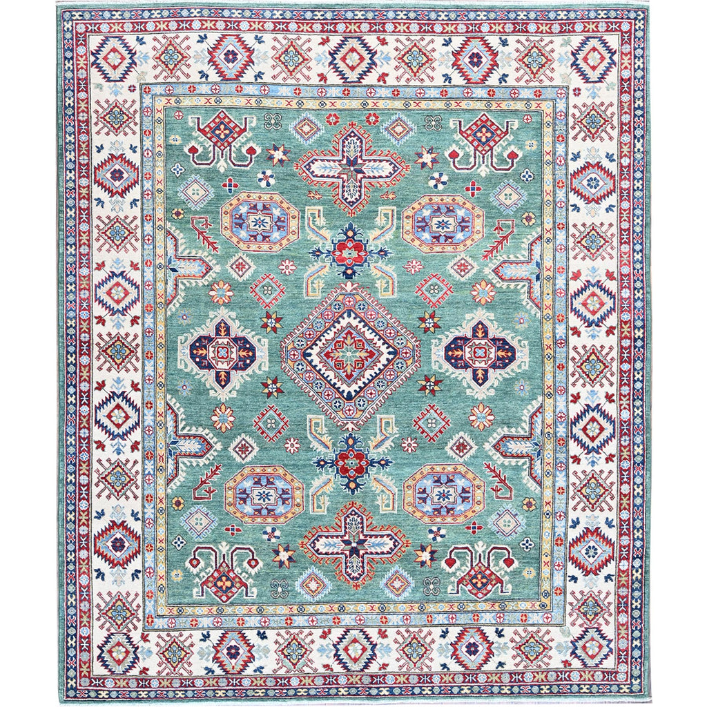 8'x9'7" Mint Green, Kazak With Geometric Pattern, Hand Knotted, Denser Weave, Soft And Velvety Wool, Vegetable Dyes, Oriental Rug FWR3144
