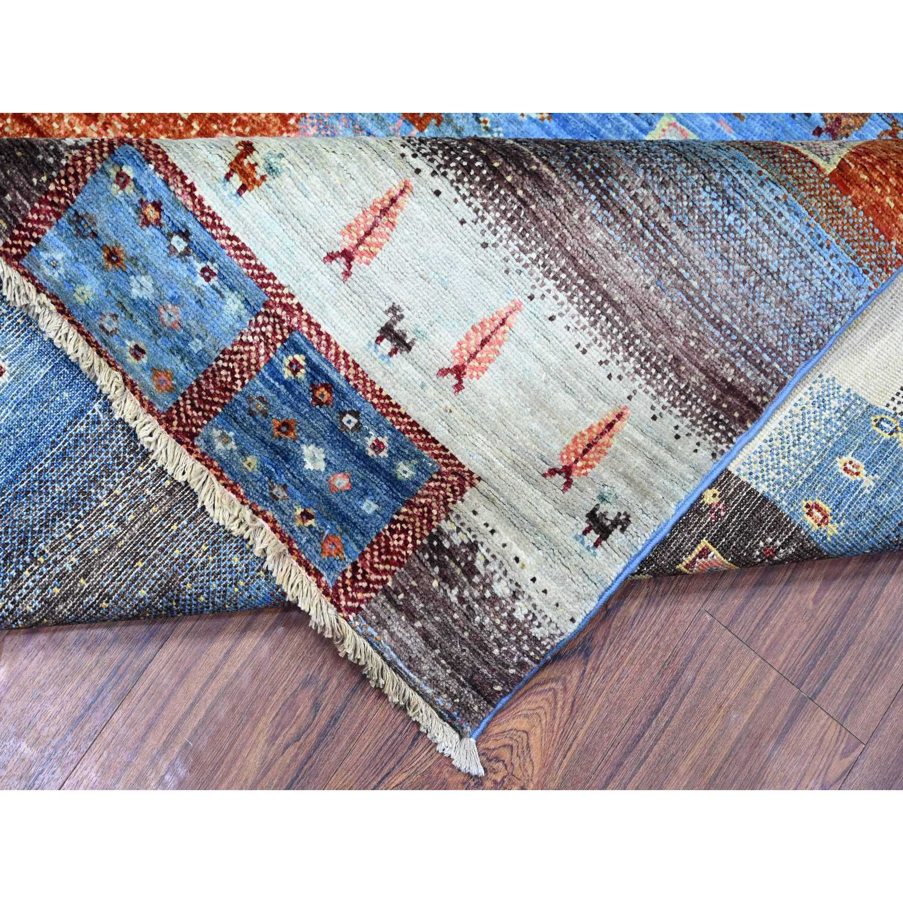 8'x9'7" Mix Of Blue, Black And Brown, Afghan Kashkuli Gabbeh With Trees, Small Animals And Human Figurines, Hand Knotted, 100%, Oriental Rug FWR447414