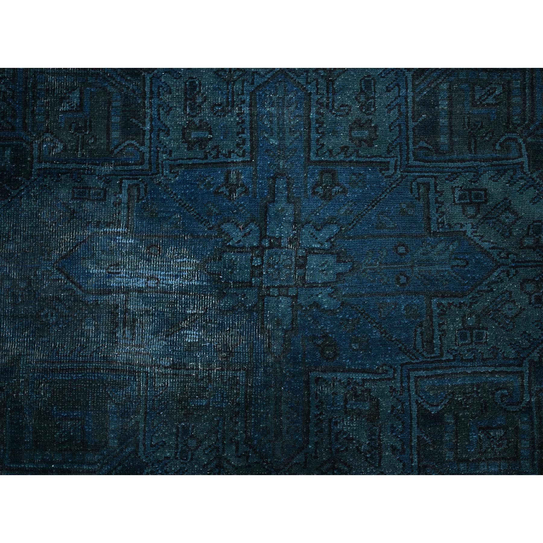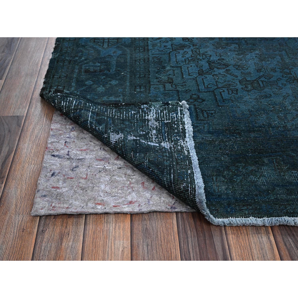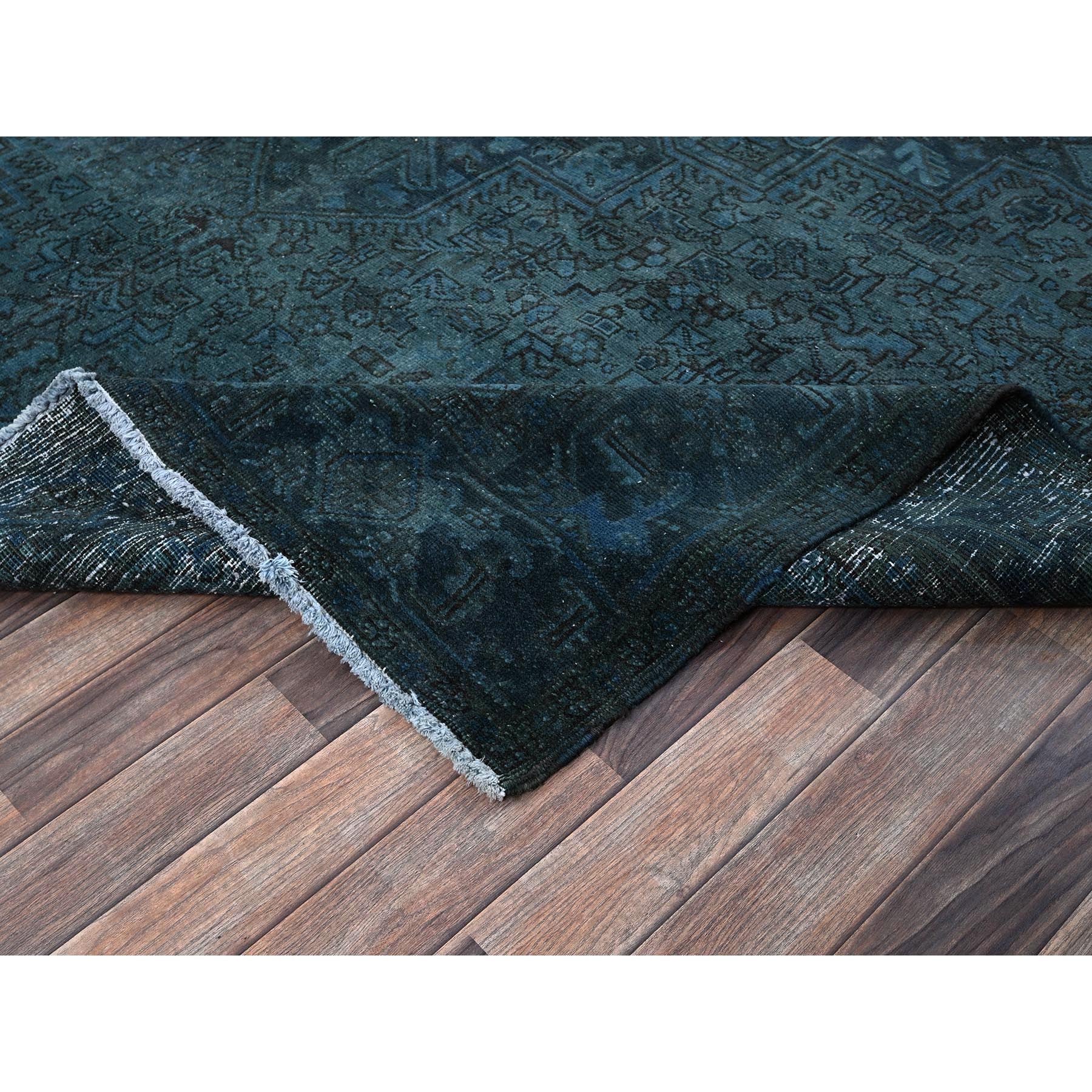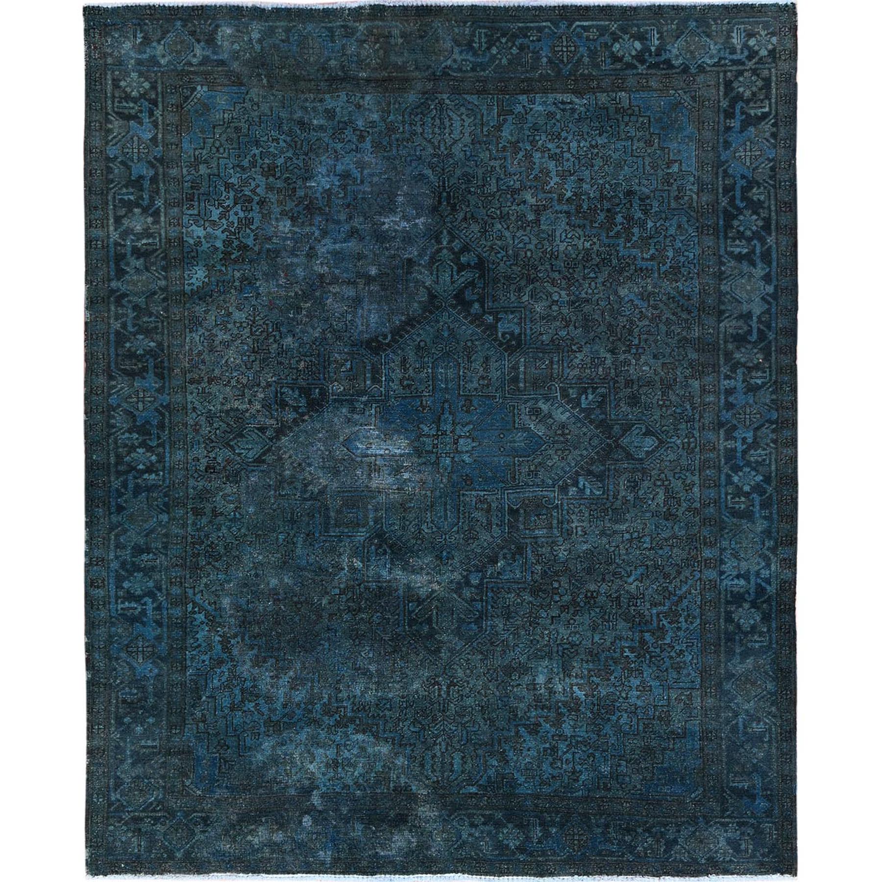 8'x9'8" Aegean Blue, Overdyed Vintage Persian Heriz With Areas Of Wear, Sheared Low, Worn And Distressed, Sides And Ends Professionally Secured, Hand Knotted, 100% Wool, Oriental Rug FWR7692