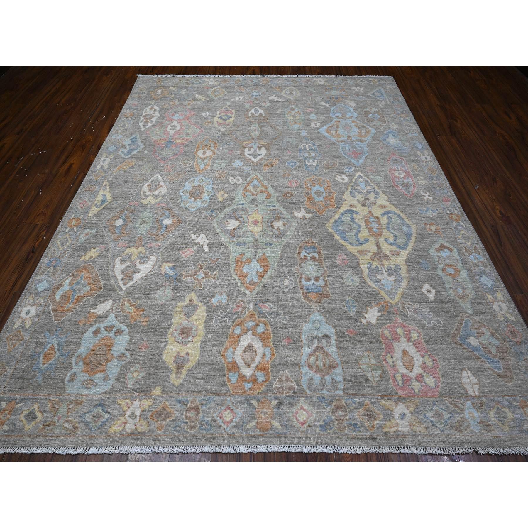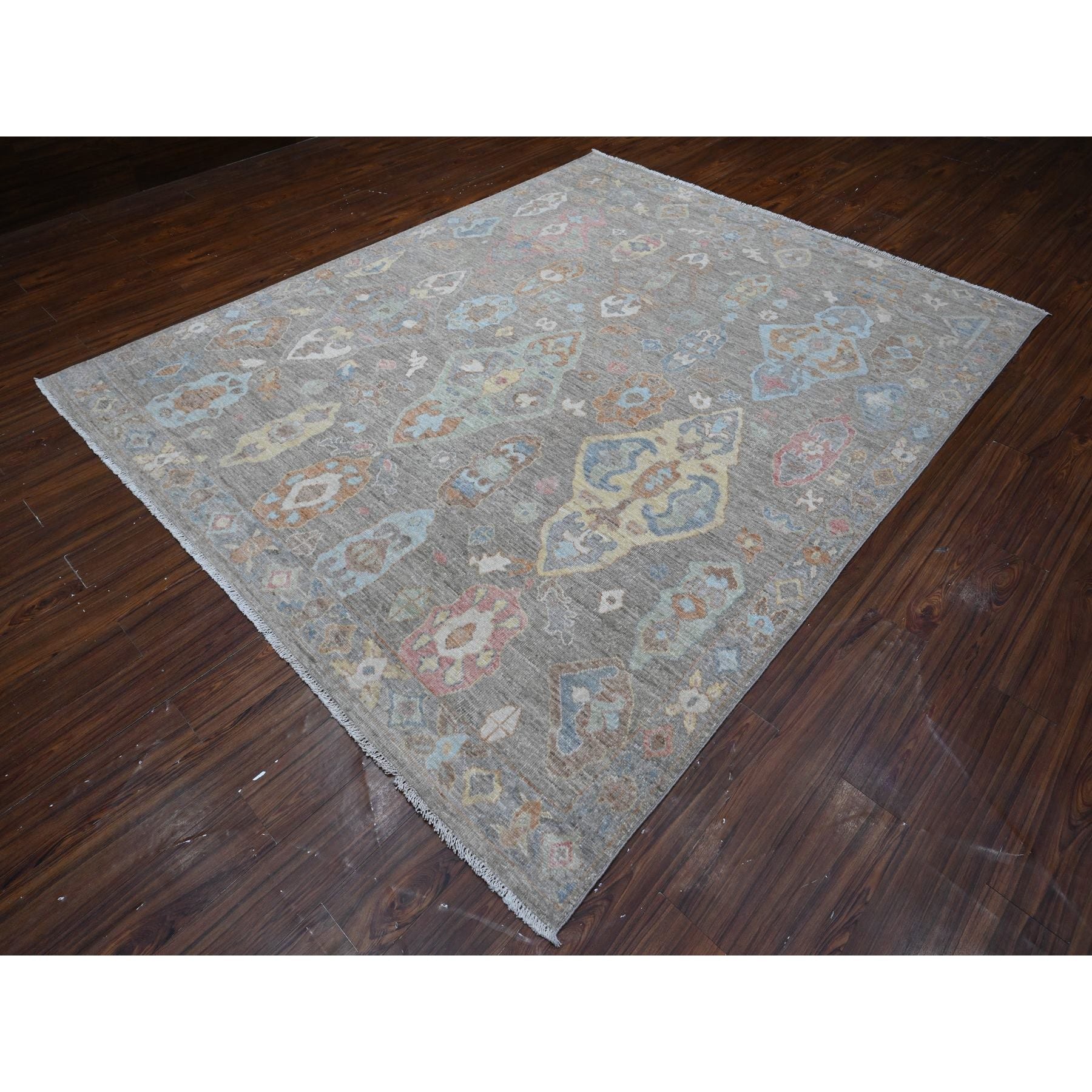8'x9'8" Anvil Gray, Natural Dyes, Hand Knotted, Afghan Angora Oushak, Rural Elements All Over Design, Extra Soft Wool Weft, Oriental Rug FWR535908
