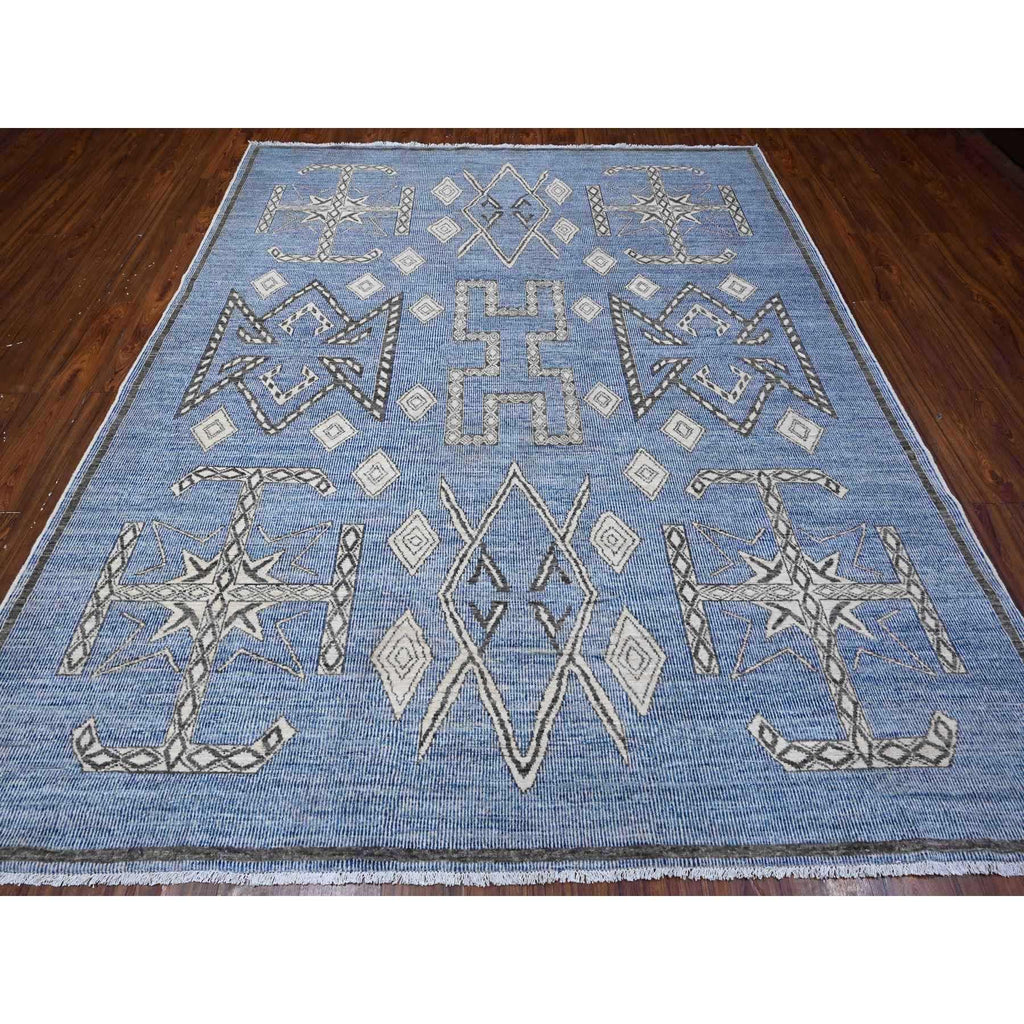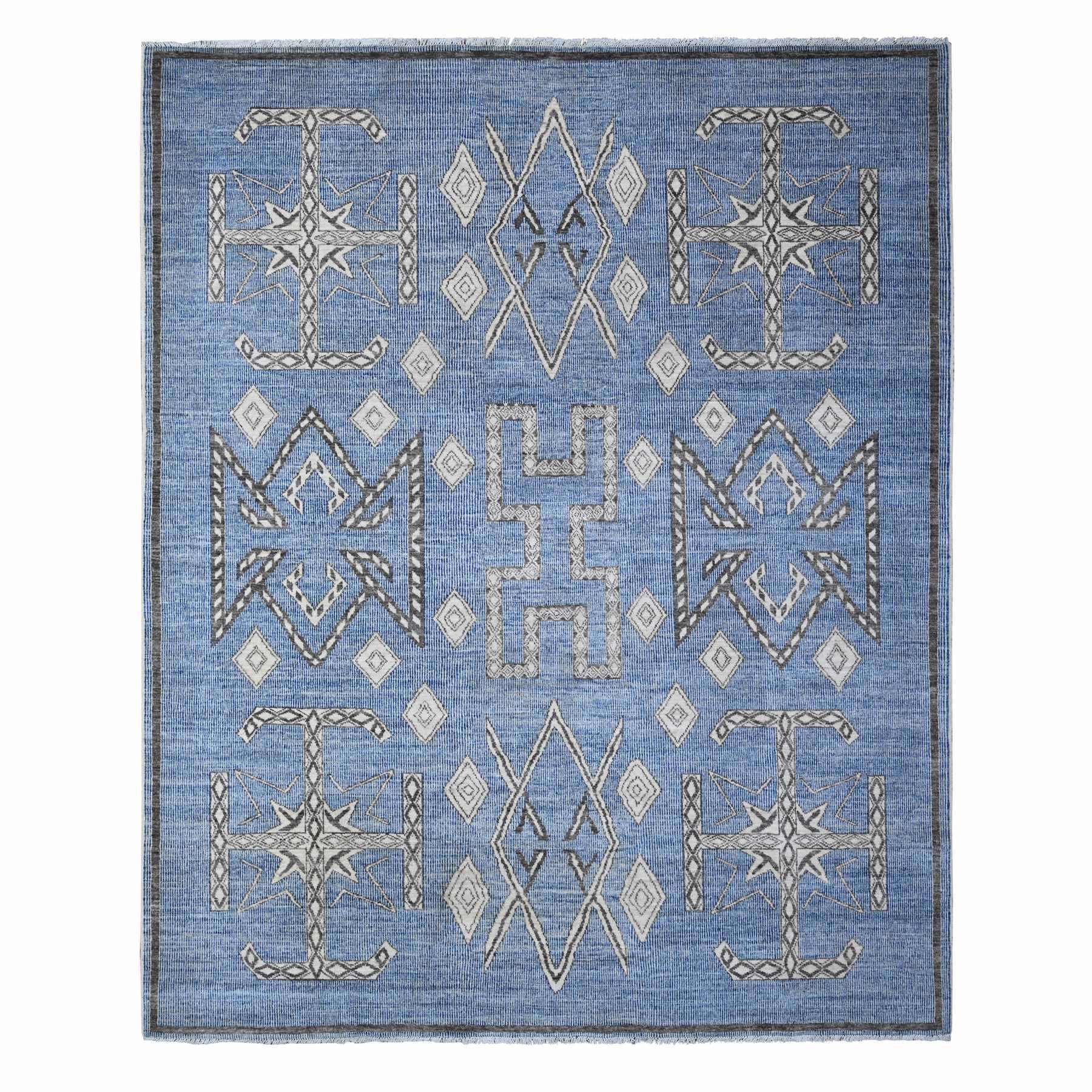 8'x9'8" Bdazzled Blue, Densely Woven, Natural Dyes With Snowflake Geometric Design, Hand Knotted, Berber Influence, Peshawar, Oriental Rug FWR533226