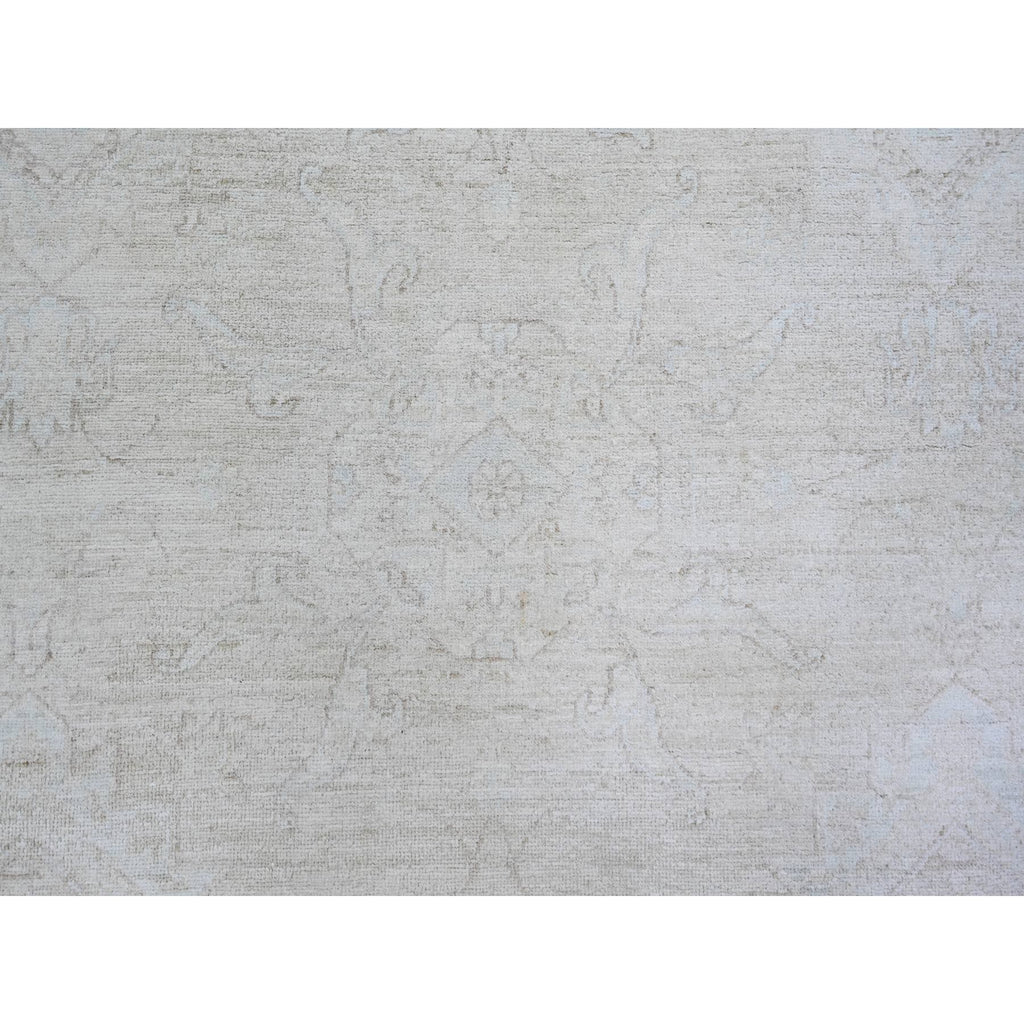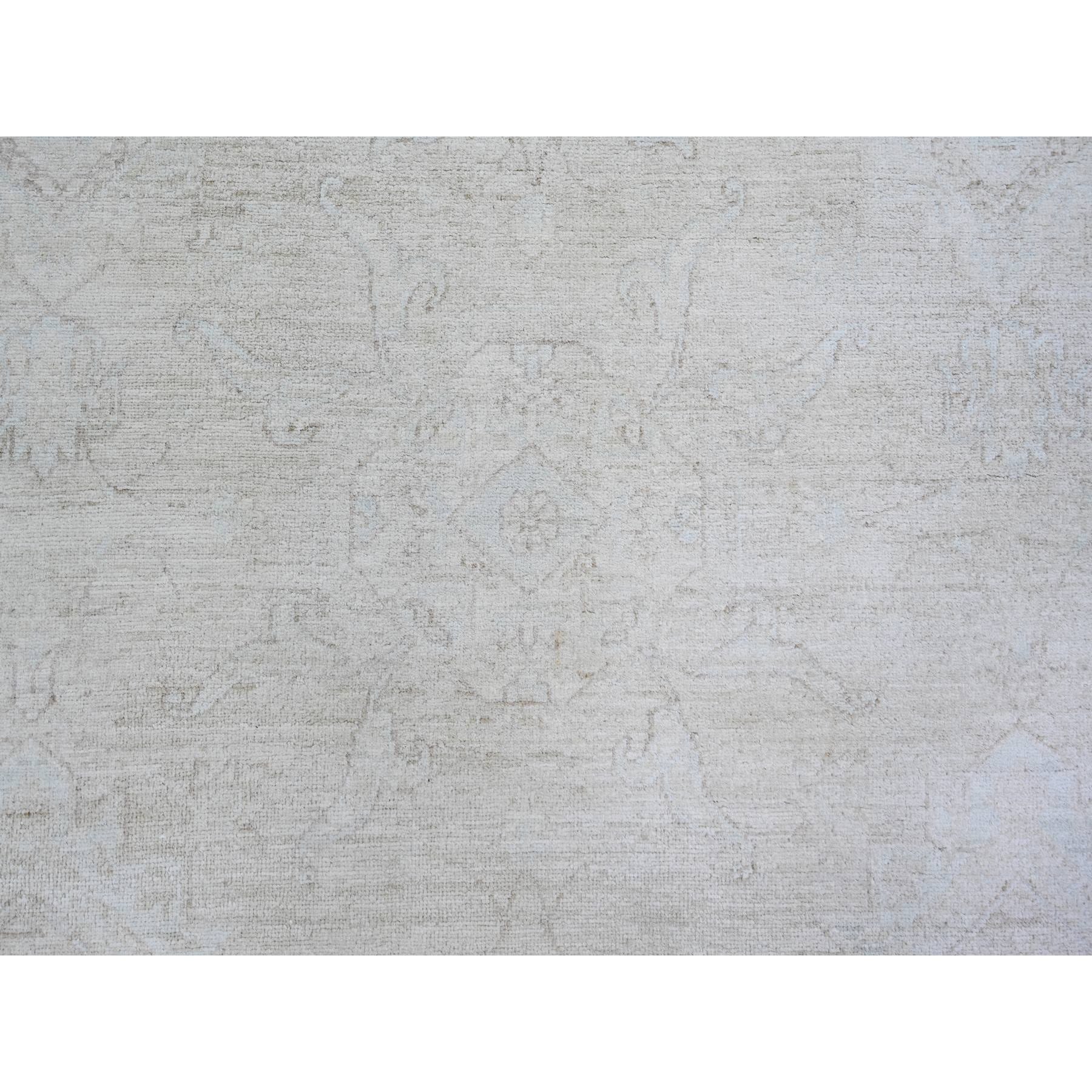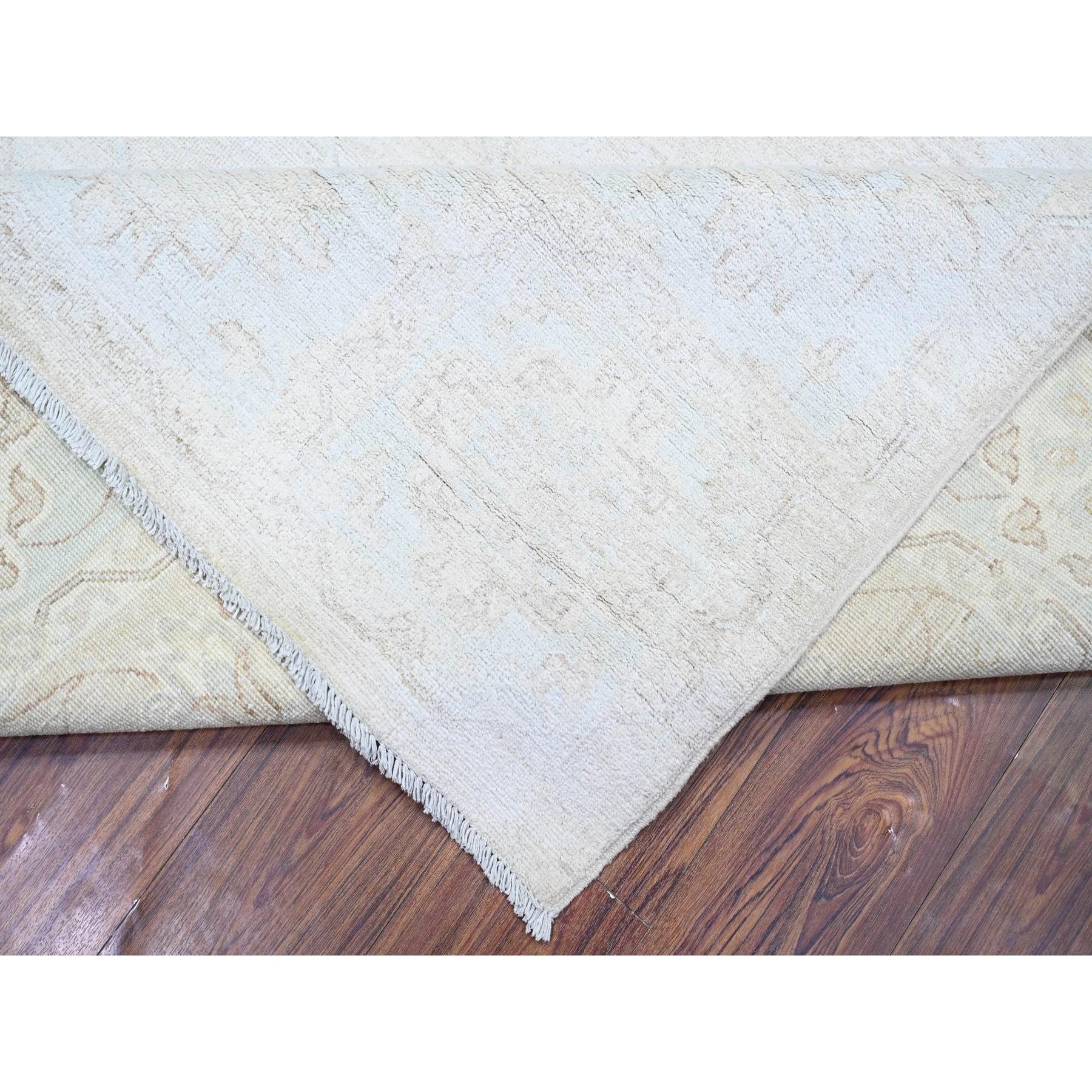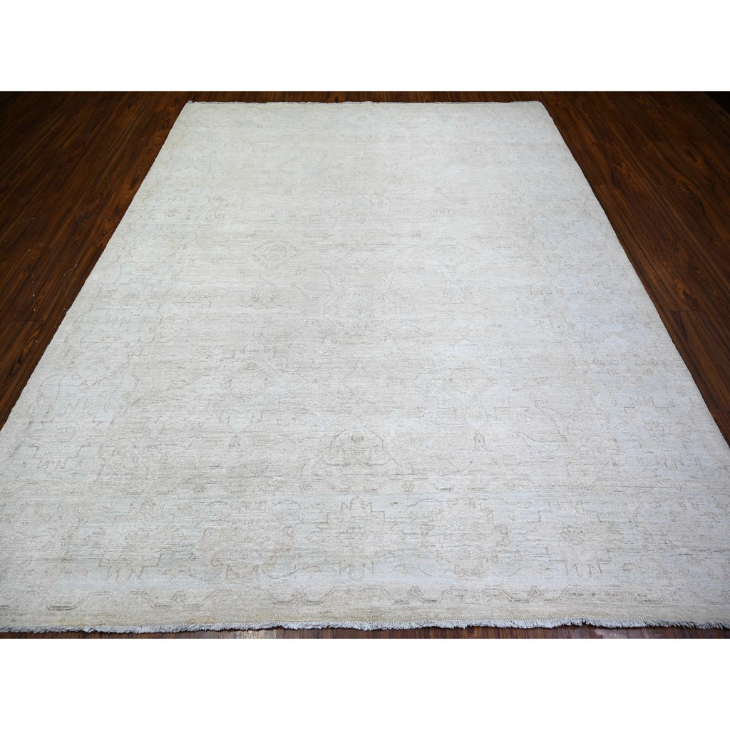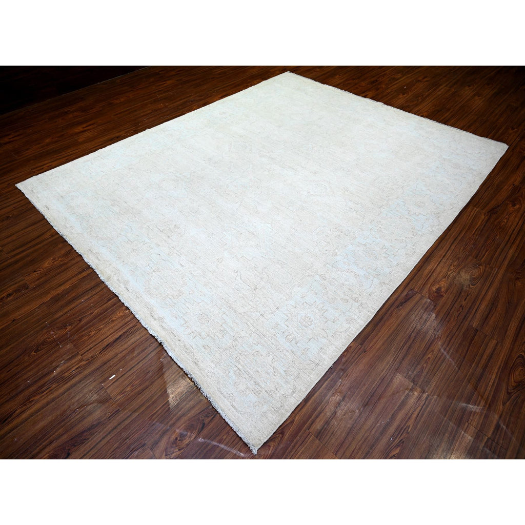 8'x9'8" Cream, Hand Knotted White Wash Peshawar, Heavily Washed Extra Soft Wool, Oriental Rug FWR439668