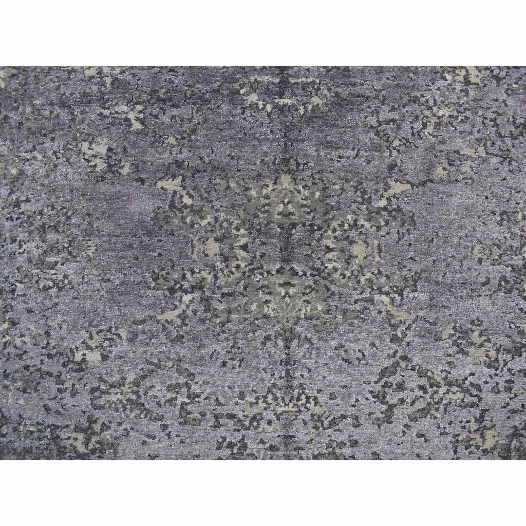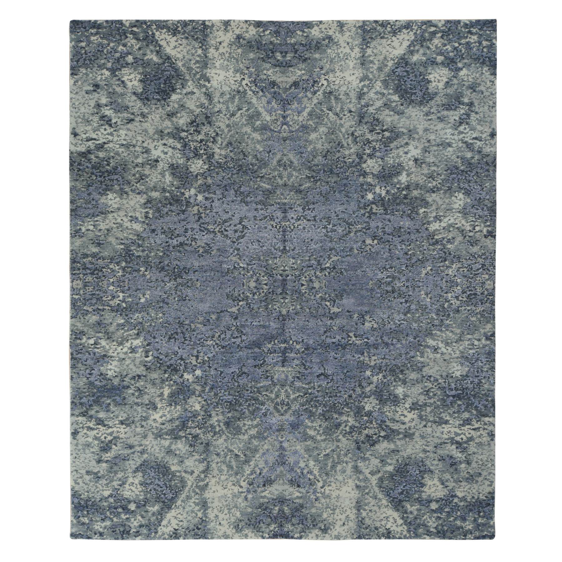 8'x9'8" Lavender Purple Mixed With Grey, Abstract Tone On Tone, Wool And Silk, Hand Knotted, Oriental Rug FWR468900