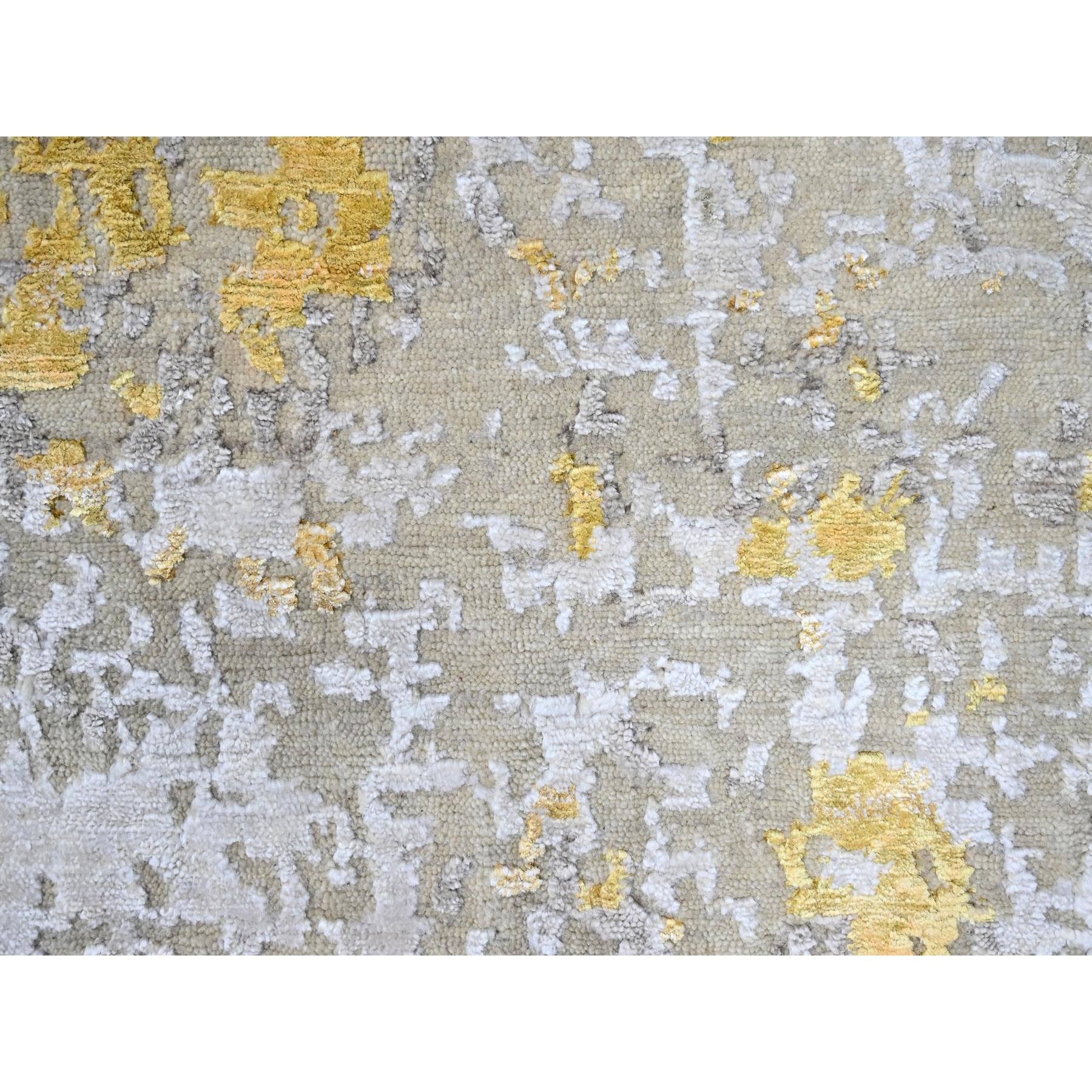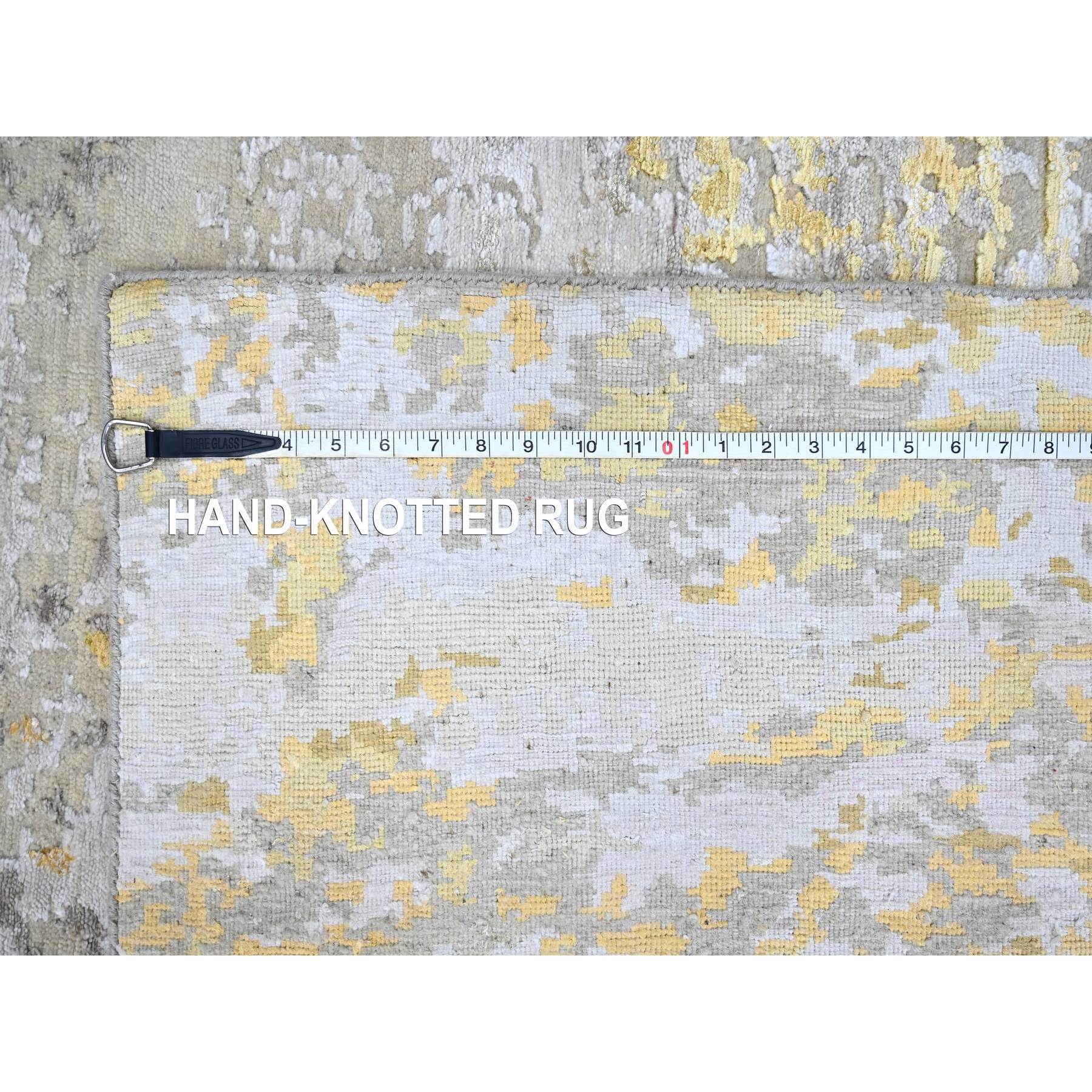 8'x9'9" Beige With Gold, Wool And Silk, Abstract Design, Denser Weave, Hi-low Pile, Hand Knotted, Oriental Rug FWR61194