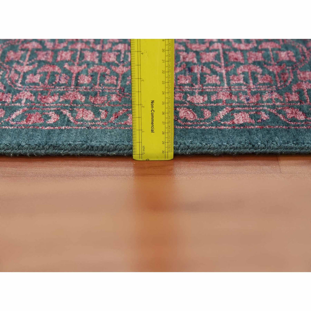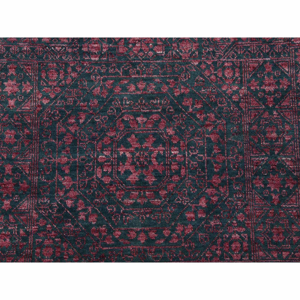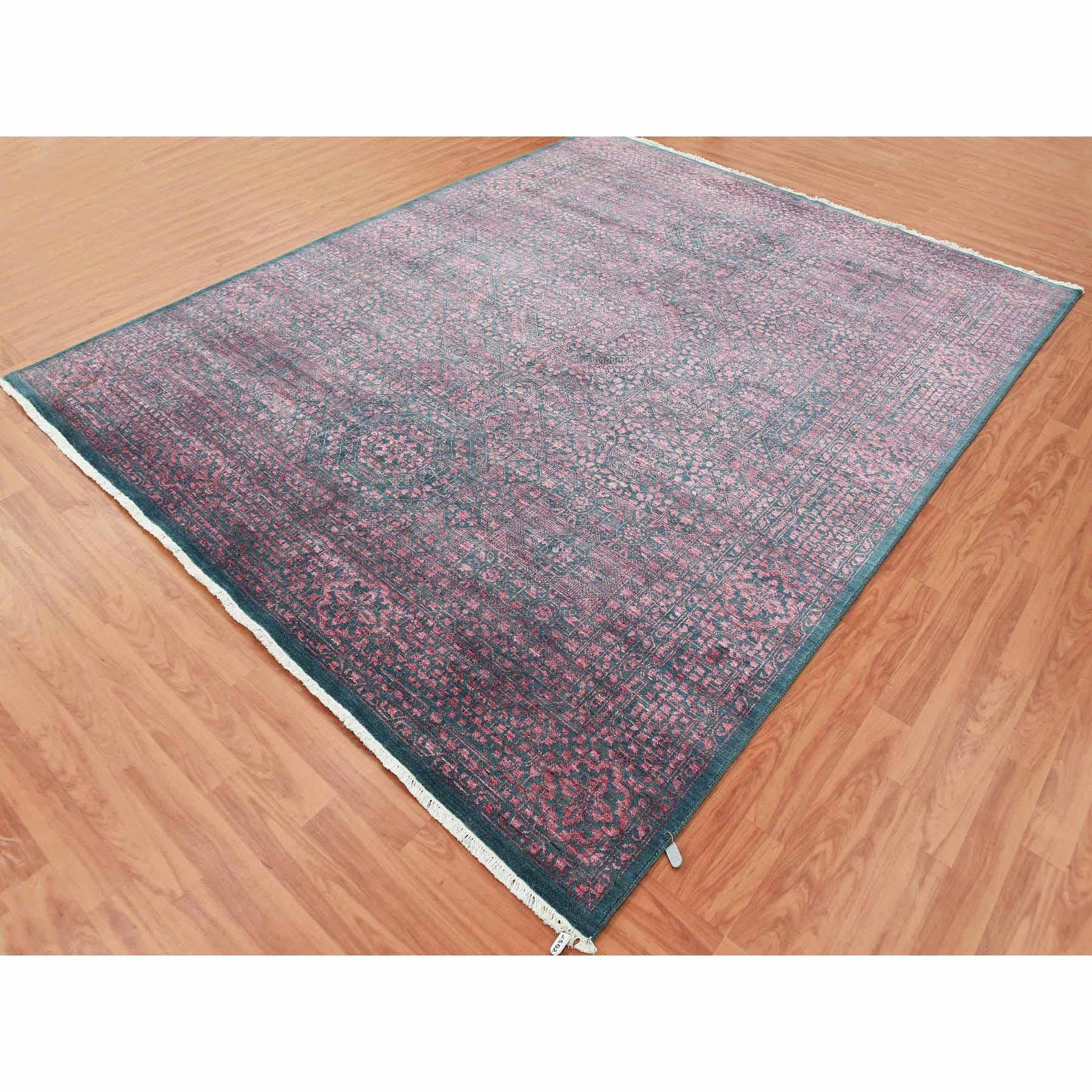 8'x9'9" Dark Green With Pop Of Red, Obscured, Tone On Tone Mamluk Design, Wool And Silk Hand Knotted, Oriental Rug FWR475638