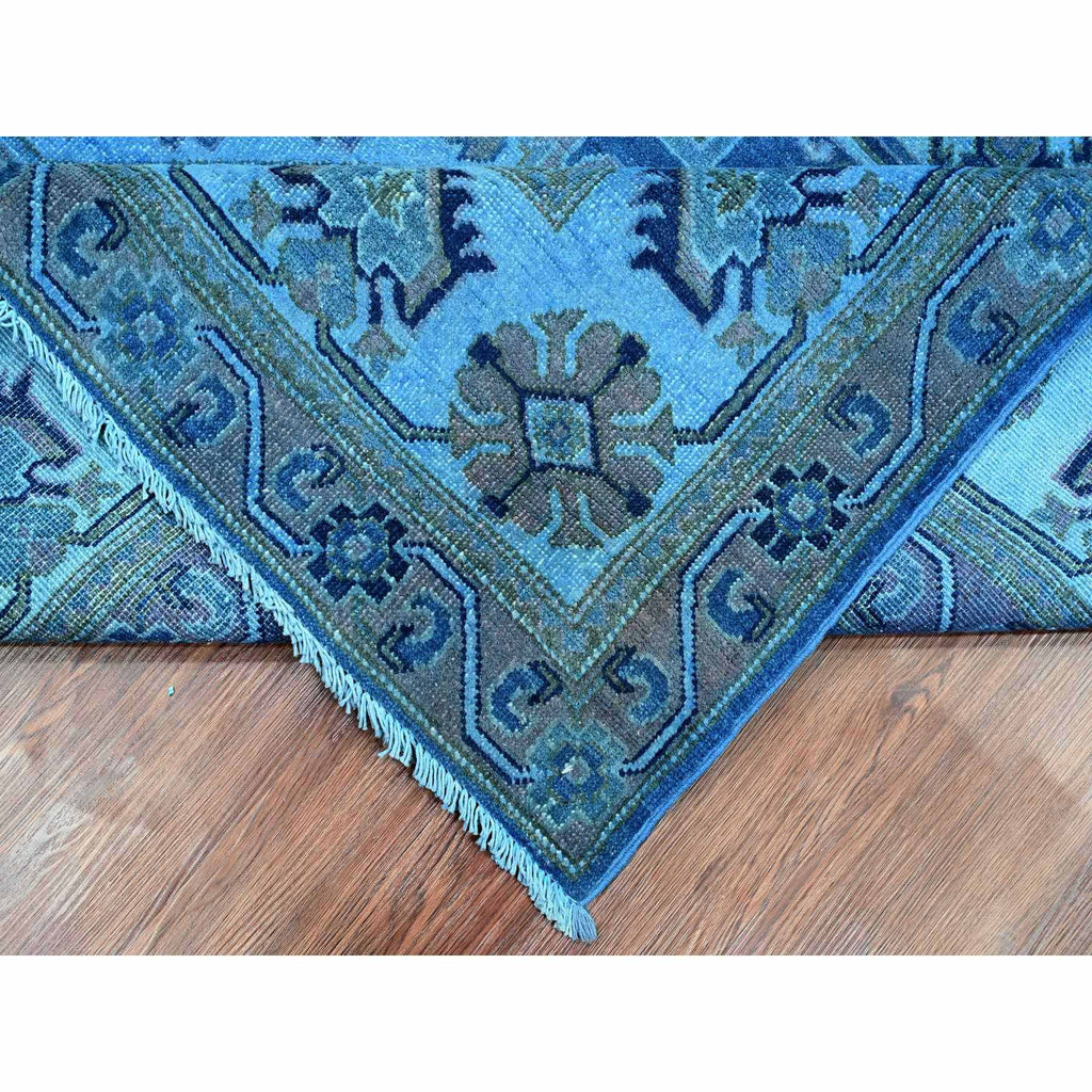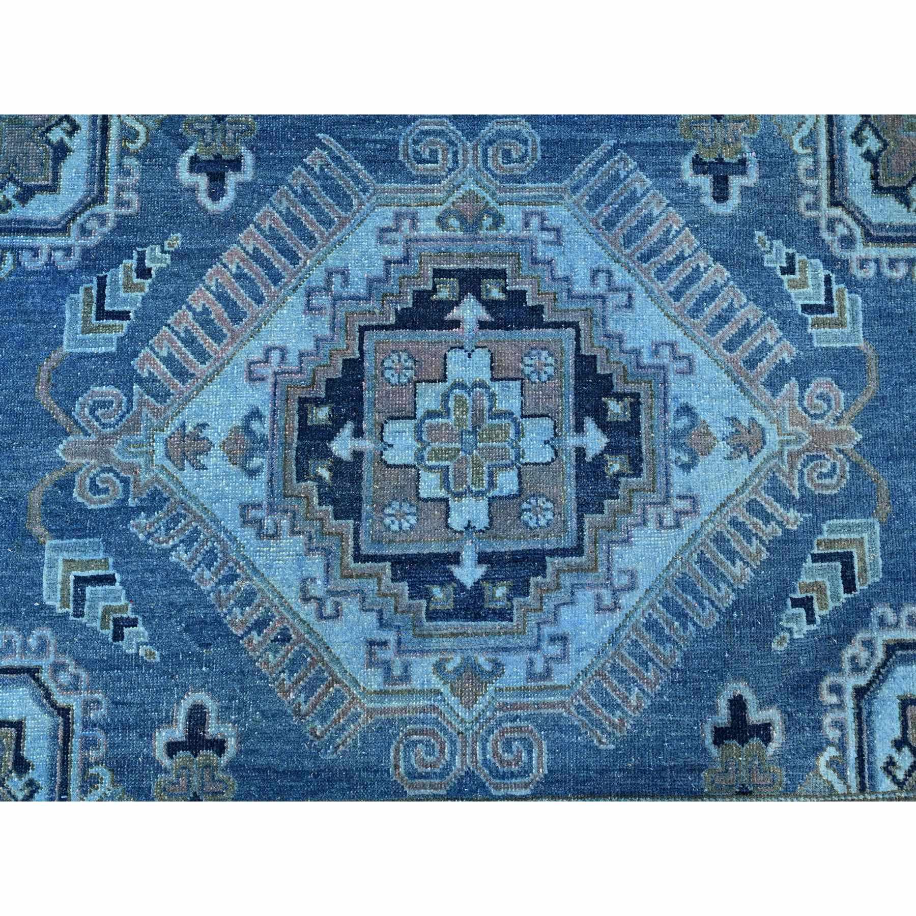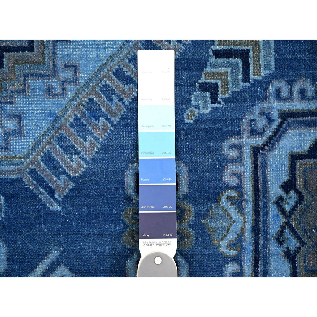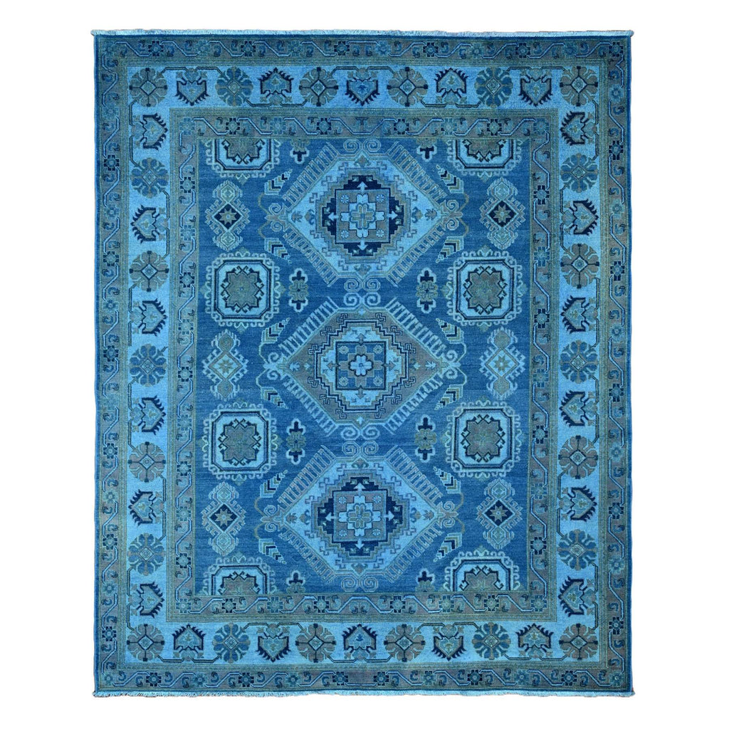 8'x9'9" Imperial Blue, 100% Wool, Overdyed Kazak With Geometric Medallions Design, Hand Knotted, Oriental Rug FWR120078
