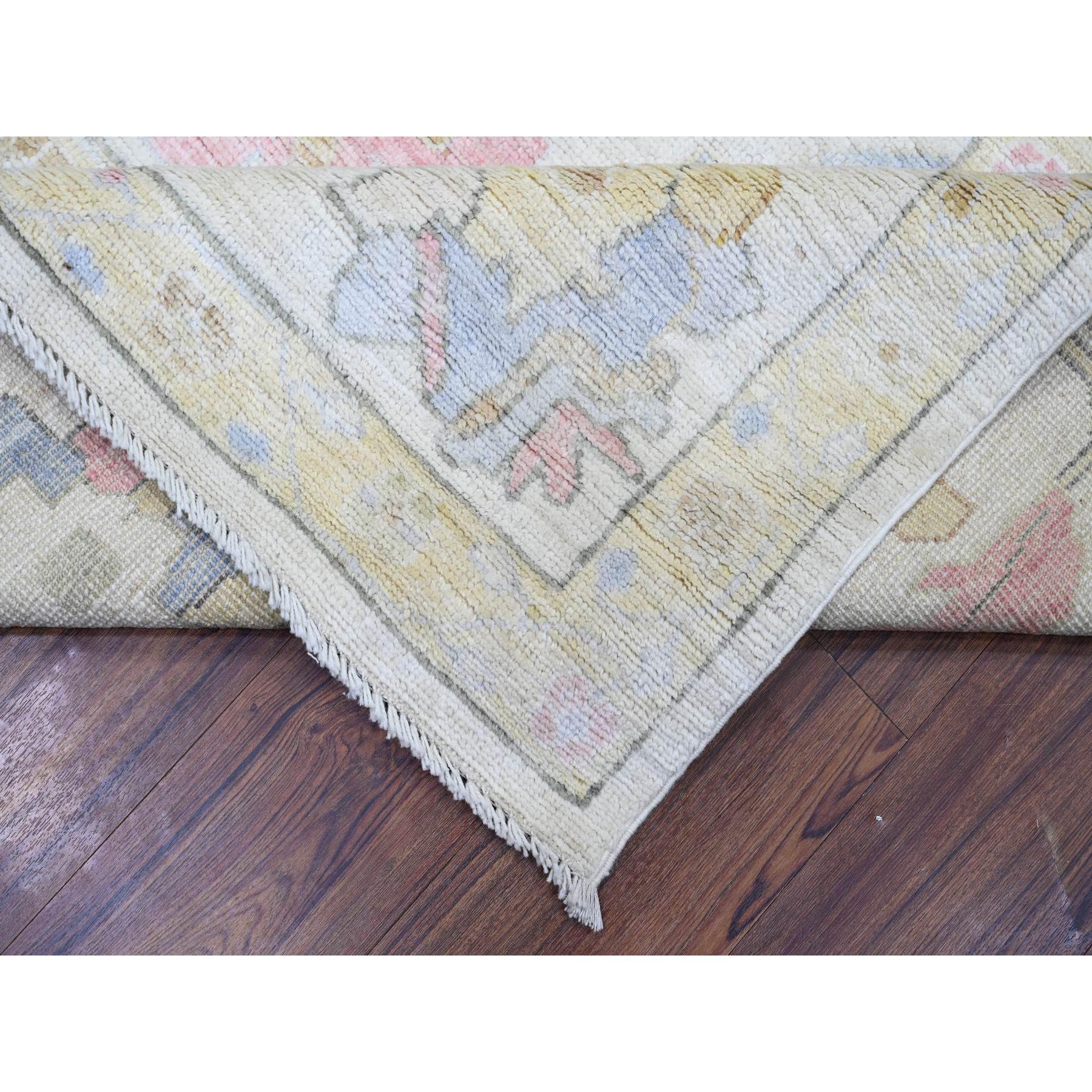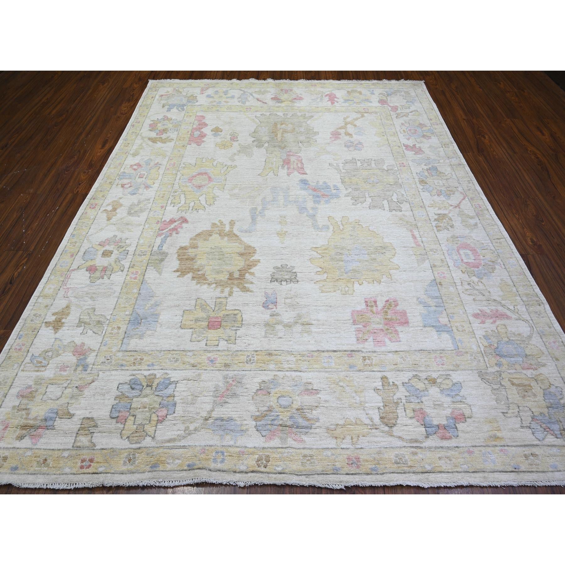 8'x9'9" Ivory, Afghan Angora Oushak With Colorful Motifs Natural Dyes, 100% Wool Hand Knotted, Oriental Rug FWR442584