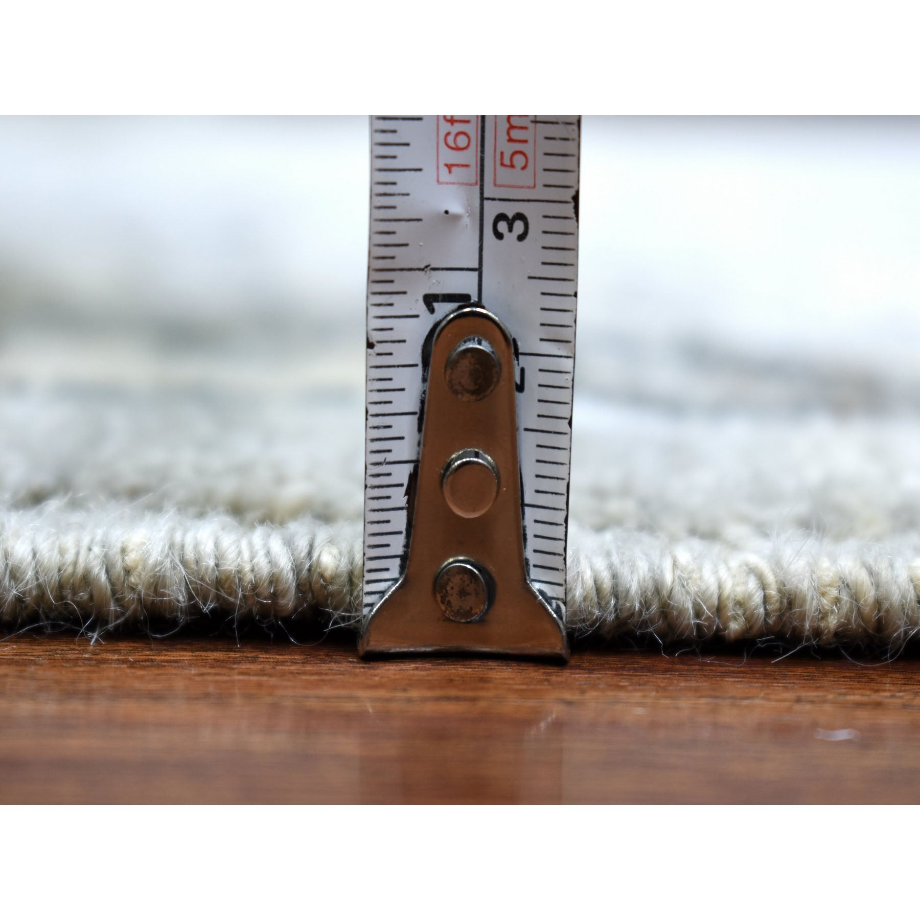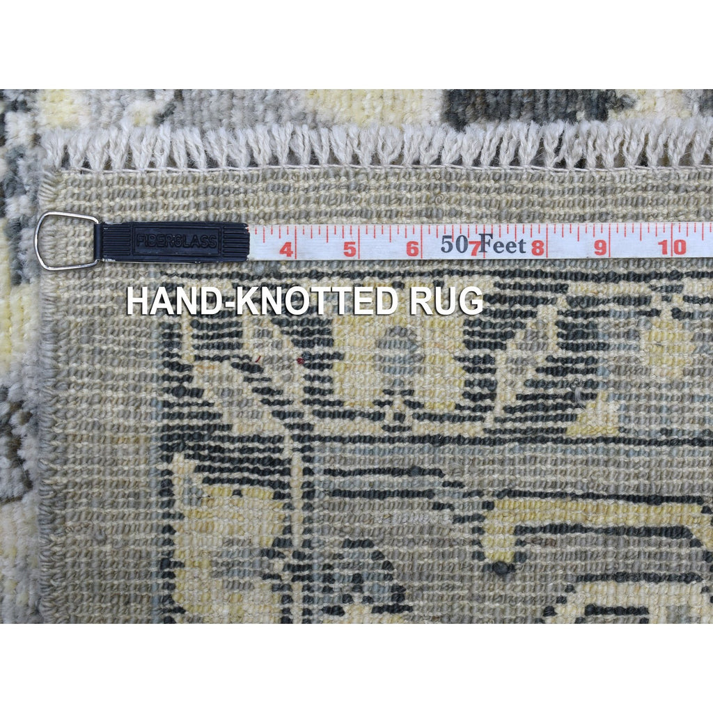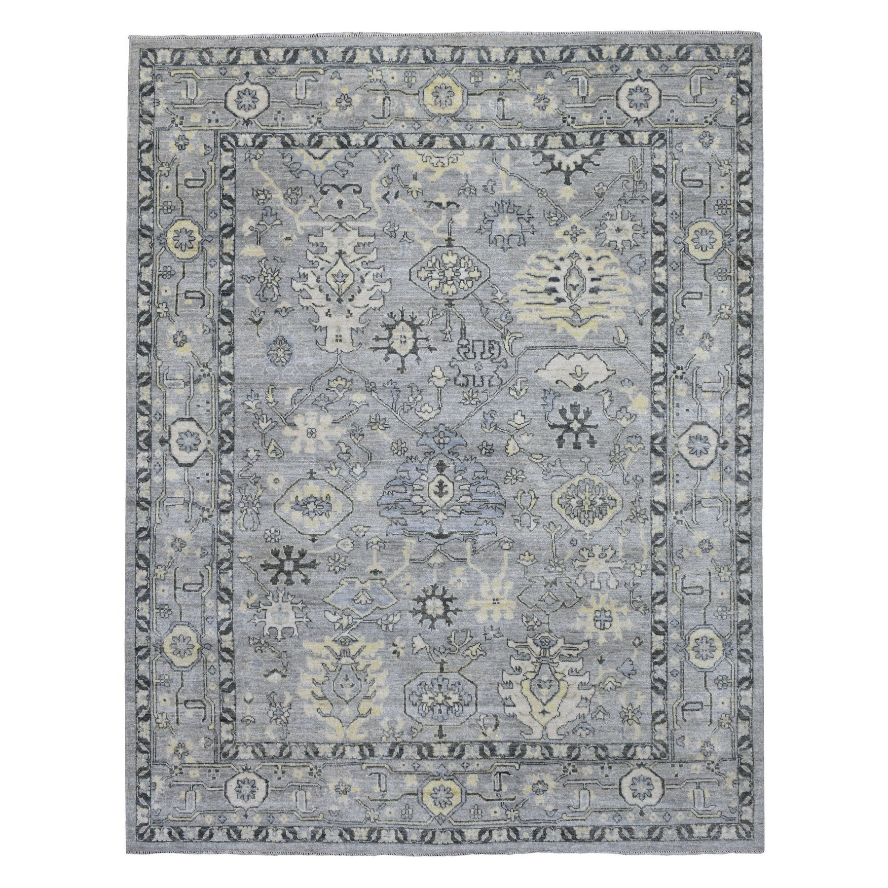 8'x9'9" Light Gray Angora Oushak With Tribal Design Extra Soft Wool Hand Knotted Oriental Rug FWR410850