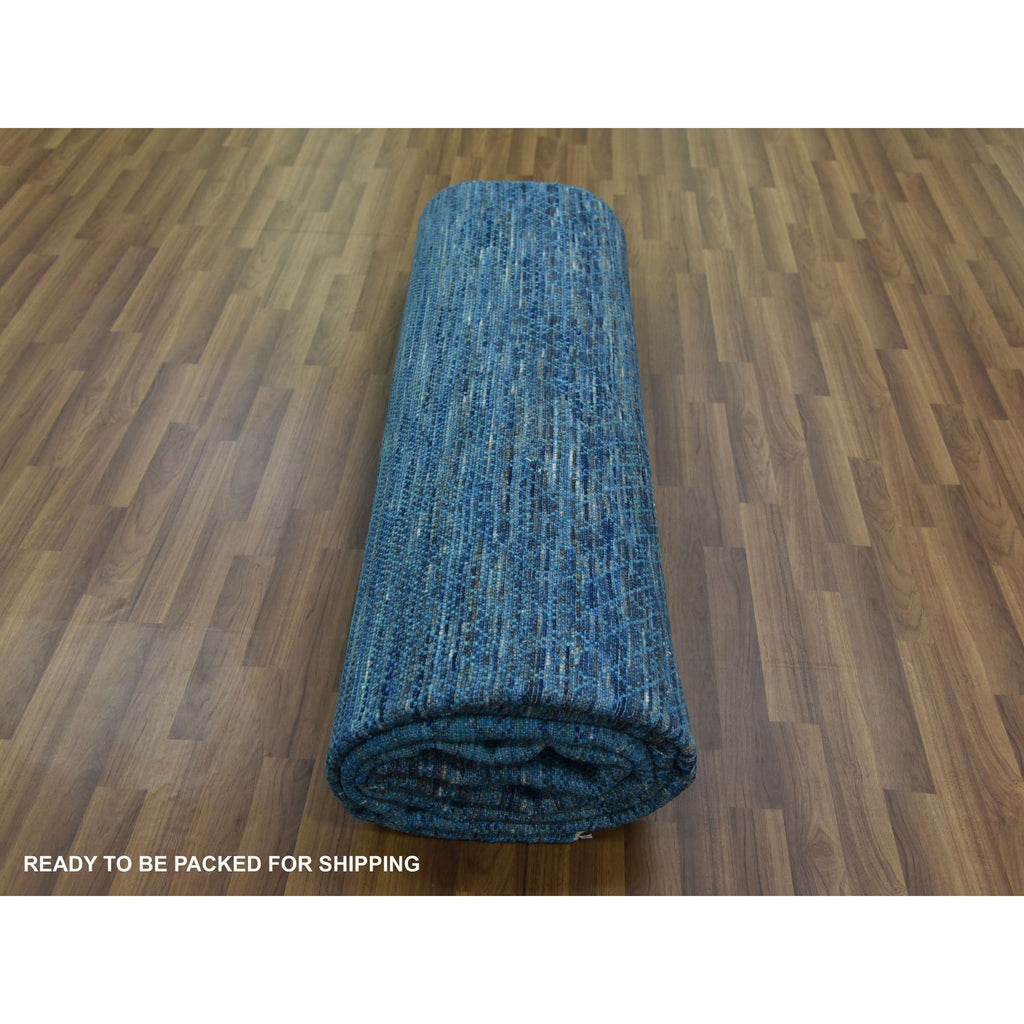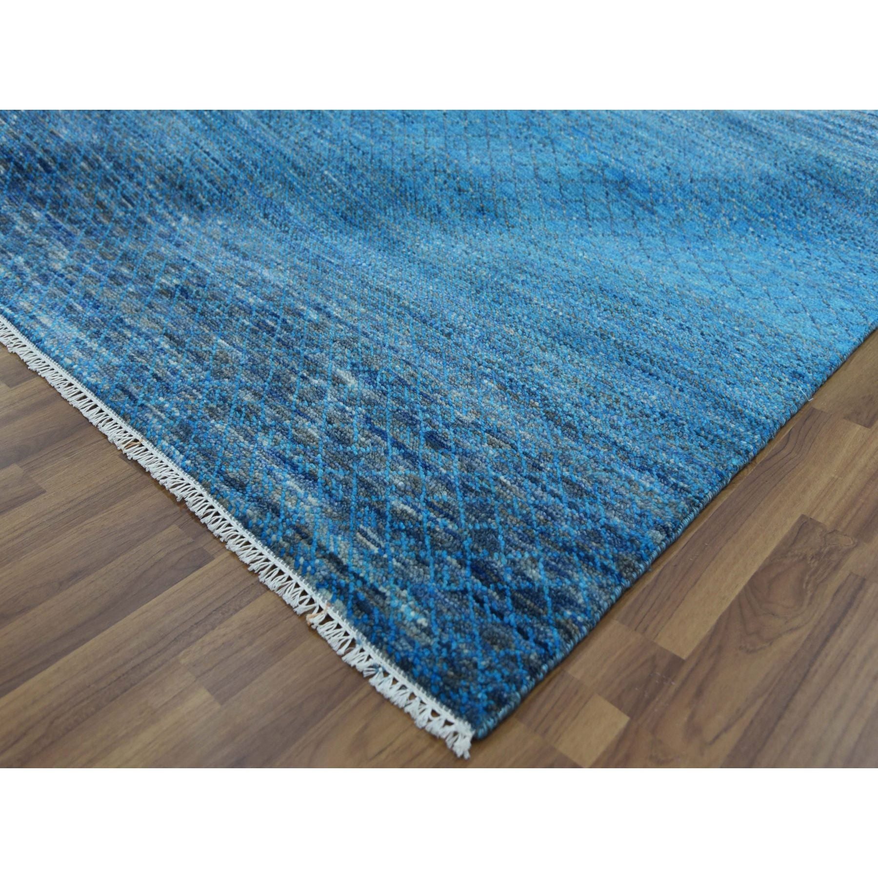 9'1"x11'10" Blue, Thick And Plush Pure Wool Hand Knotted, Modern Chiaroscuro Collection, Oriental Rug FWR475326