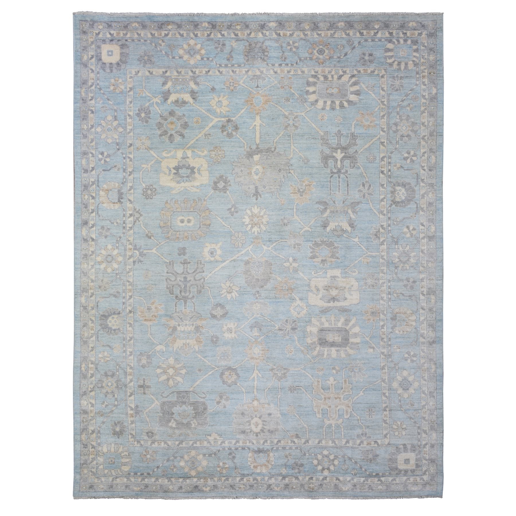 9'1"x11'10" Light Blue Extra Soft Wool Hand Knotted, Afghan Angora Oushak With All Over Design Natural Dyes, Oriental Rug FWR436872