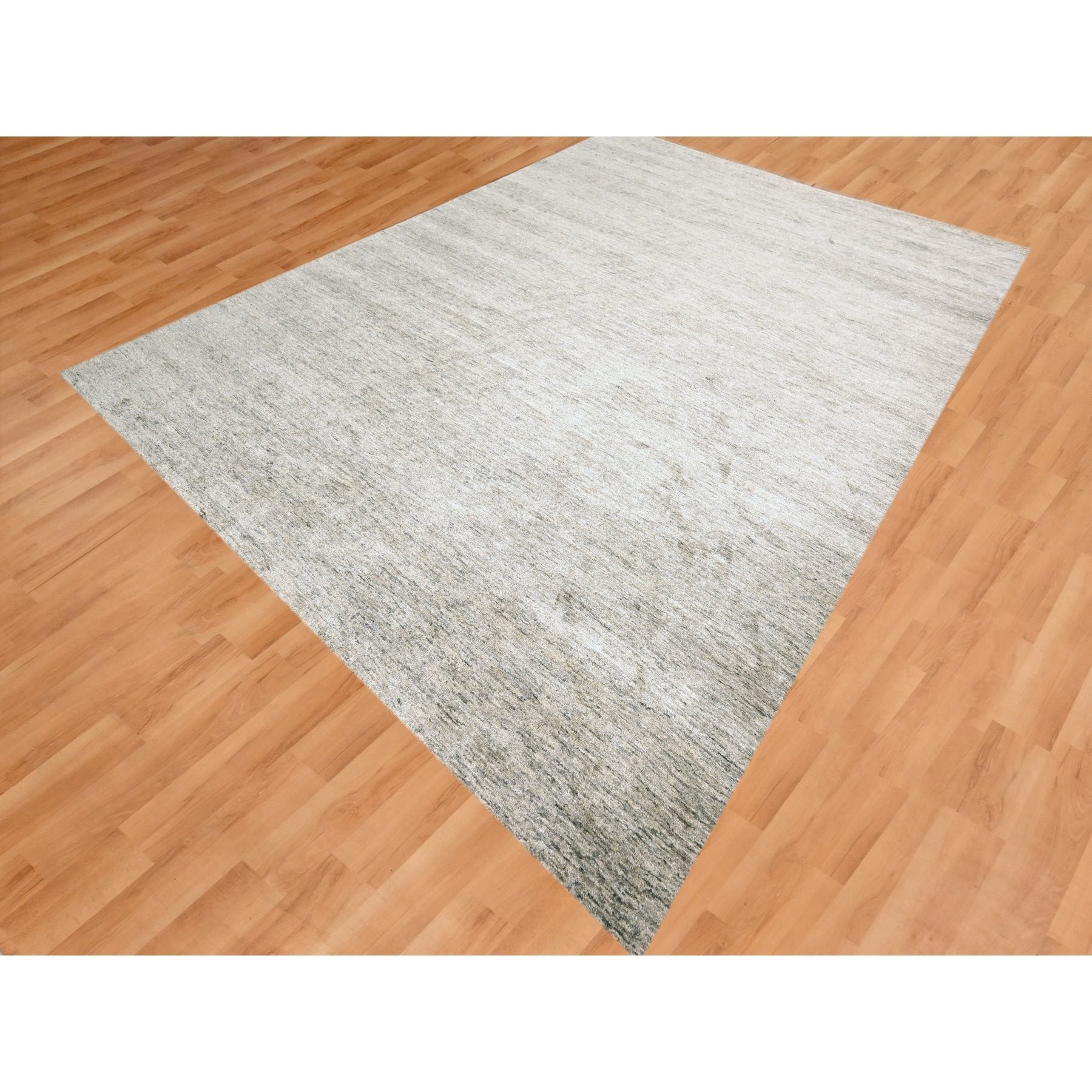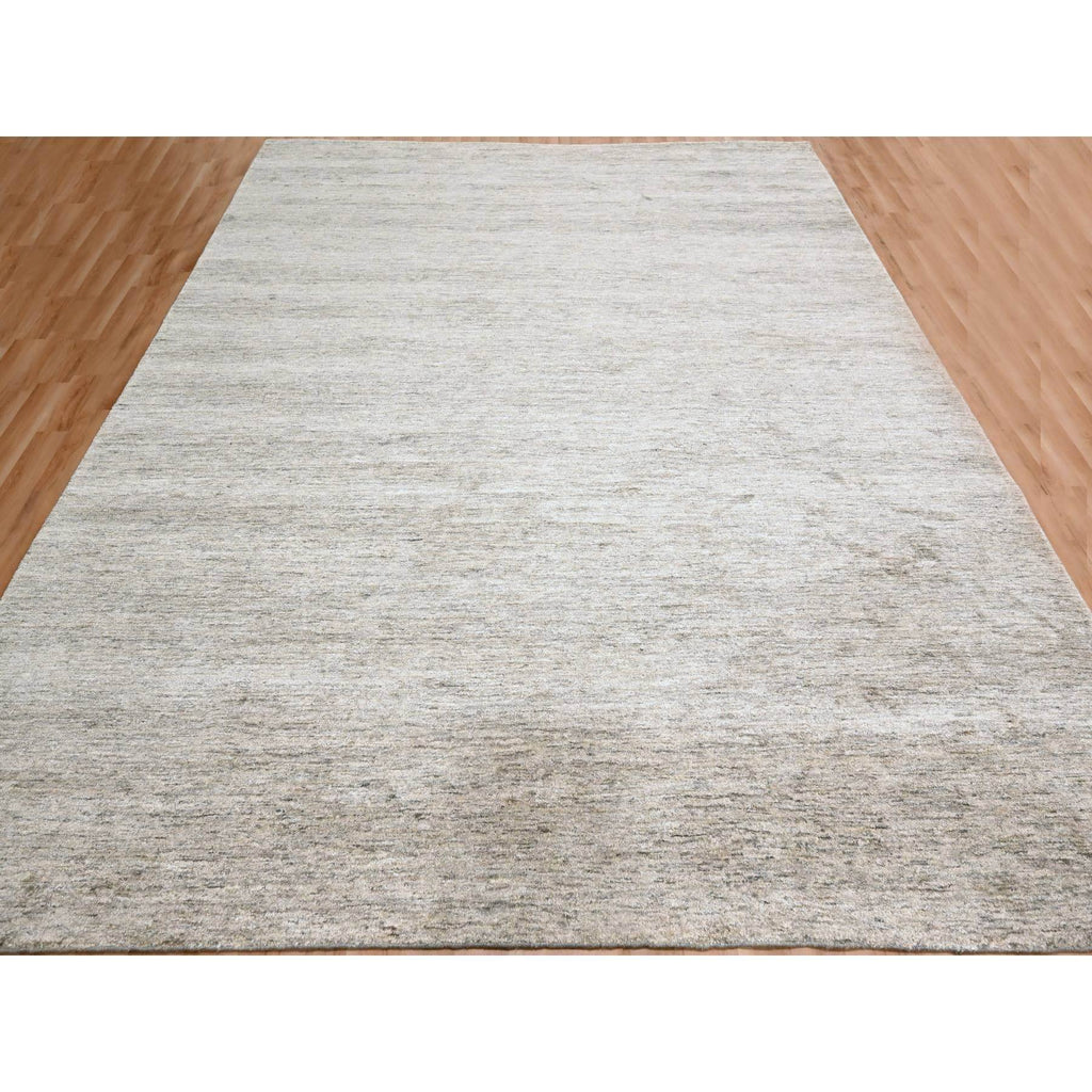 9'1"x11'10" Warm Taupe, Plain Solid Design, Soft To The Touch, Pure Sari Silk, Hand Knotted, Oriental Rug FWR456426