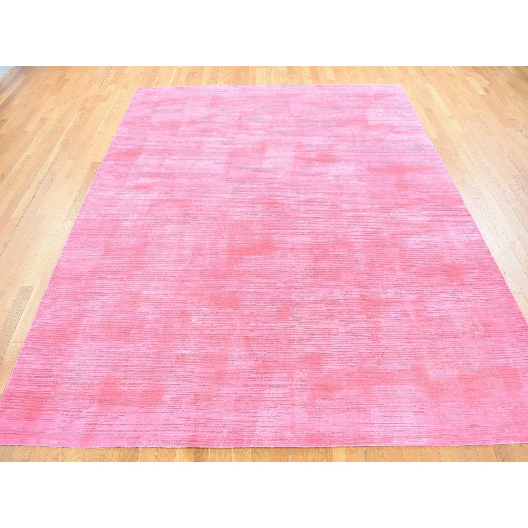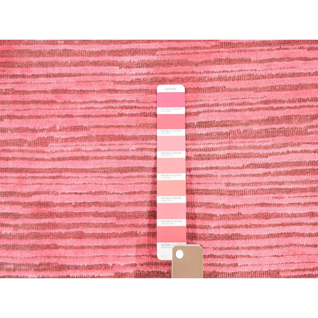 9'1"x11'10" Watermelon Pink Overdyed With Textured Wool, Hand Knotted Modern Design, Oriental Rug FWR483768