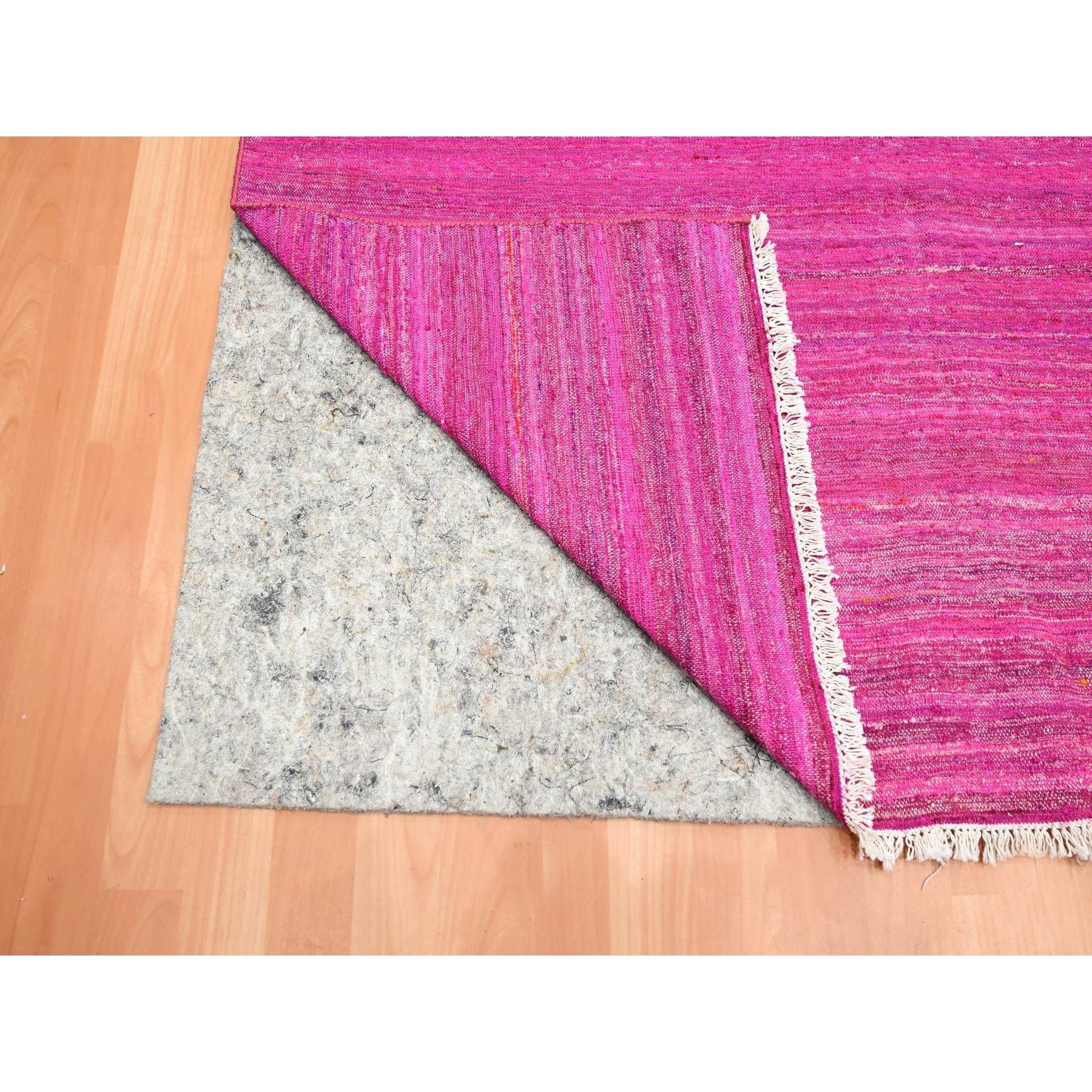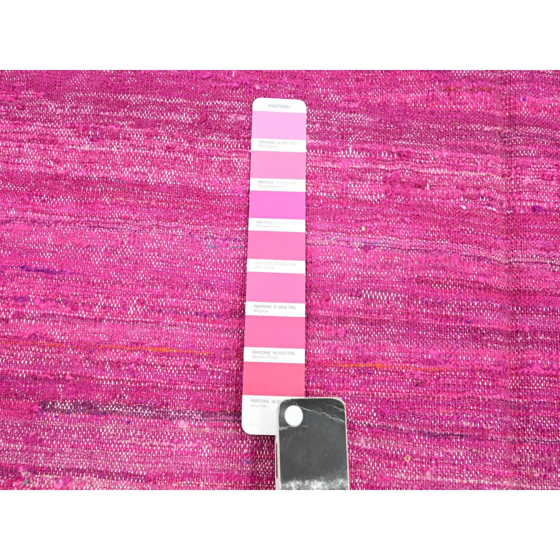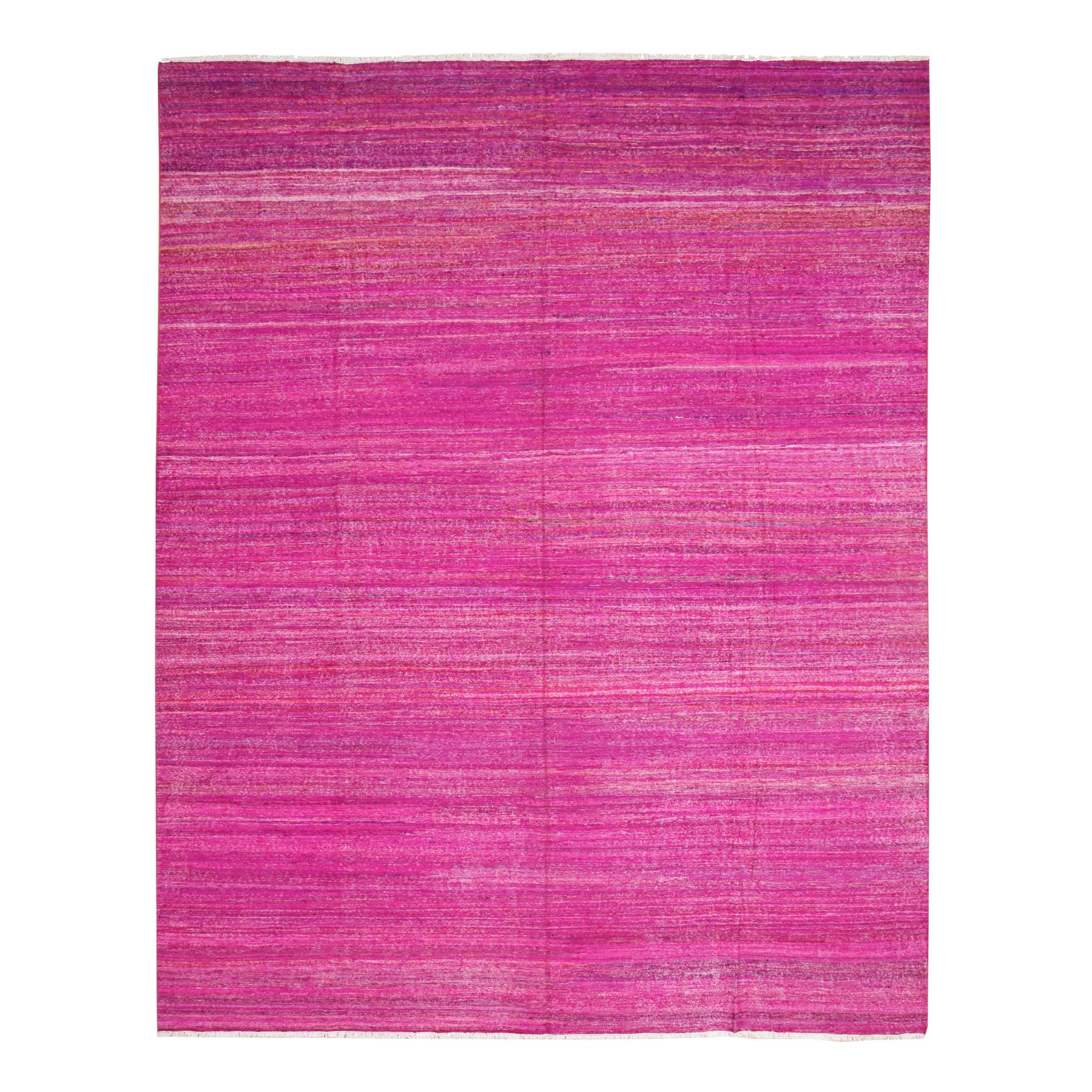 9'1"x11'7" Hot Pink, Sari Silk, Solid Design Kilim, Flat Weave, Hand Woven, Oriental Rug FWR453462