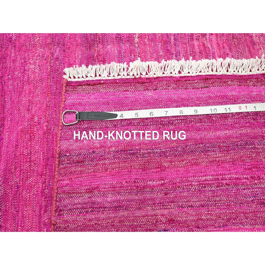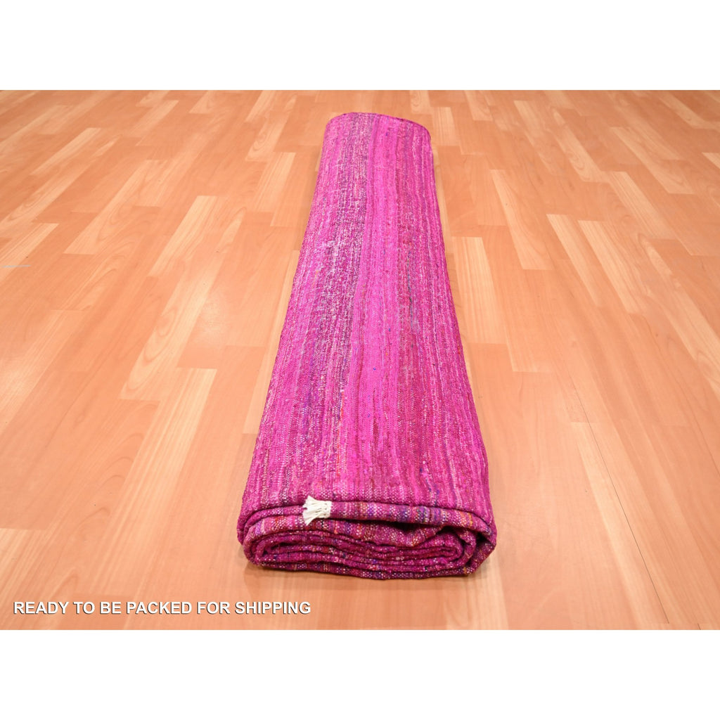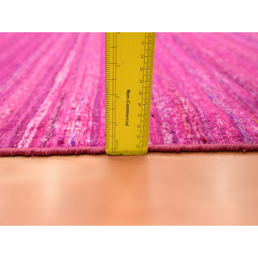 9'1"x11'7" Hot Pink, Sari Silk, Solid Design Kilim, Flat Weave, Hand Woven, Oriental Rug FWR453462