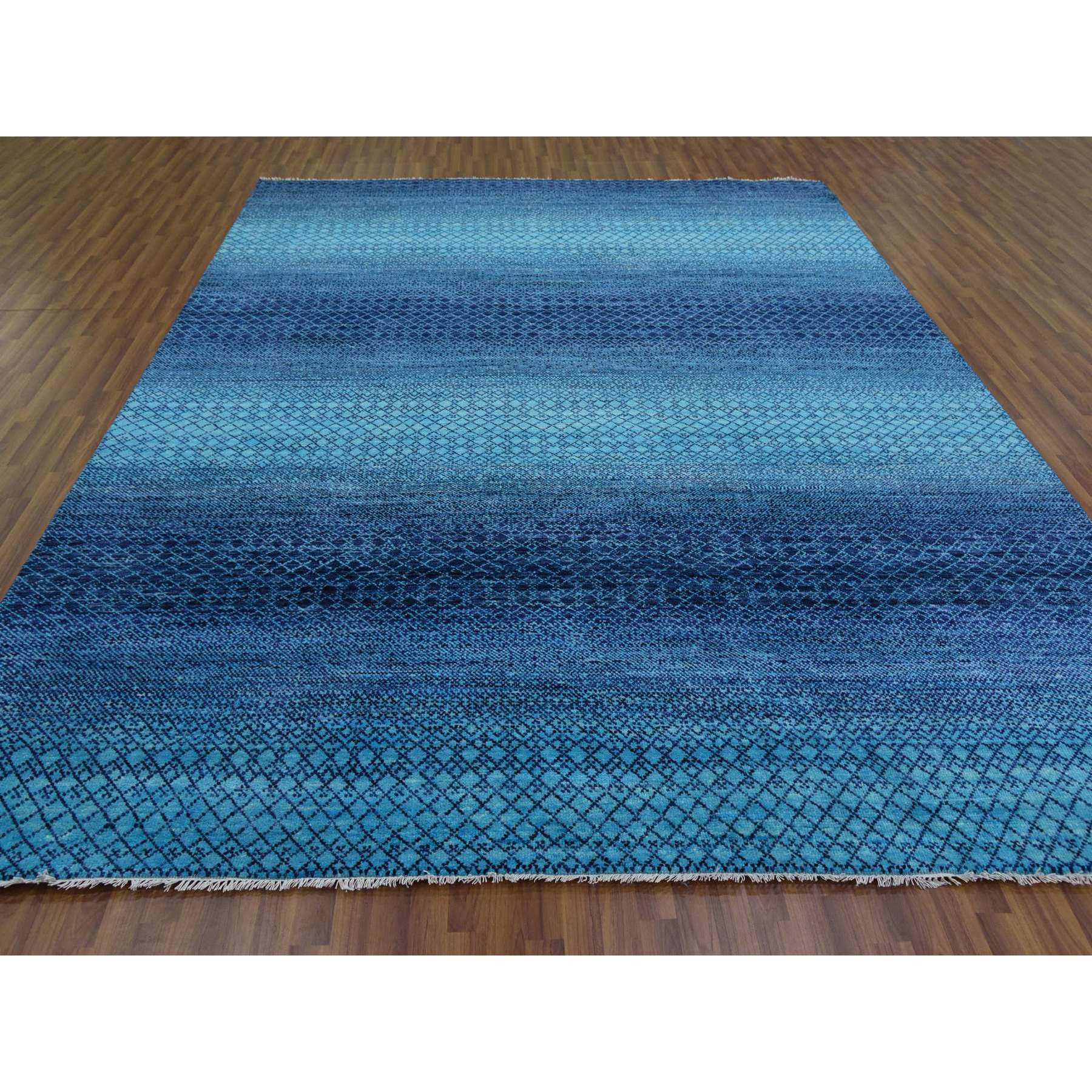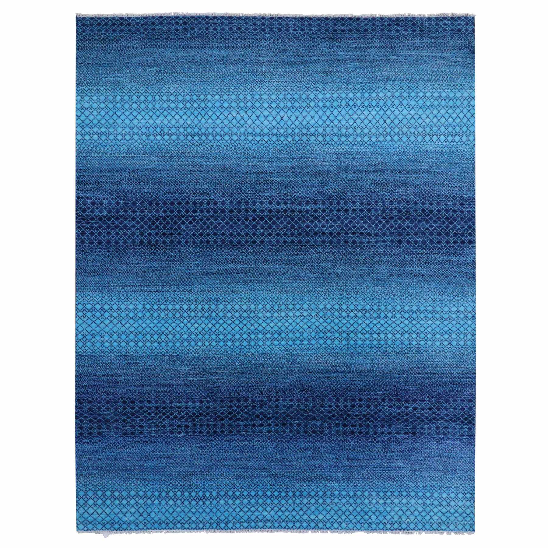 9'1"x11'8" Blue, Hand Knotted Modern Chiaroscuro Collection, Thick And Plush Pure Wool, Oriental Rug FWR475362