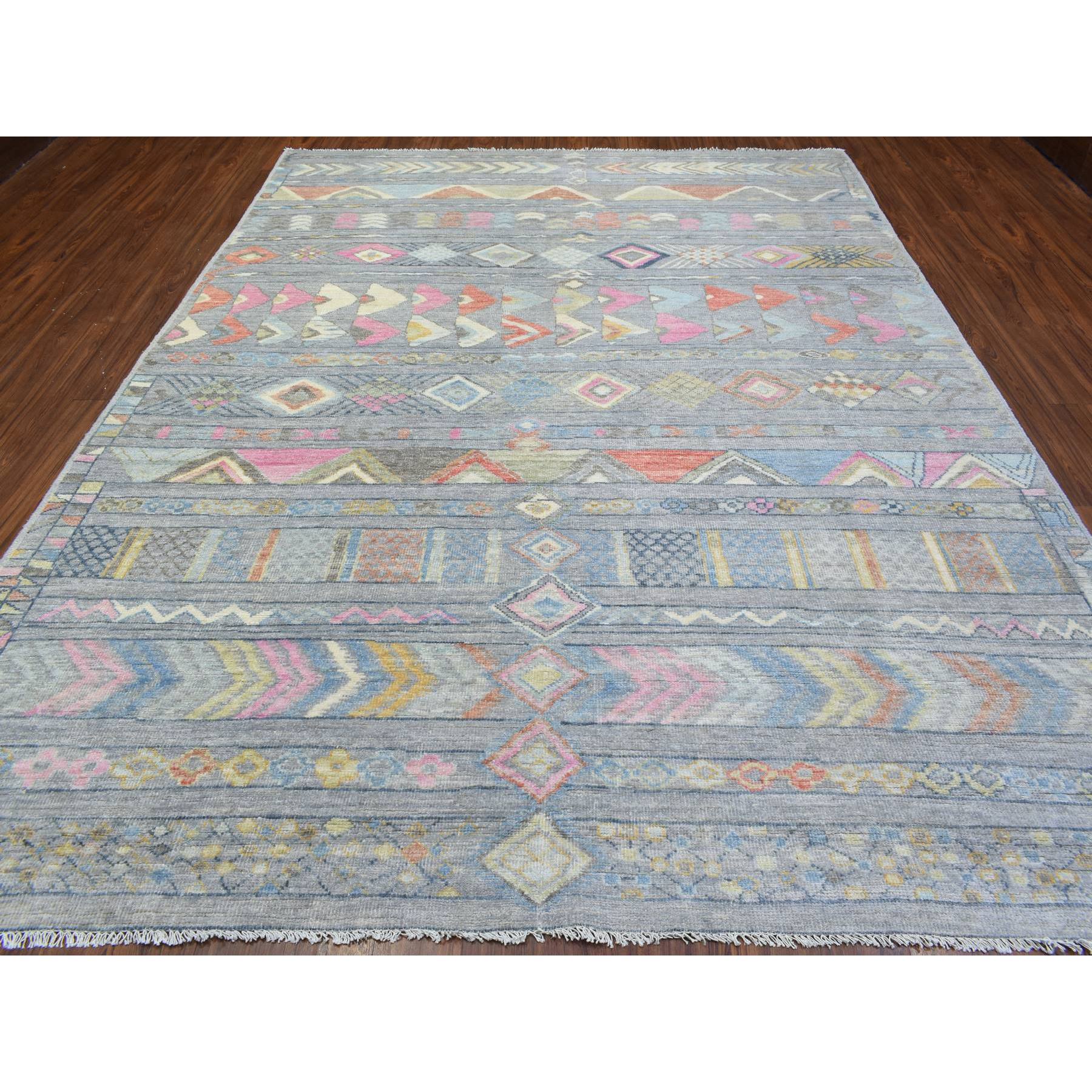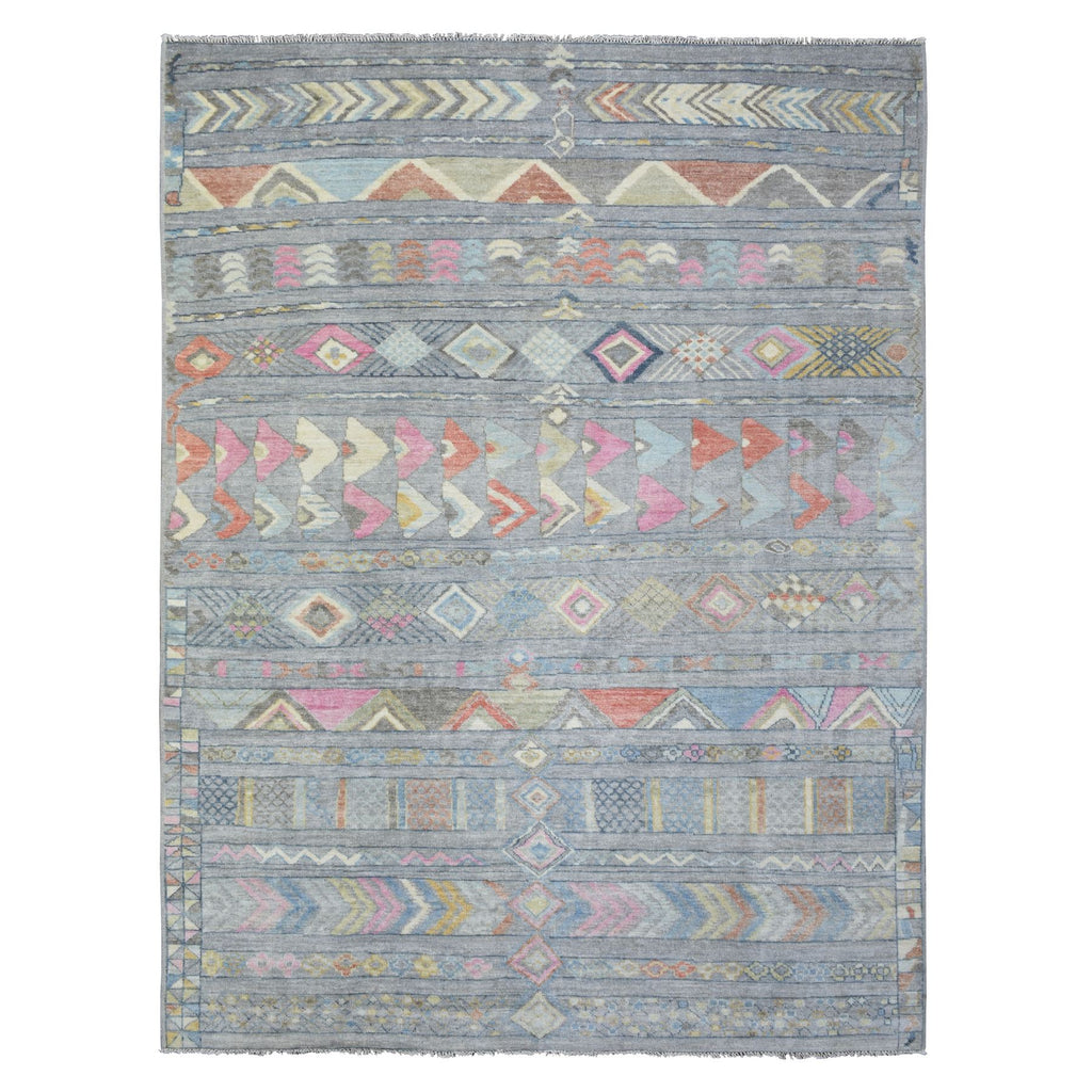 9'1"x11'8" Gray, Hand Knotted Anatolian Village Inspired With Small Triangular Design, Natural Wool, Runner Oriental Rug FWR437232