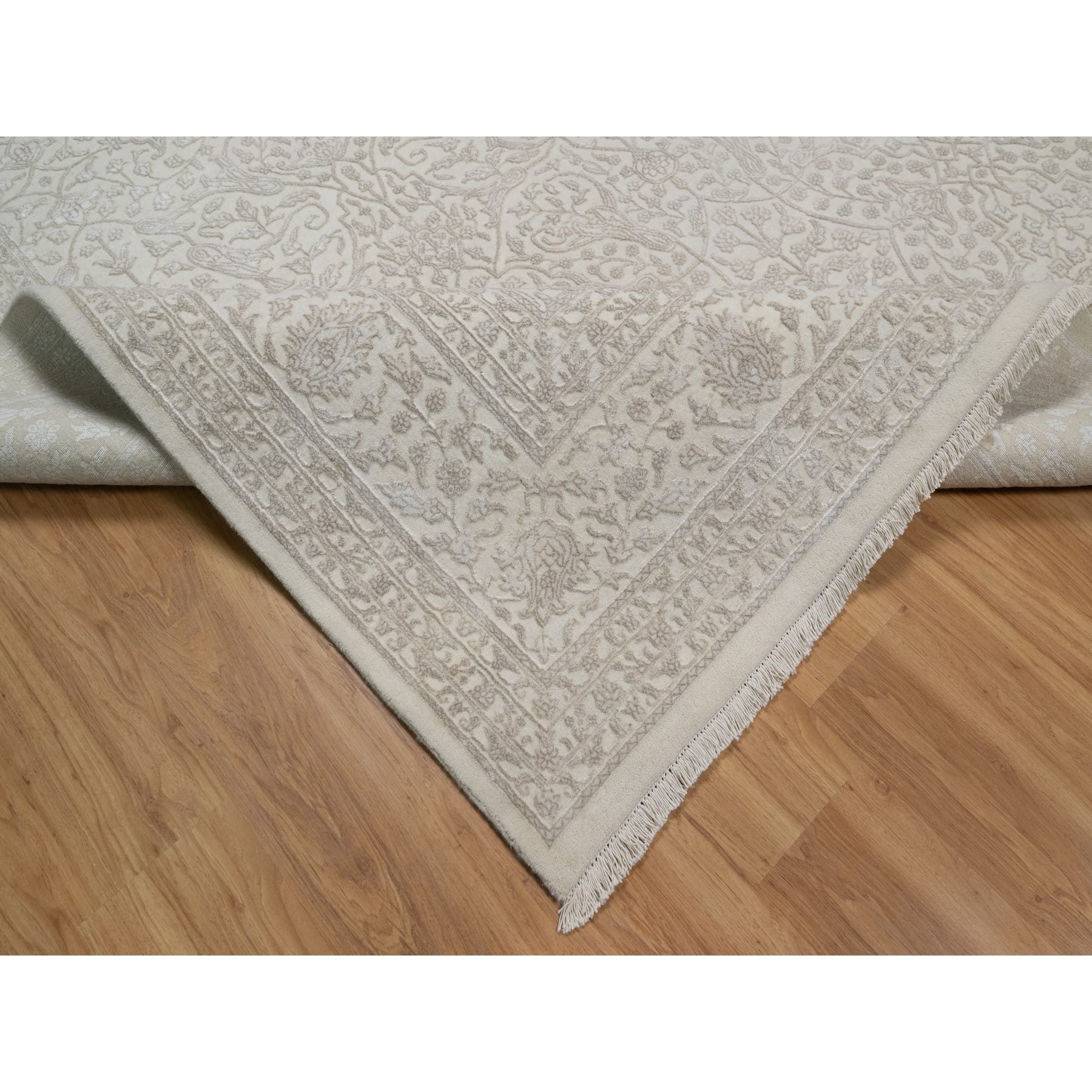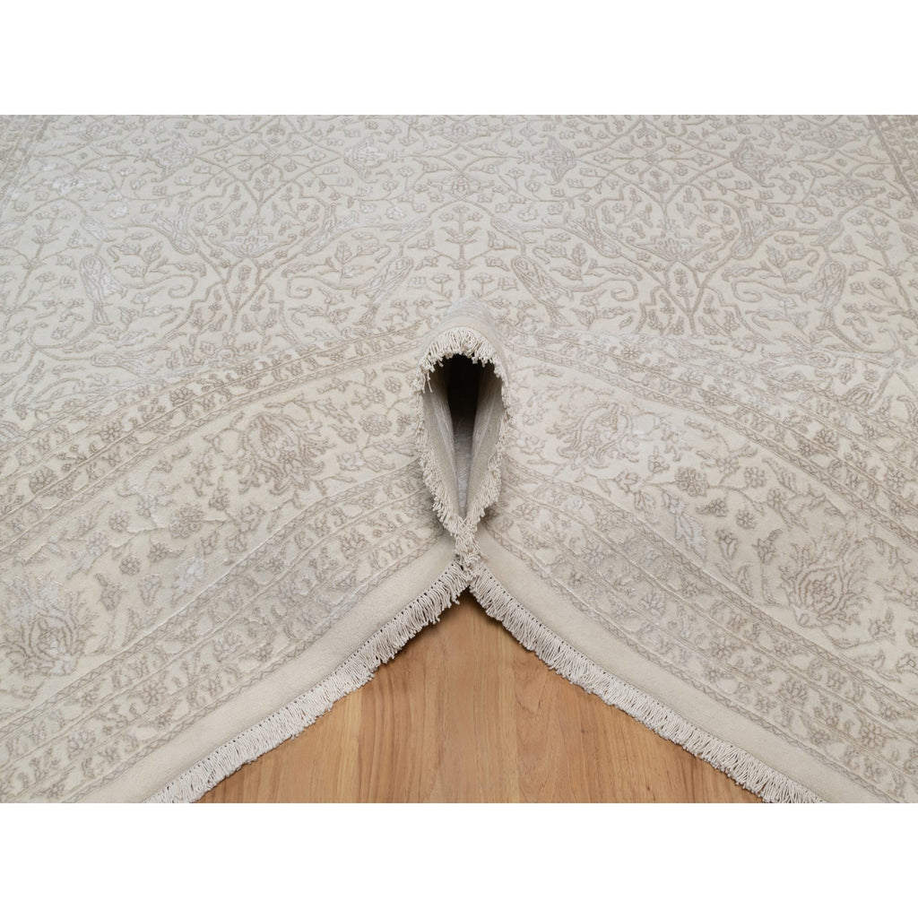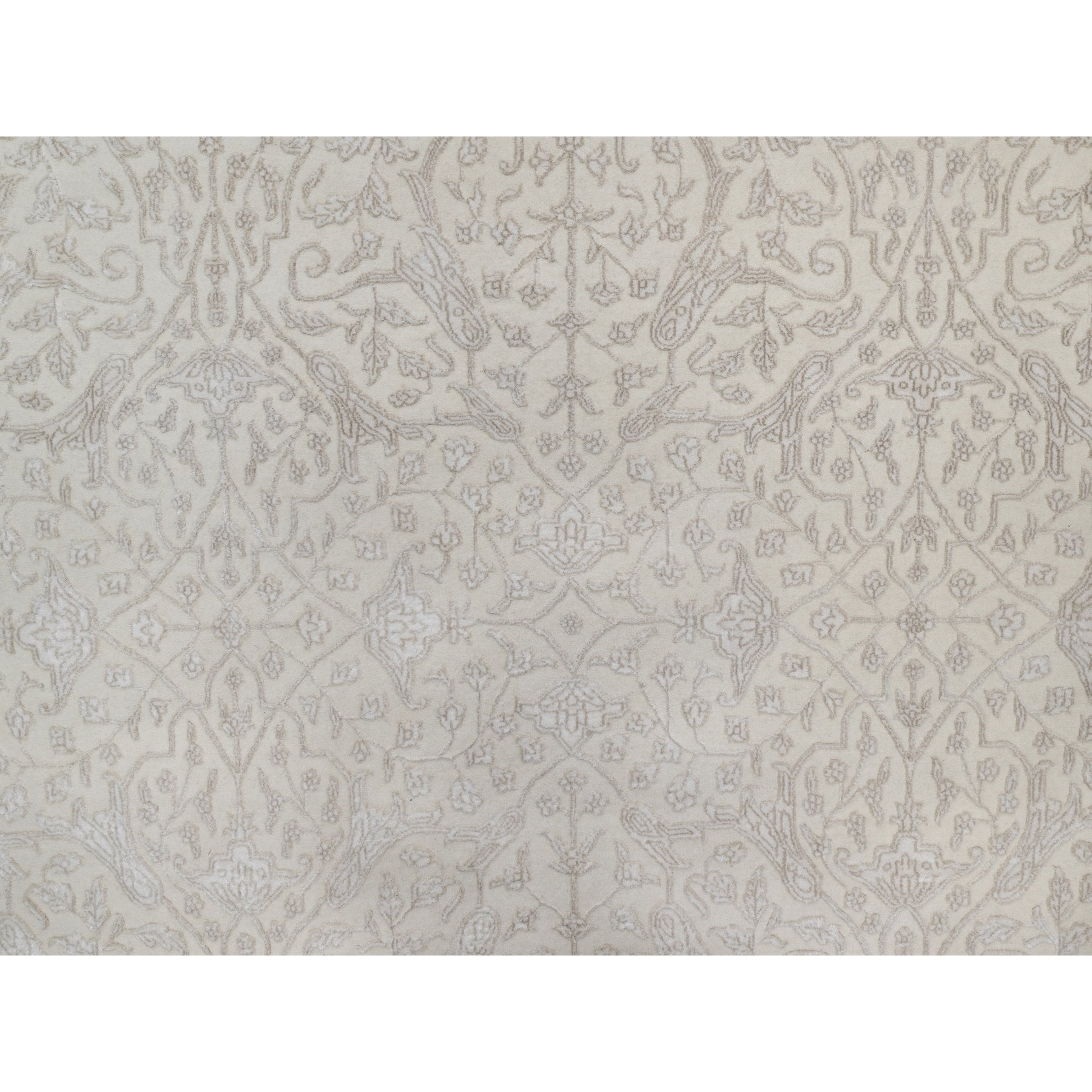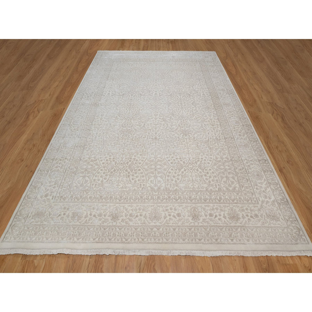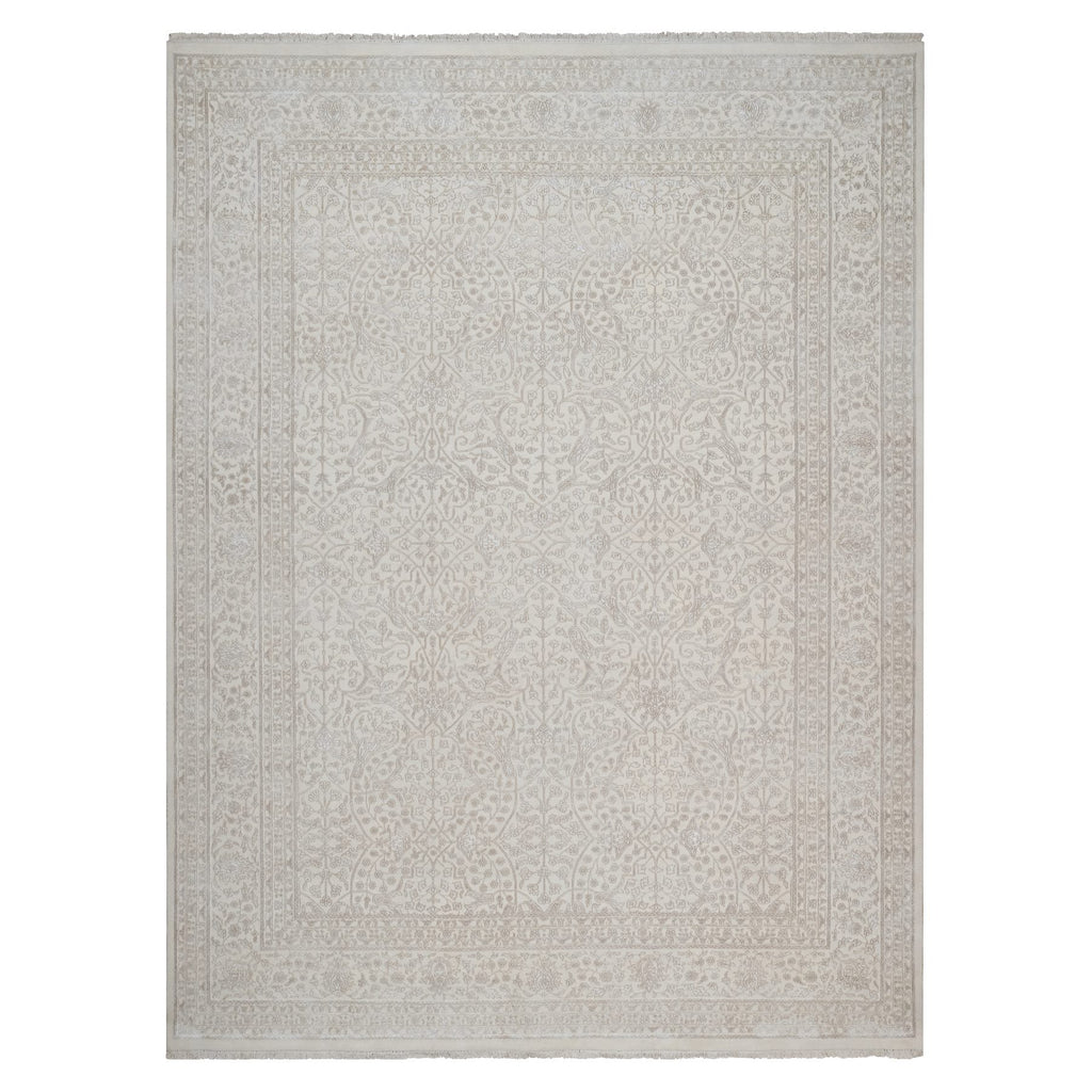9'1"x12'1" Alabaster White, Wool And Plant Based Silk, Light Tone On Tone With Persian Design, Thick And Plush, 200 Kpsi, Hand Knotted, Oriental Rug FWR548190