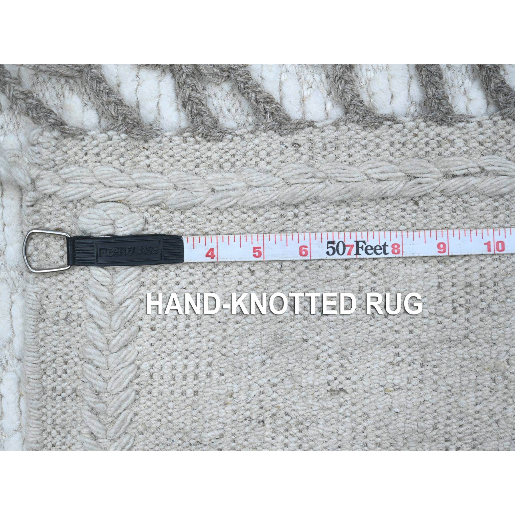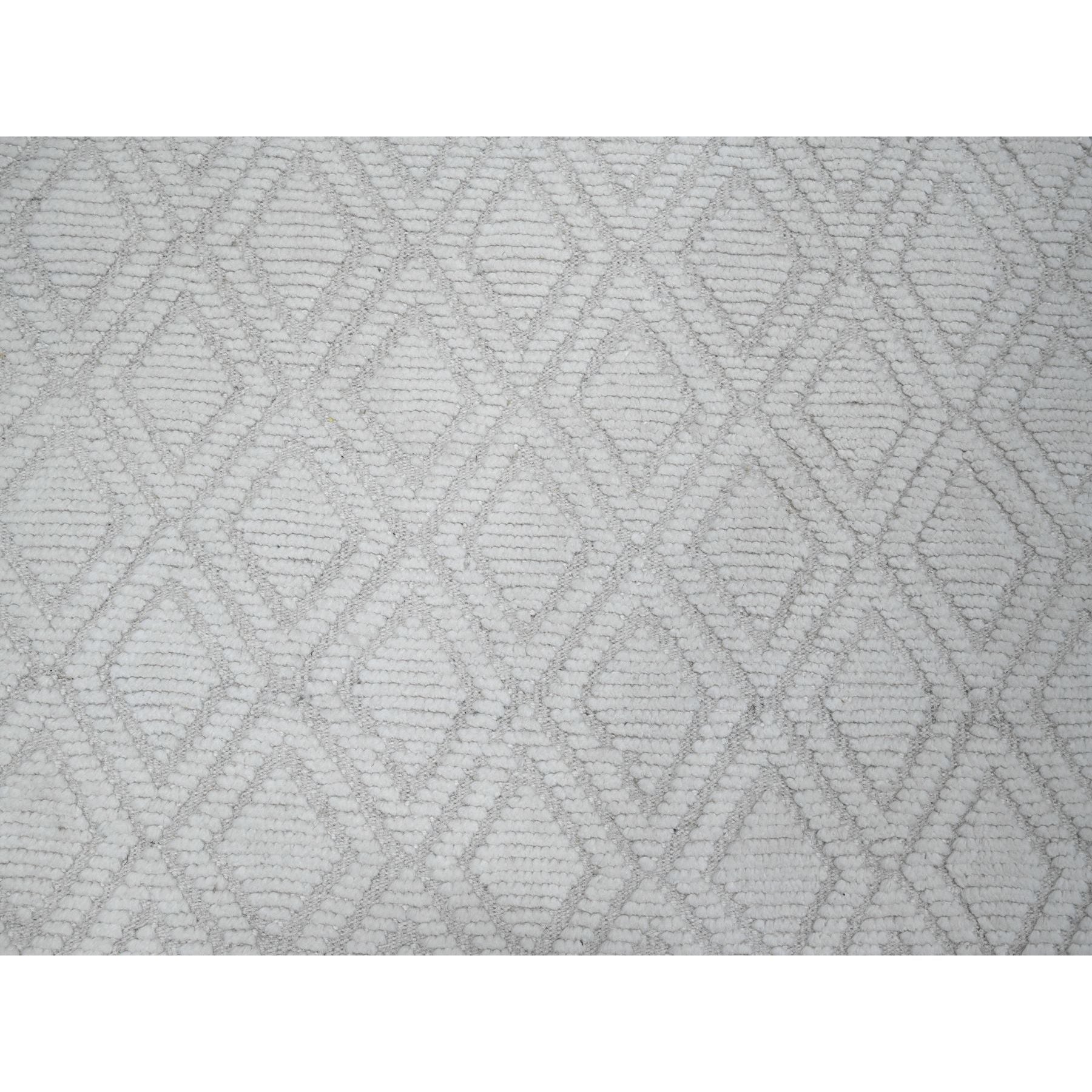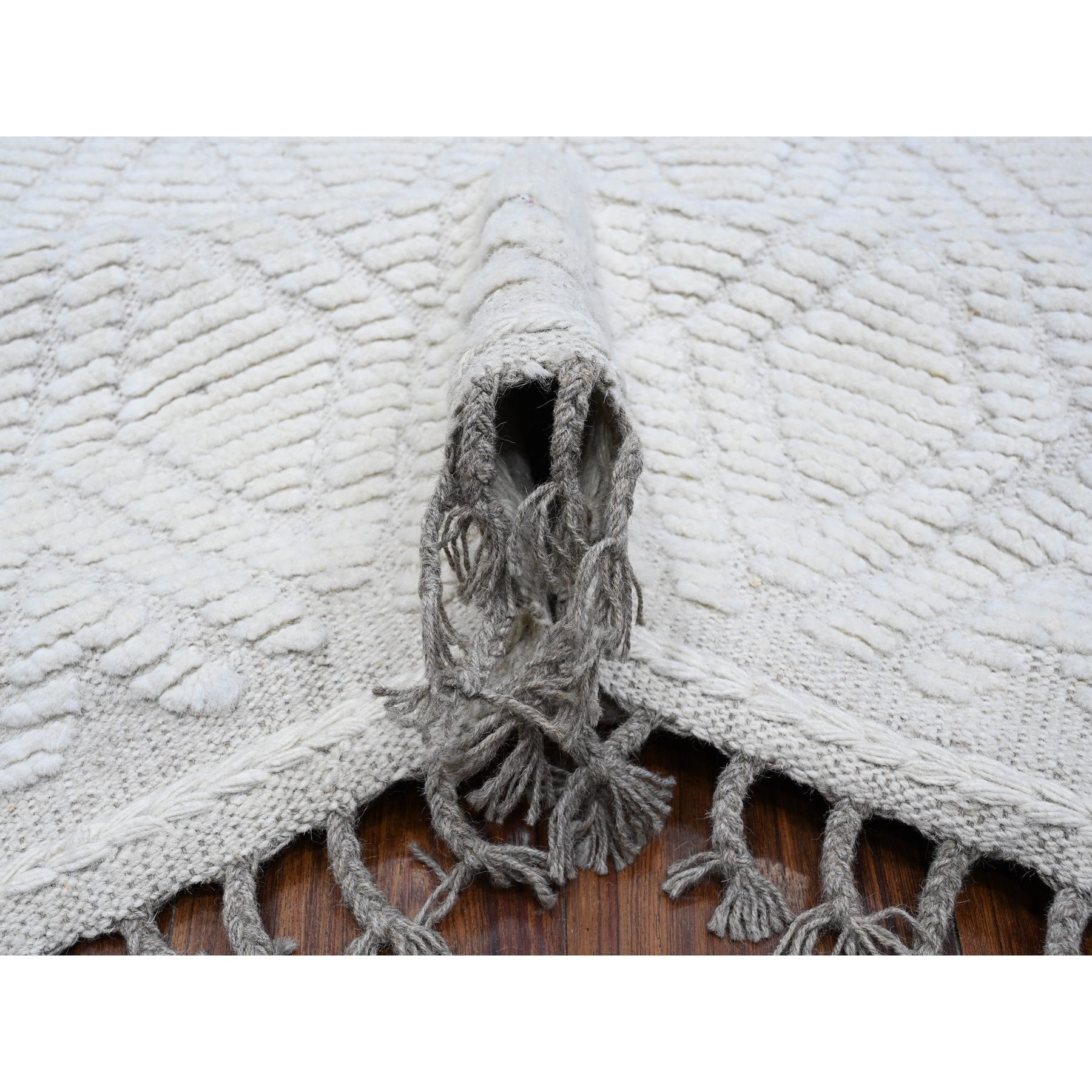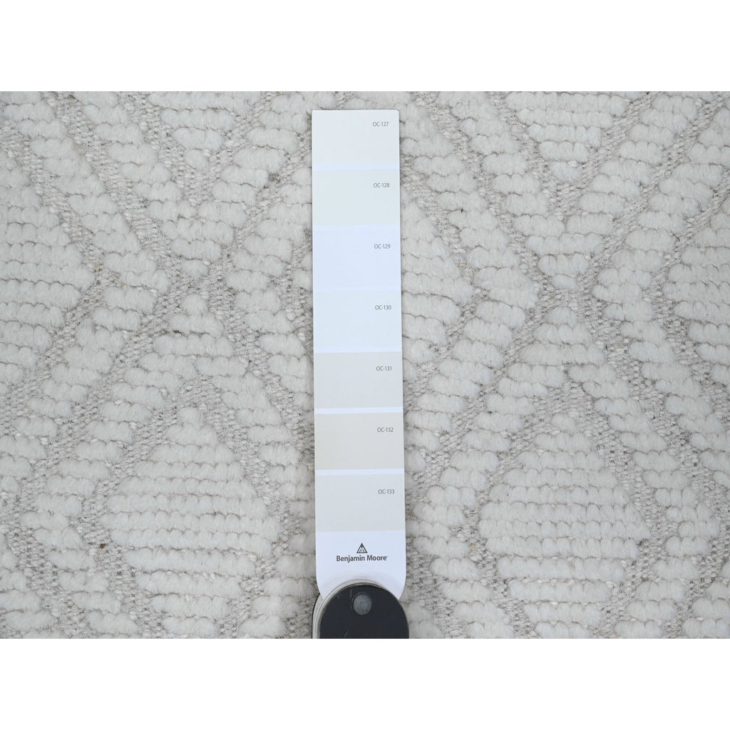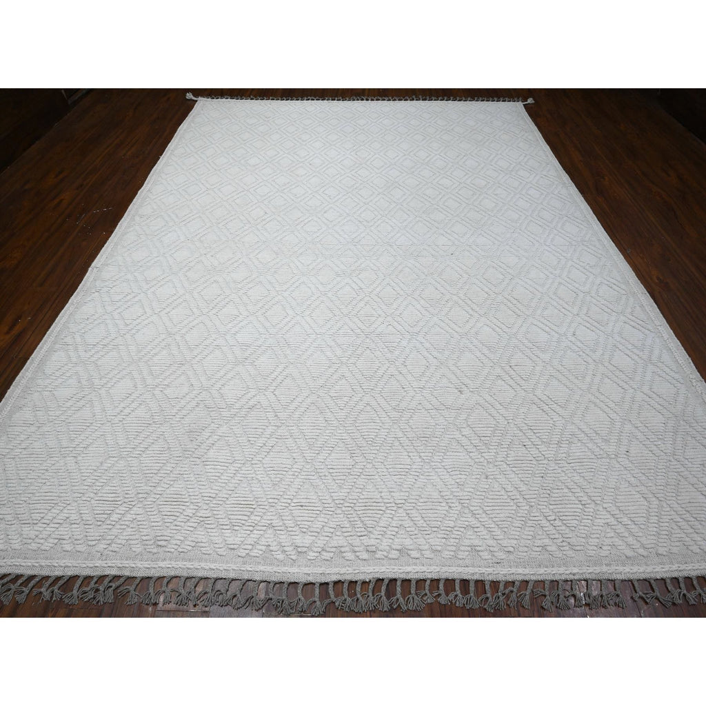 9'1"x12'1" Tahira White, Diamond Repetitive Moroccan Weave Zemmour Design, Embossed Pile, Tone On Tone, Velvety Wool, Hand Knotted, Vegetable Dyes, Oriental Rug FWR535080