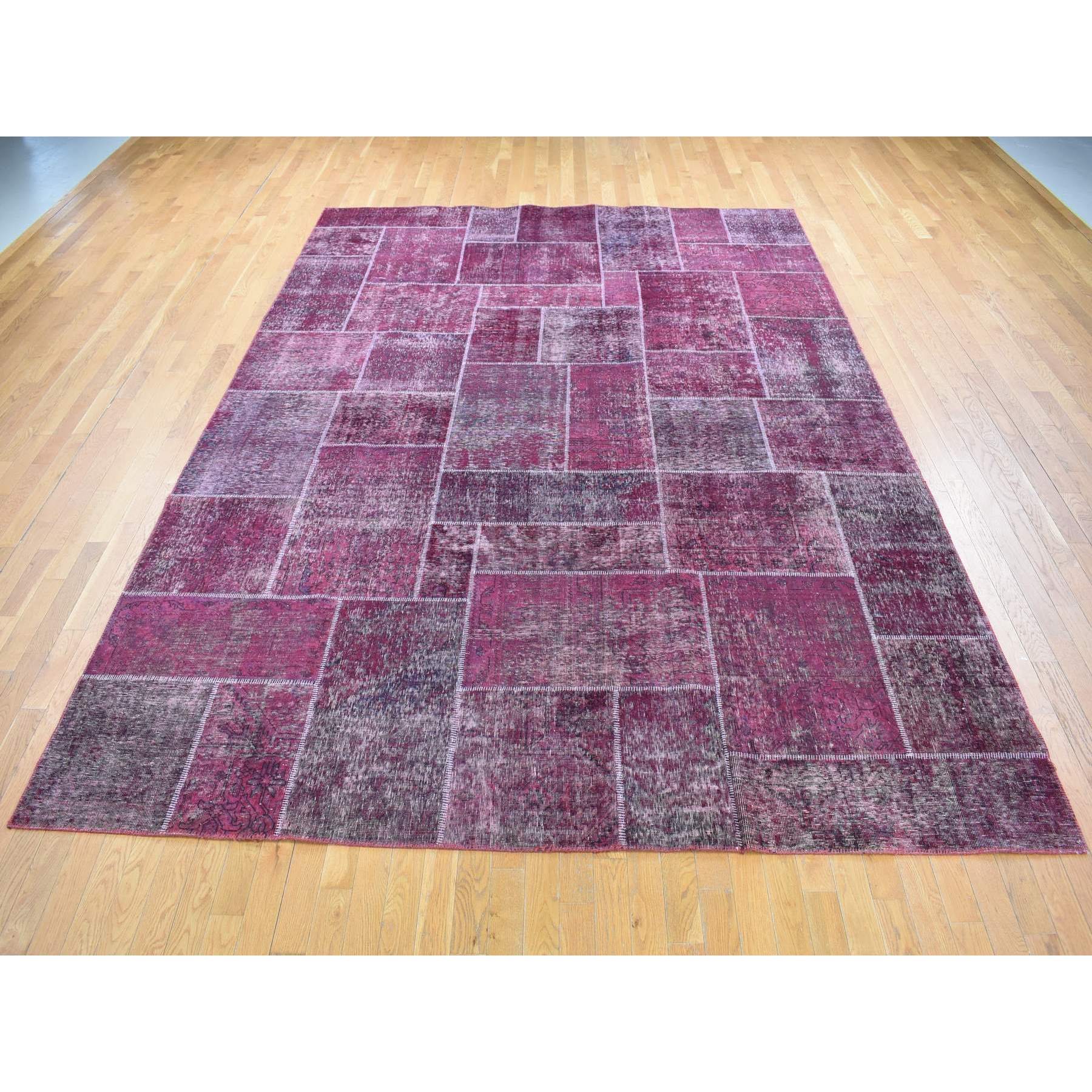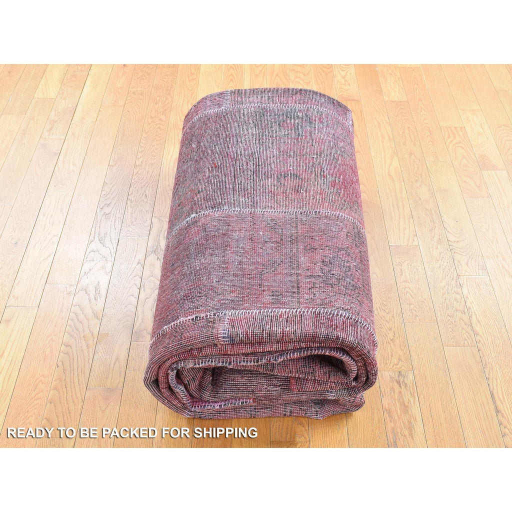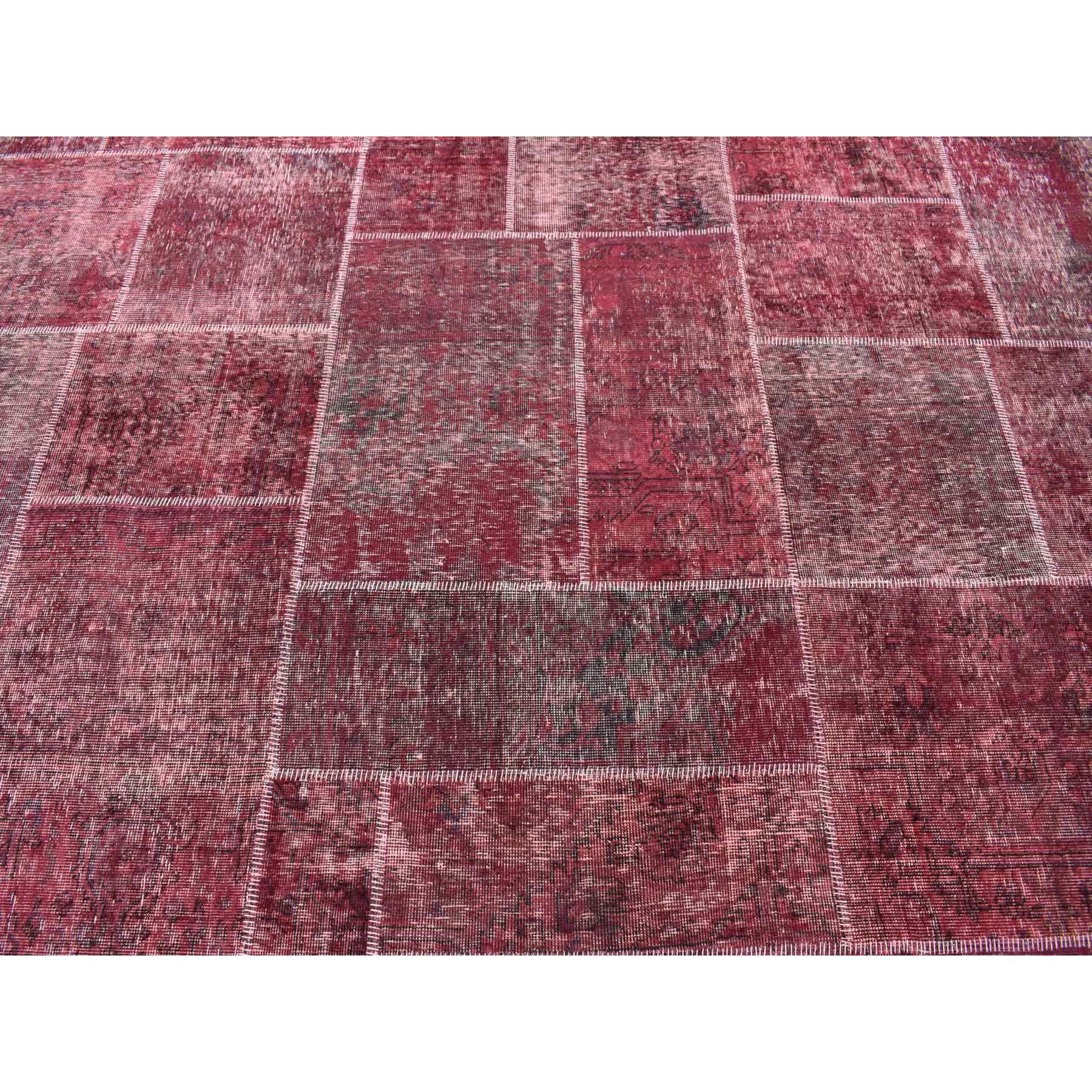 9'1"x12'10" Vermilion Red, Vintage Overdyed Persian Patchwork Design, Handmade Hand Knotted Pure Wool, Oriental Rug FWR483972