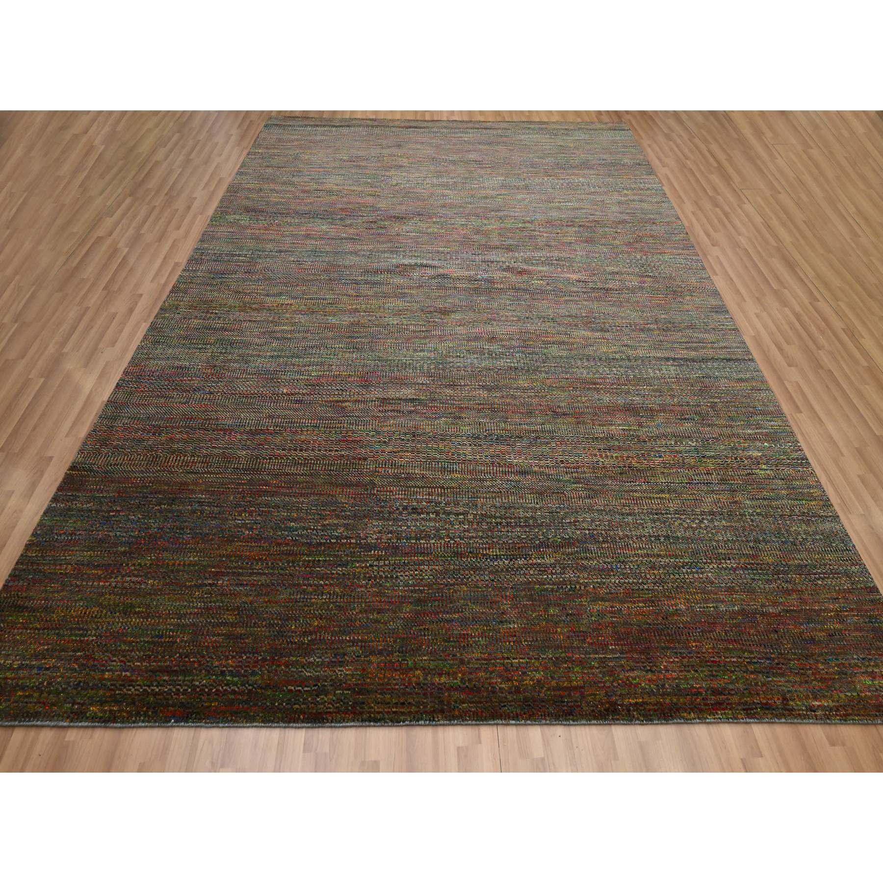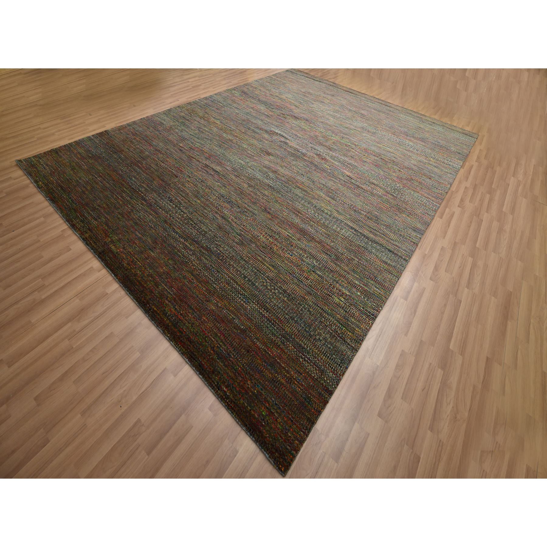 9'1"x12'2" Dark Olive Green, Wool And Silk, Modern Grass Design, Hand Knotted, Tone On Tone, Lush And Plush, Oriental Rug FWR499434