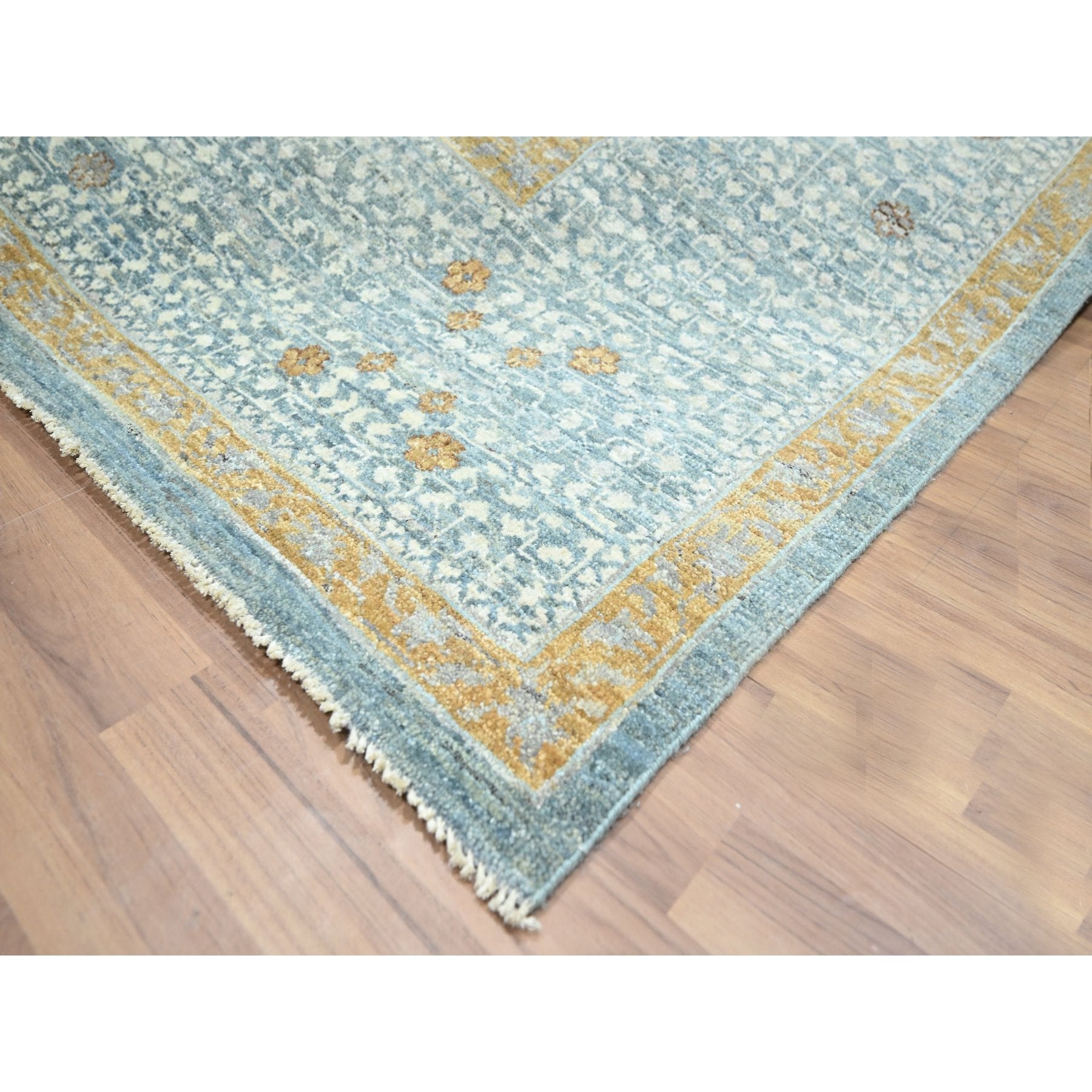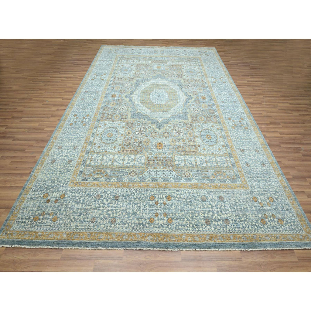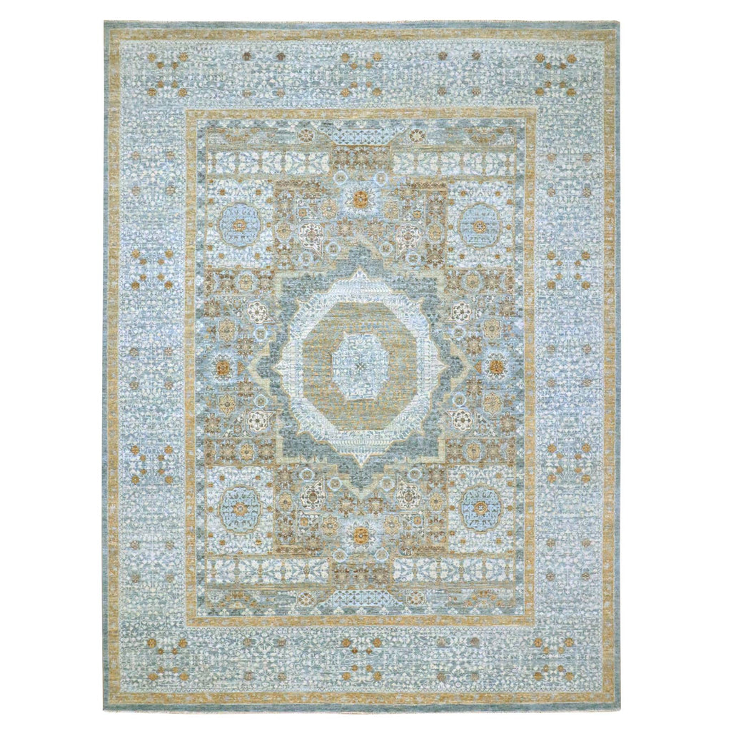 9'1"x12'2" Stone Blue With Gold, Mamluk Design, Pre Historic 14th Century Influence, Natural Dyes, 100% Wool, Hand Knotted, Oriental Rug FWR458568