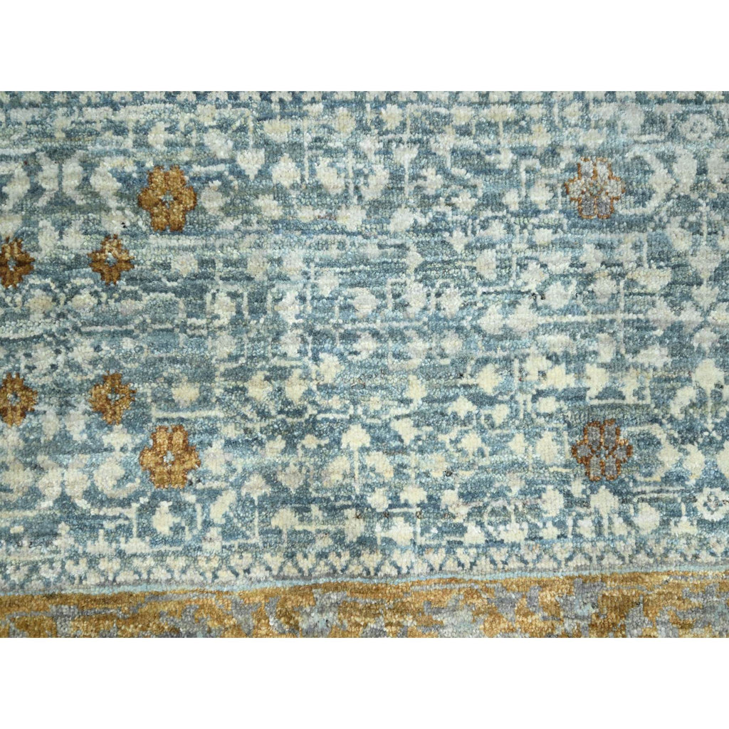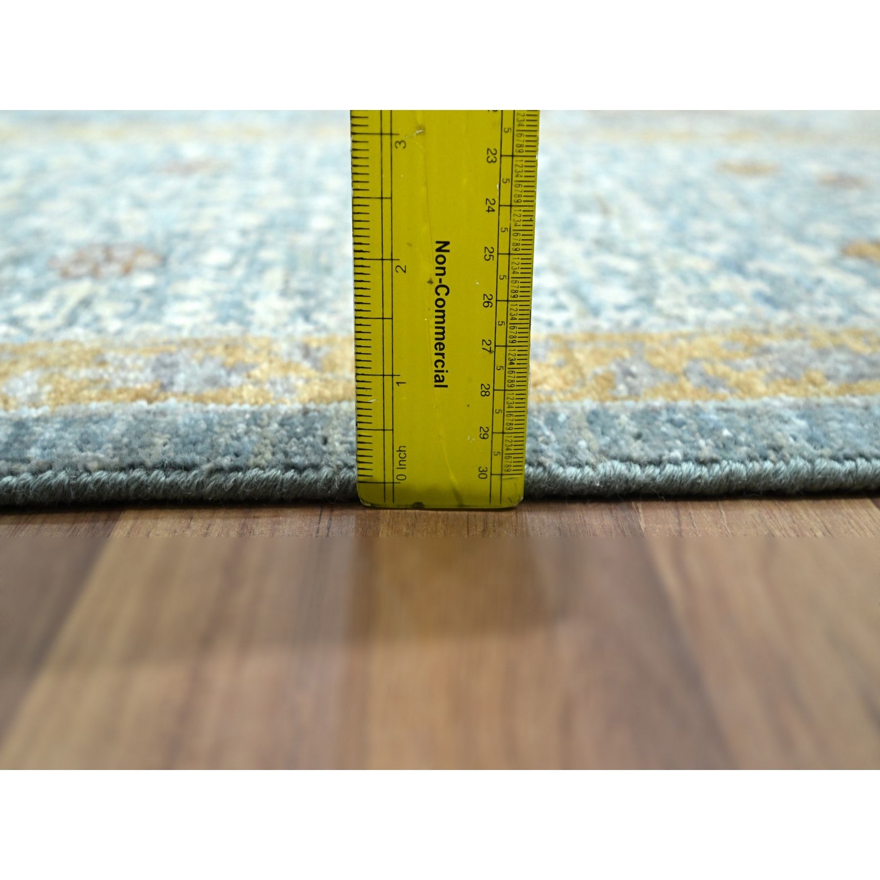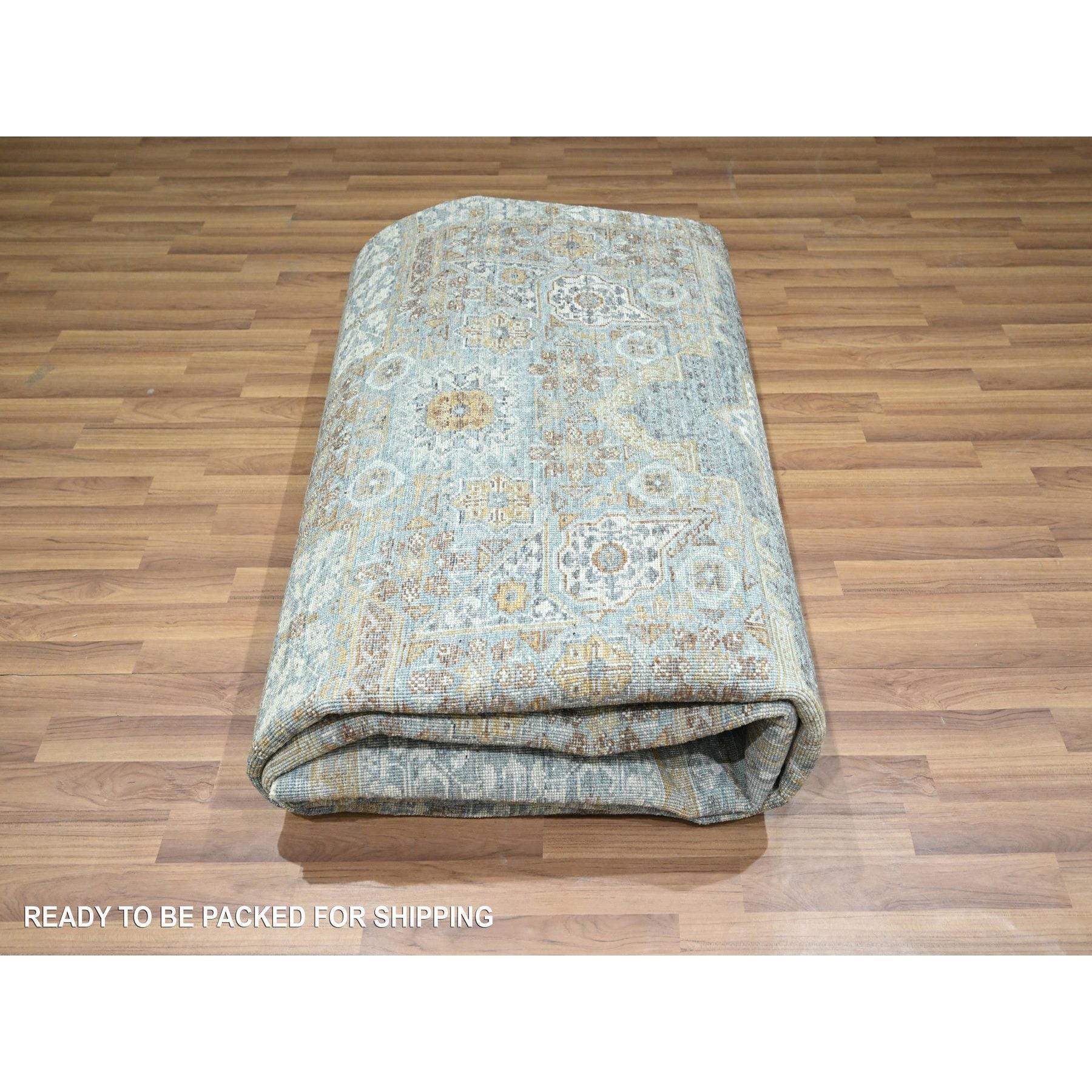 9'1"x12'2" Stone Blue With Gold, Mamluk Design, Pre Historic 14th Century Influence, Natural Dyes, 100% Wool, Hand Knotted, Oriental Rug FWR458568
