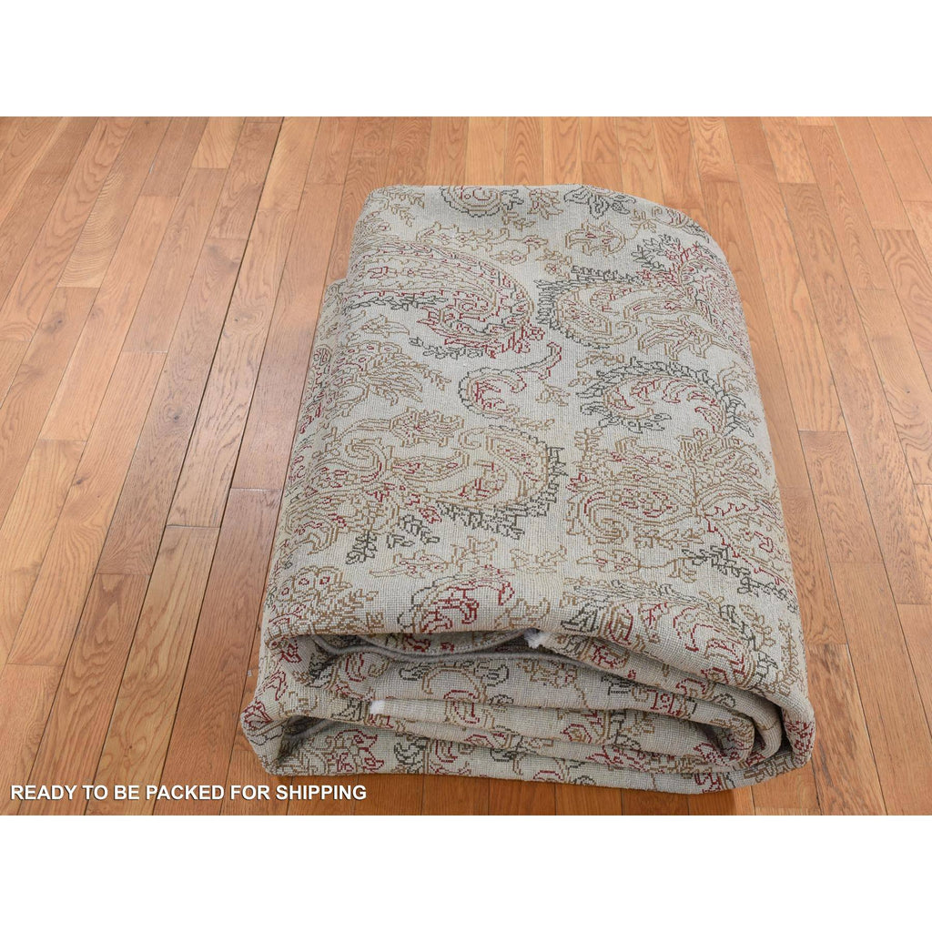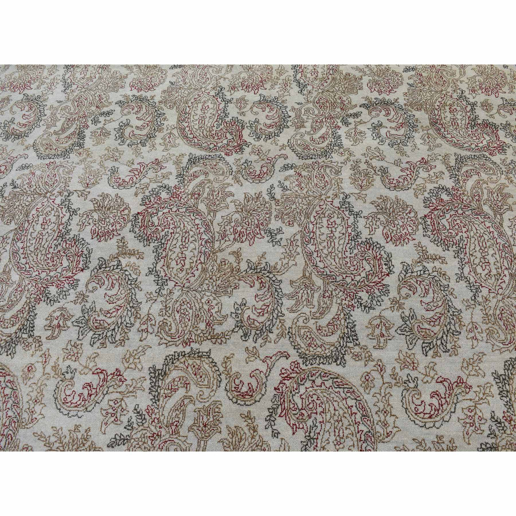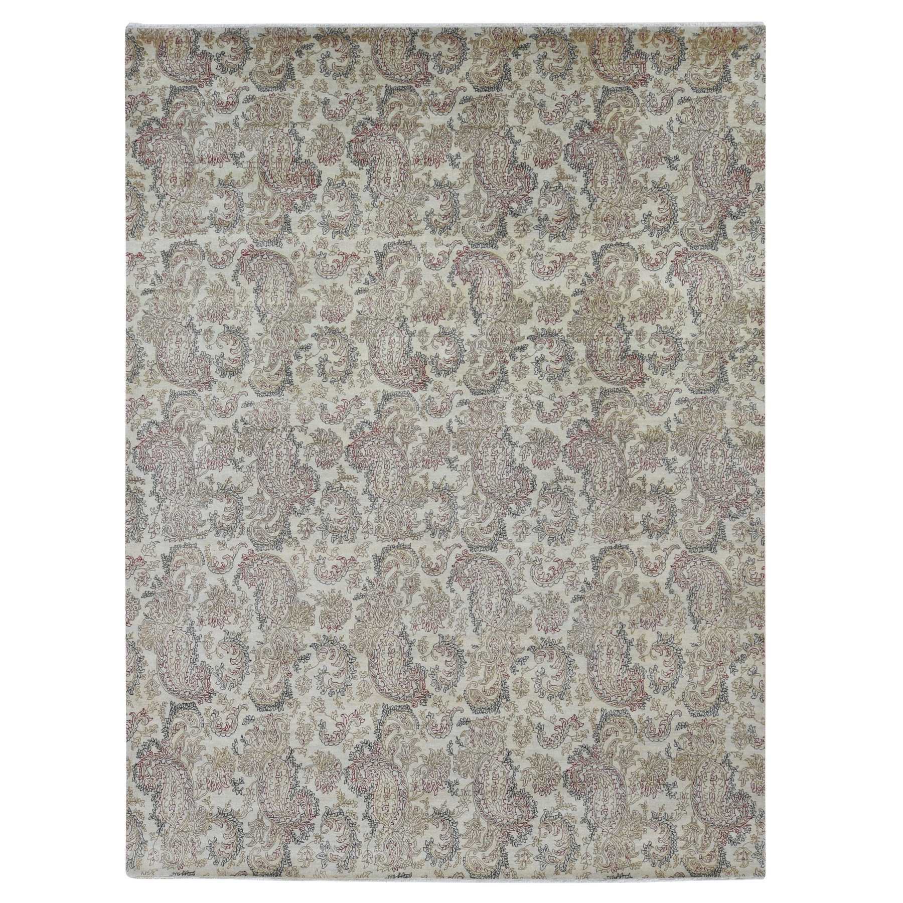 9'1"x12'3" Agreeable Gray, Agra With Paisley Design, 100% Wool, Hand Knotted, Borderless Design, Oriental Rug FWR525114