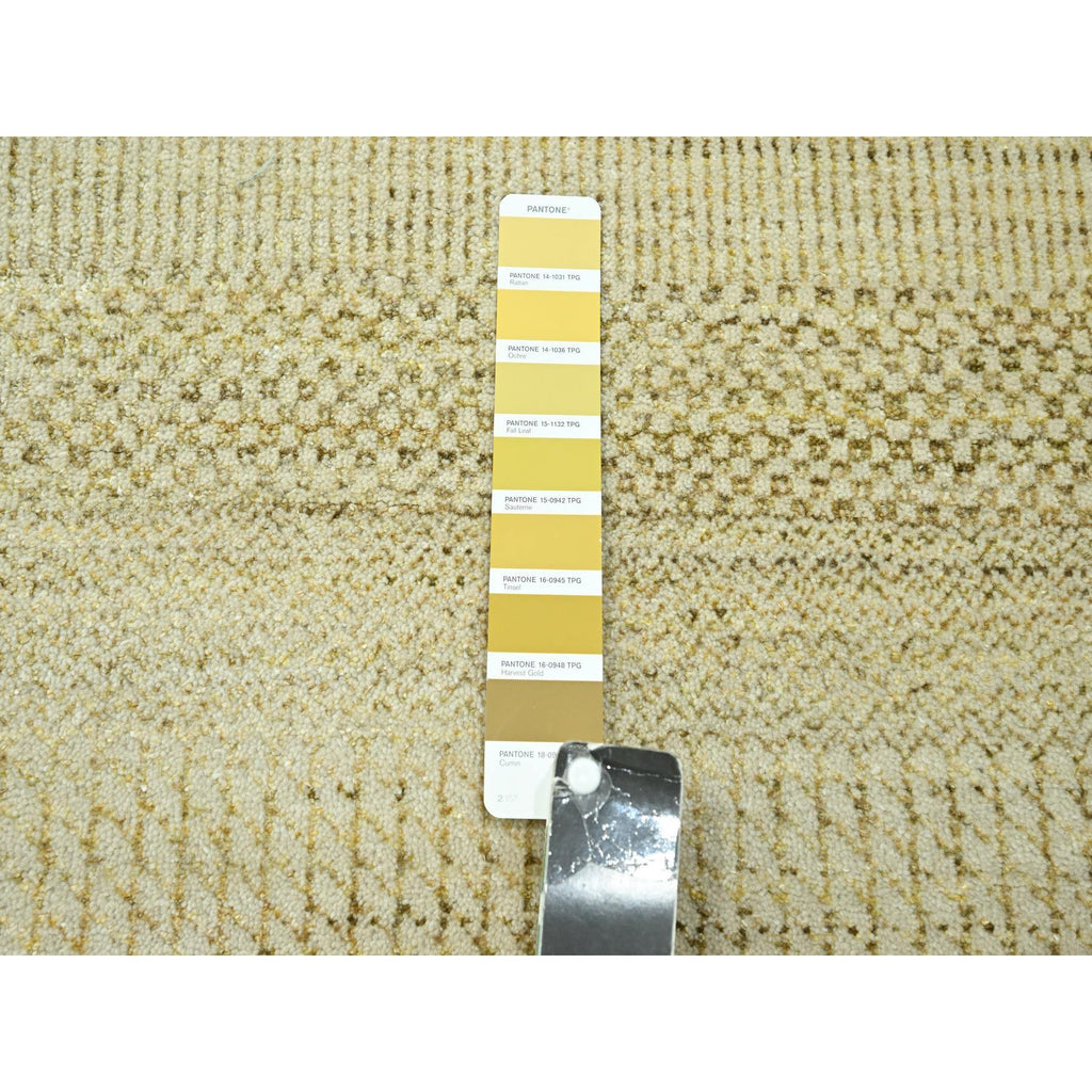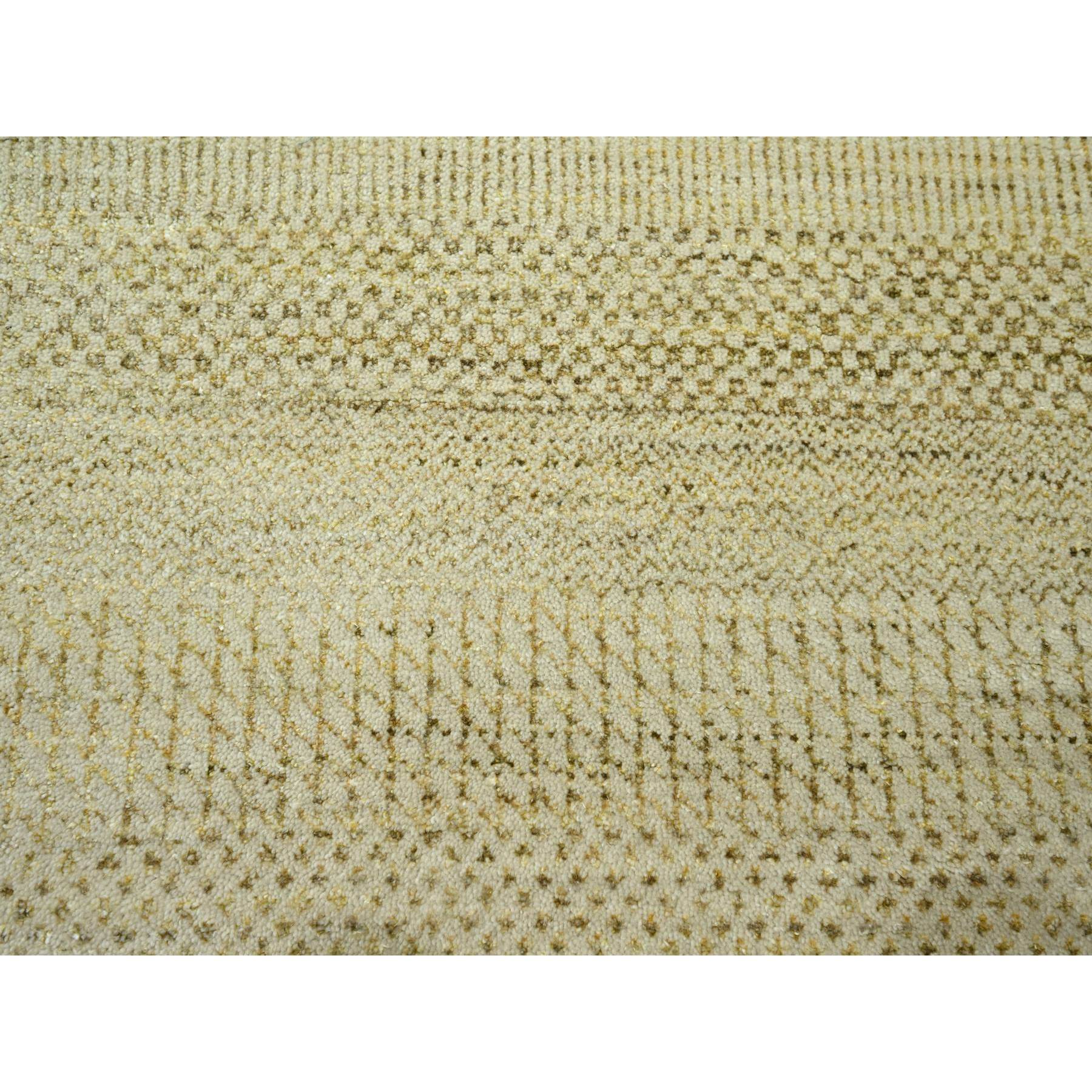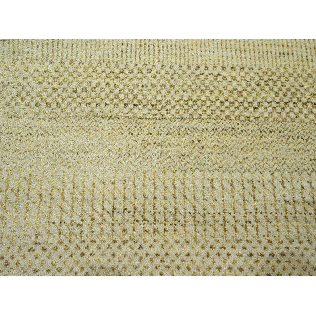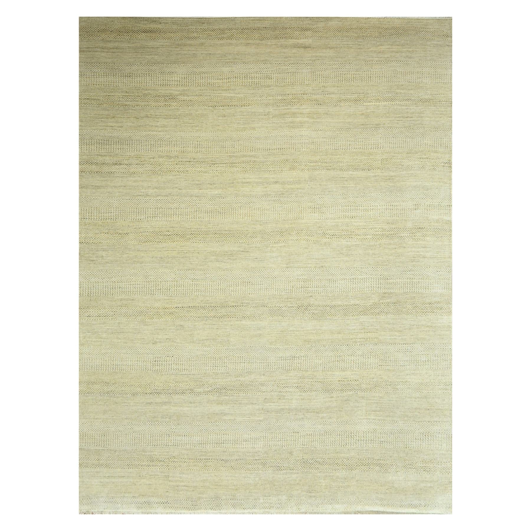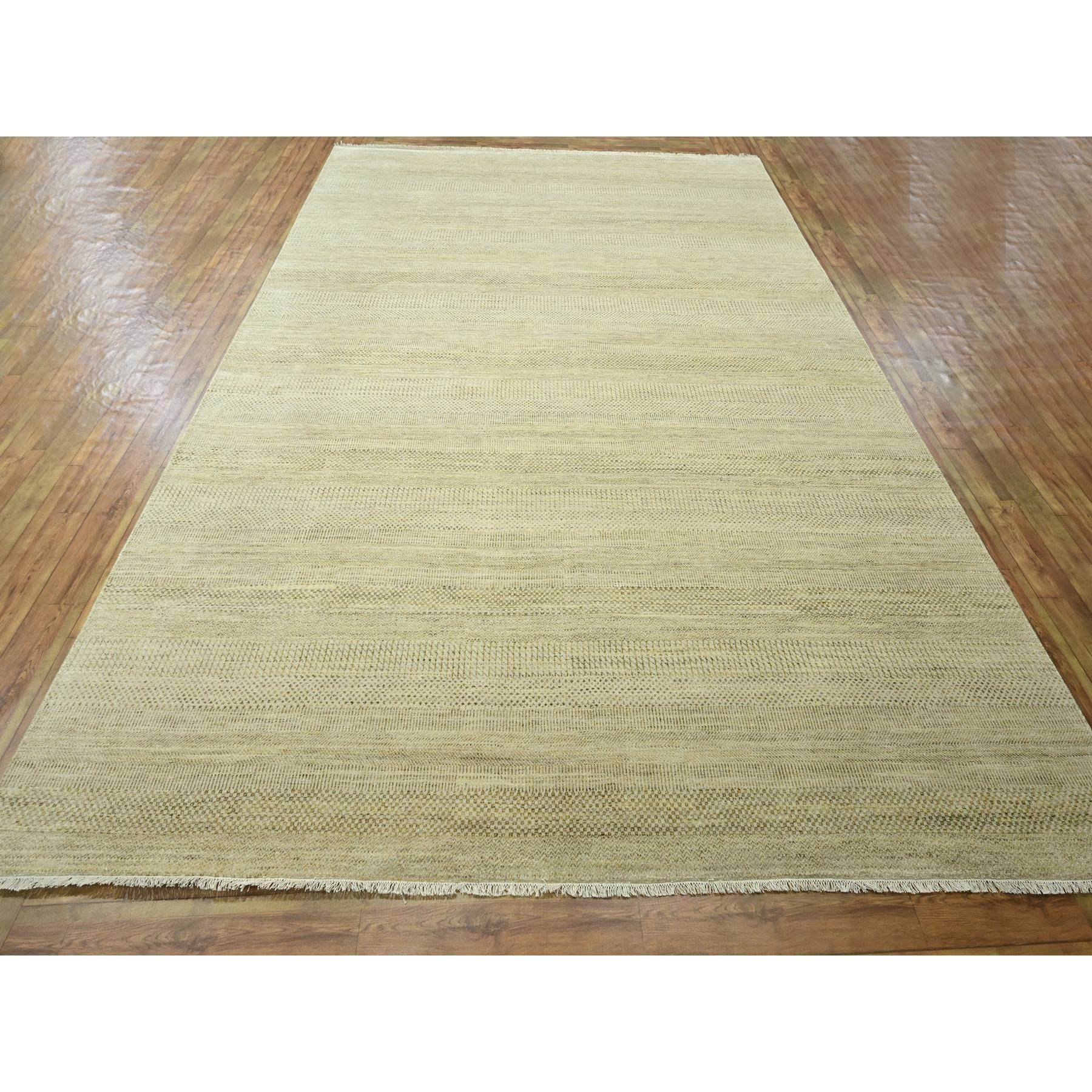 9'1"x12'3" Ecru Brown, Modern Grass Design, Hand Knotted, Borderless, Tone On Tone, Wool And Silk, Denser Weave, Lush And Plush, Oriental Rug FWR458046