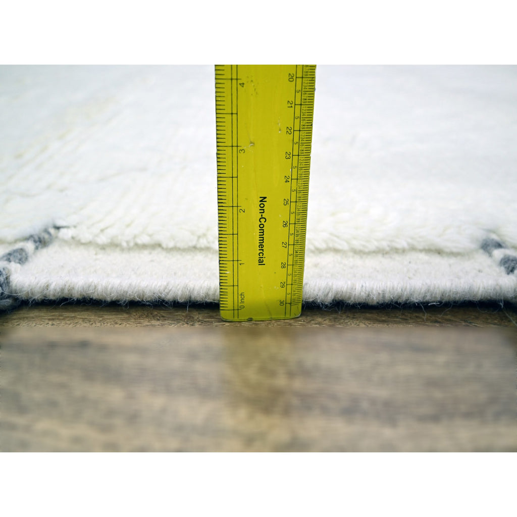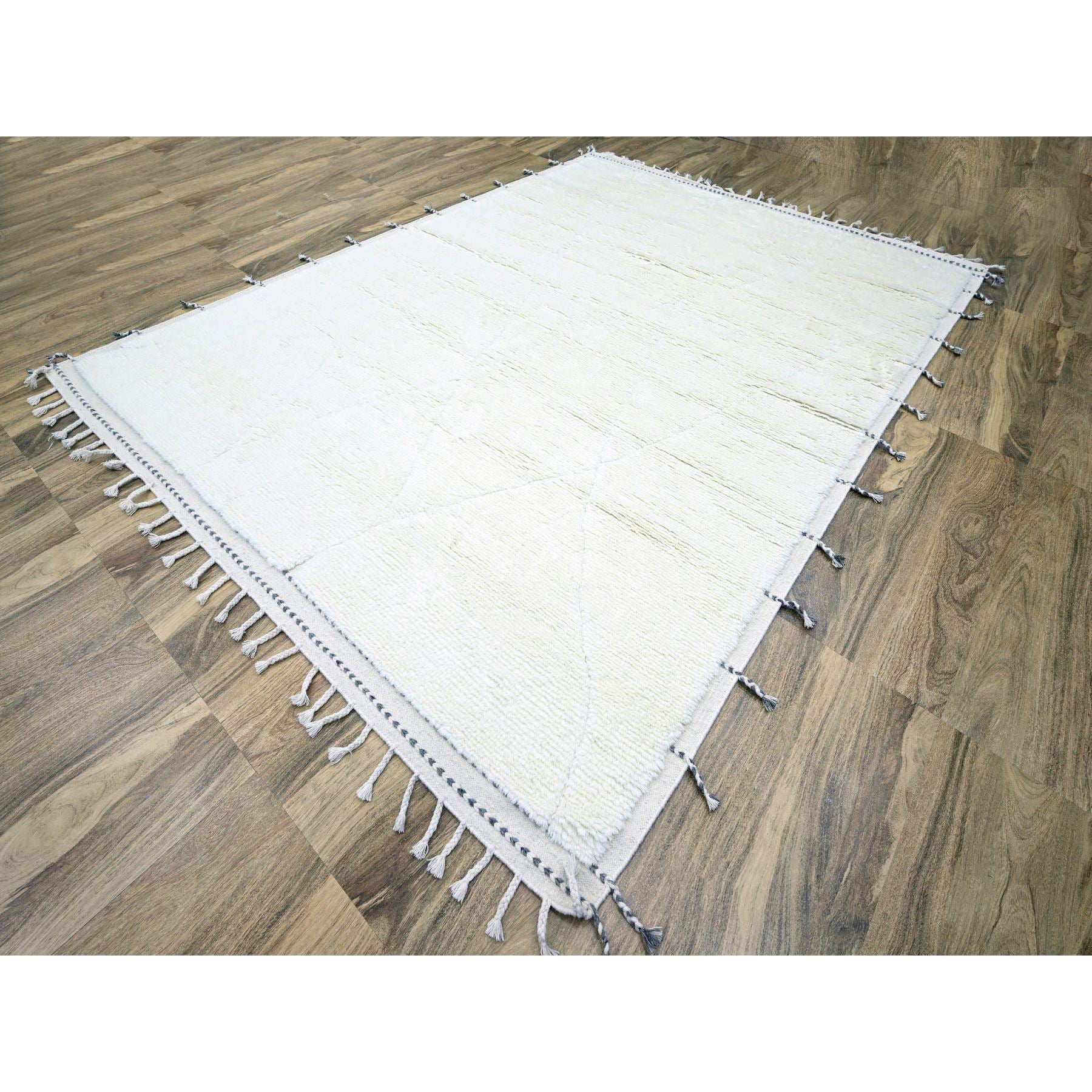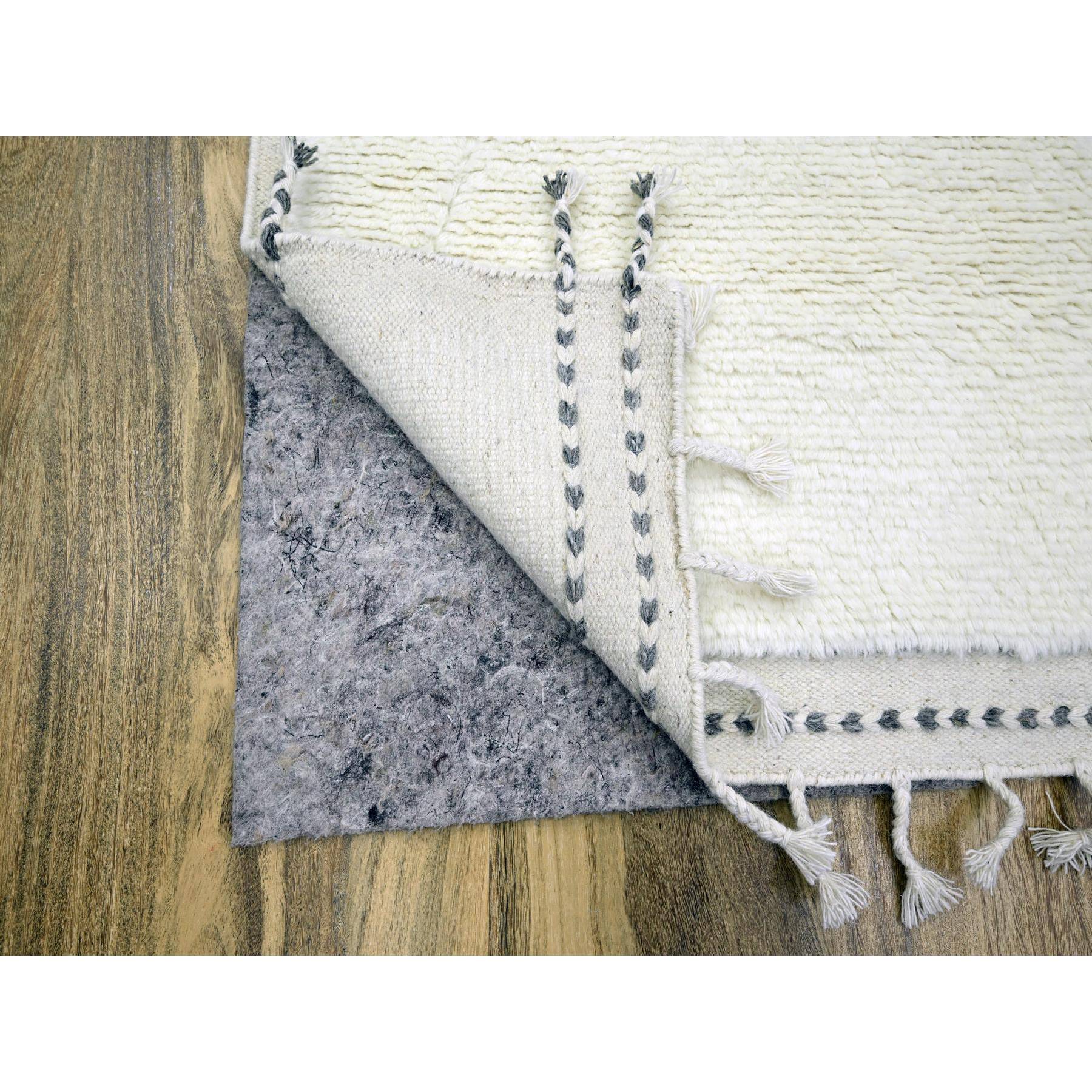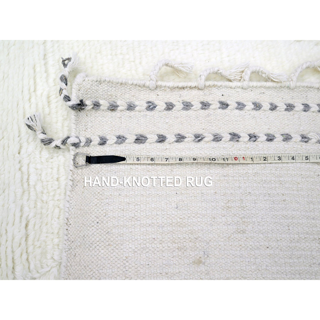 9'1"x12'3" Pristine White, Moroccan Weave With Criss Cross Design, Shabby Chic, Natural Undyed Wool, Hand Knotted, Oriental Rug FWR457314