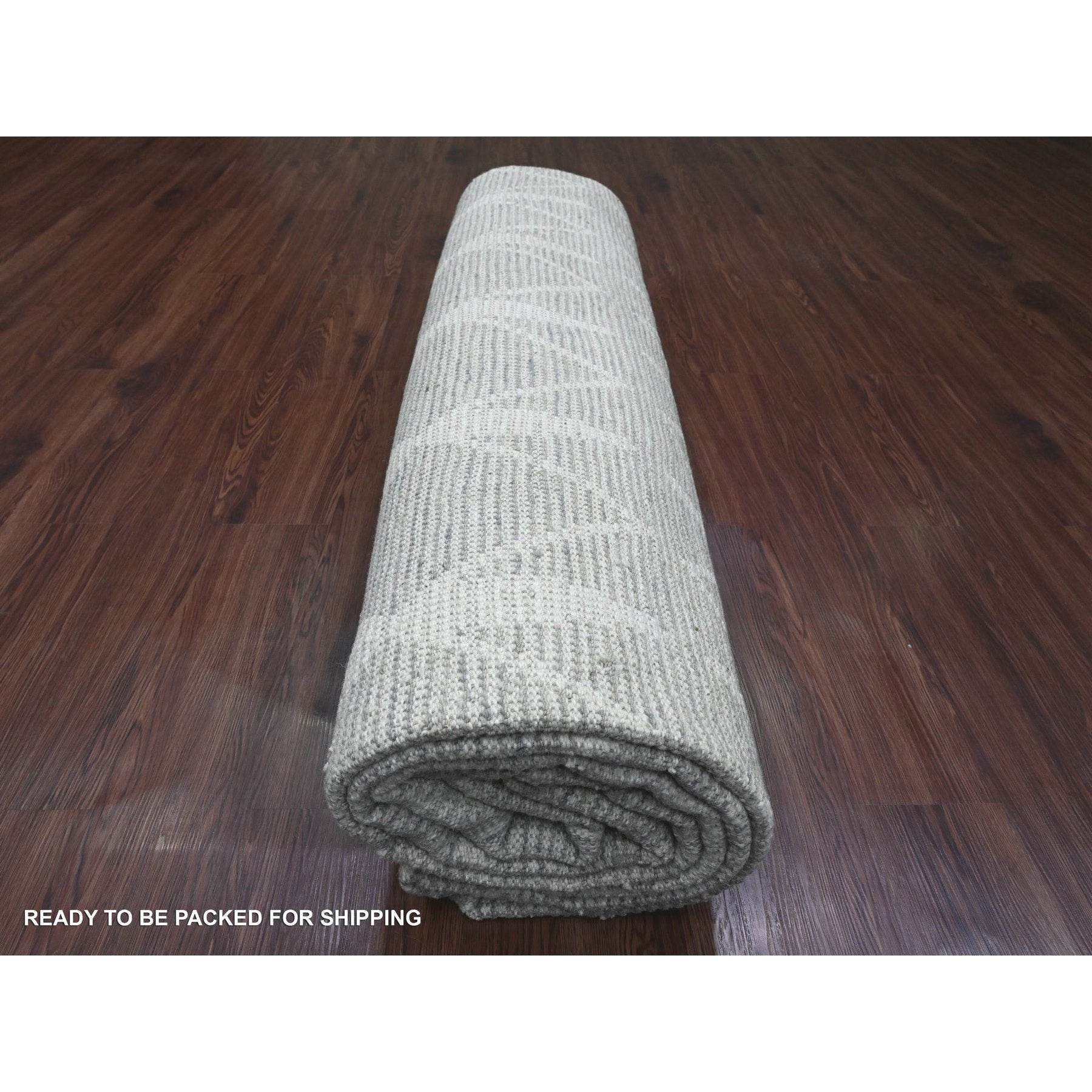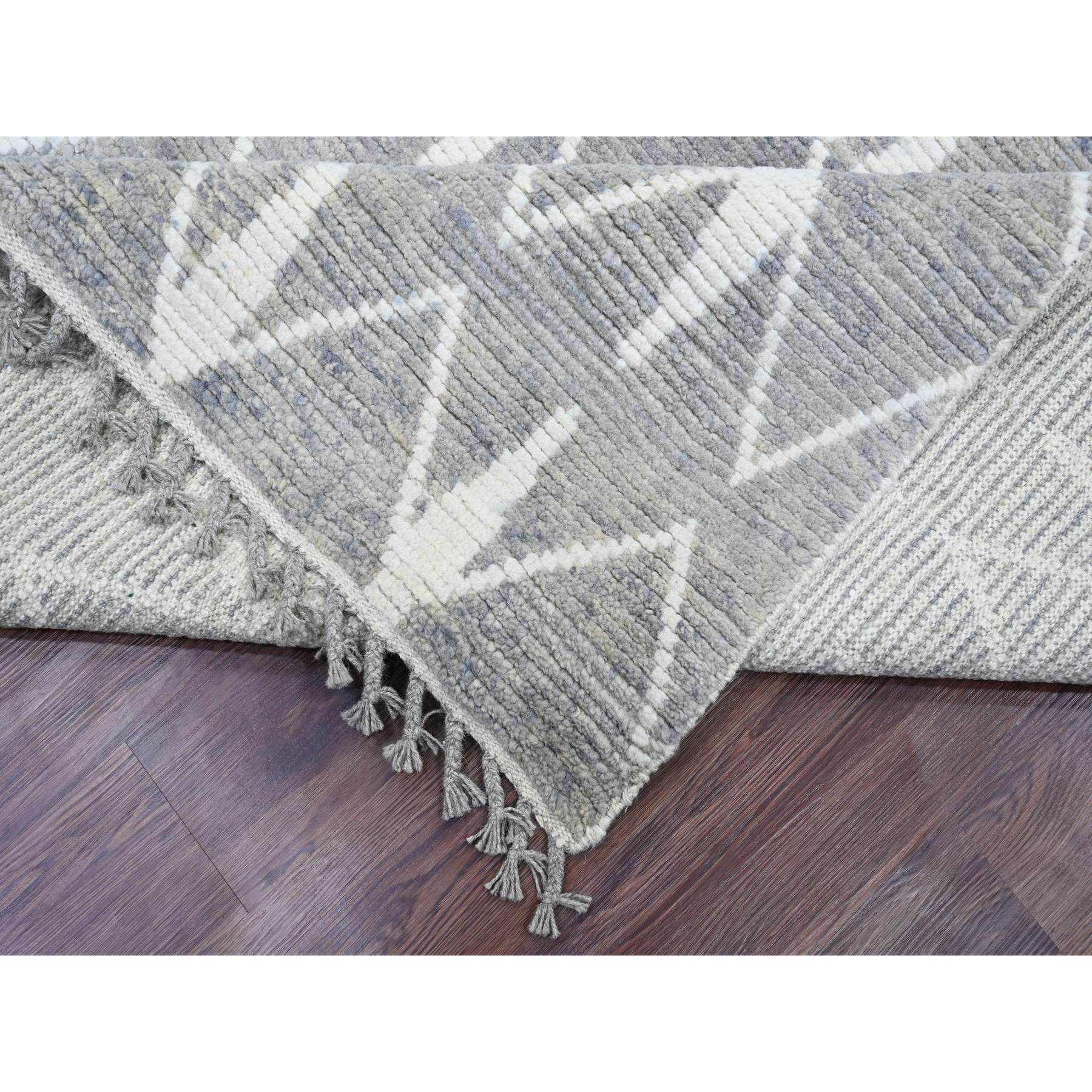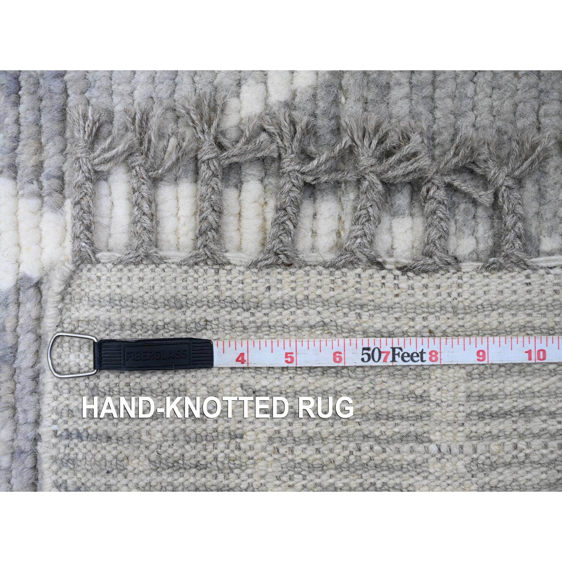 9'1"x12'4" Spanish Gray, Moroccan Weave With Geometric Repetitive Pattern, Hand Knotted, Tone On Tone, Soft Wool, Textured Pile, Oriental Rug FWR122514
