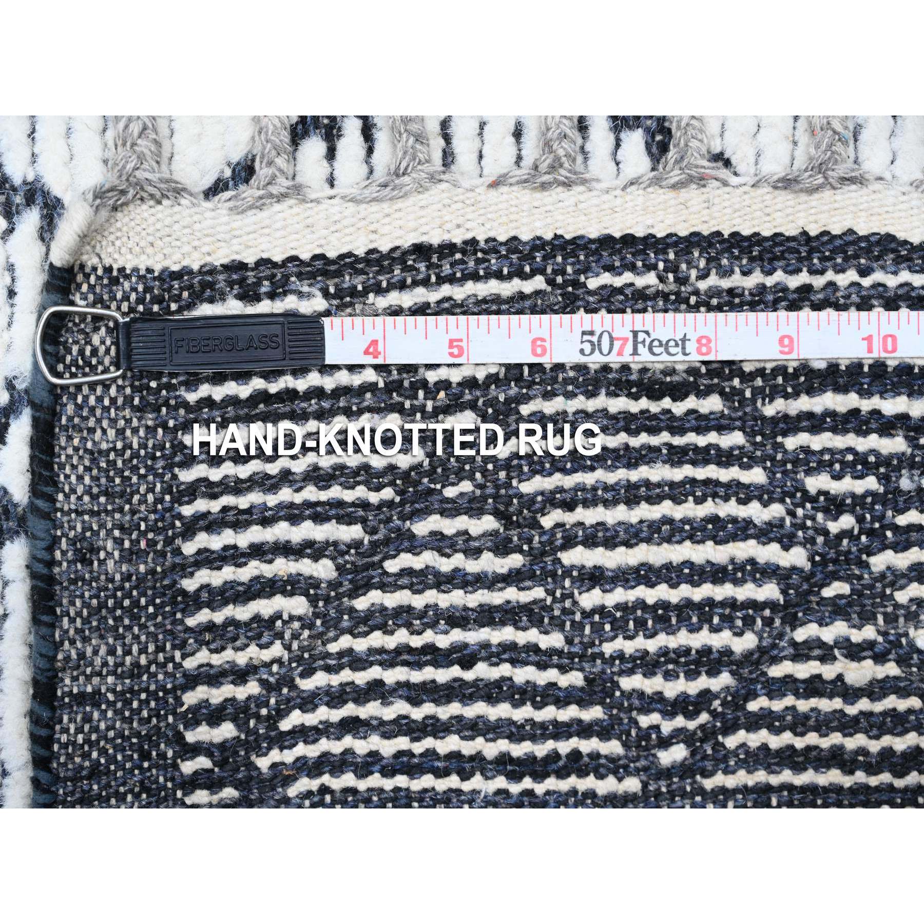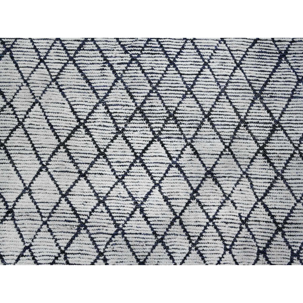 9'1"x12'4" Spare White And Shingle Gray, Moroccan Weave Marmoucha With All Over Criss Cross Pattern, Hand Knotted Tone On Tone Natural Dyes, 100% Wool, Oriental Rug FWR536004